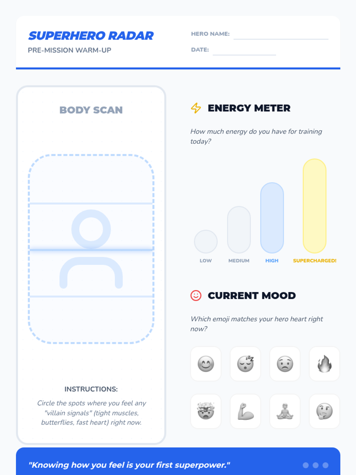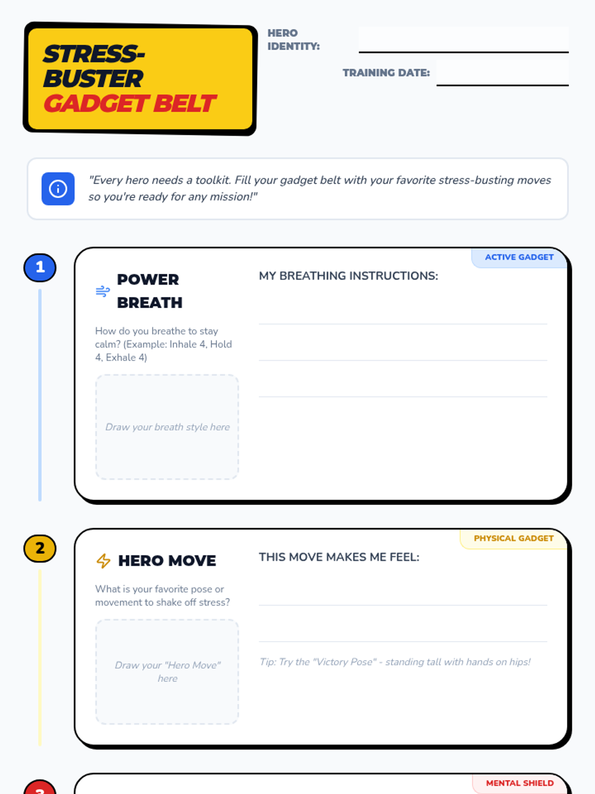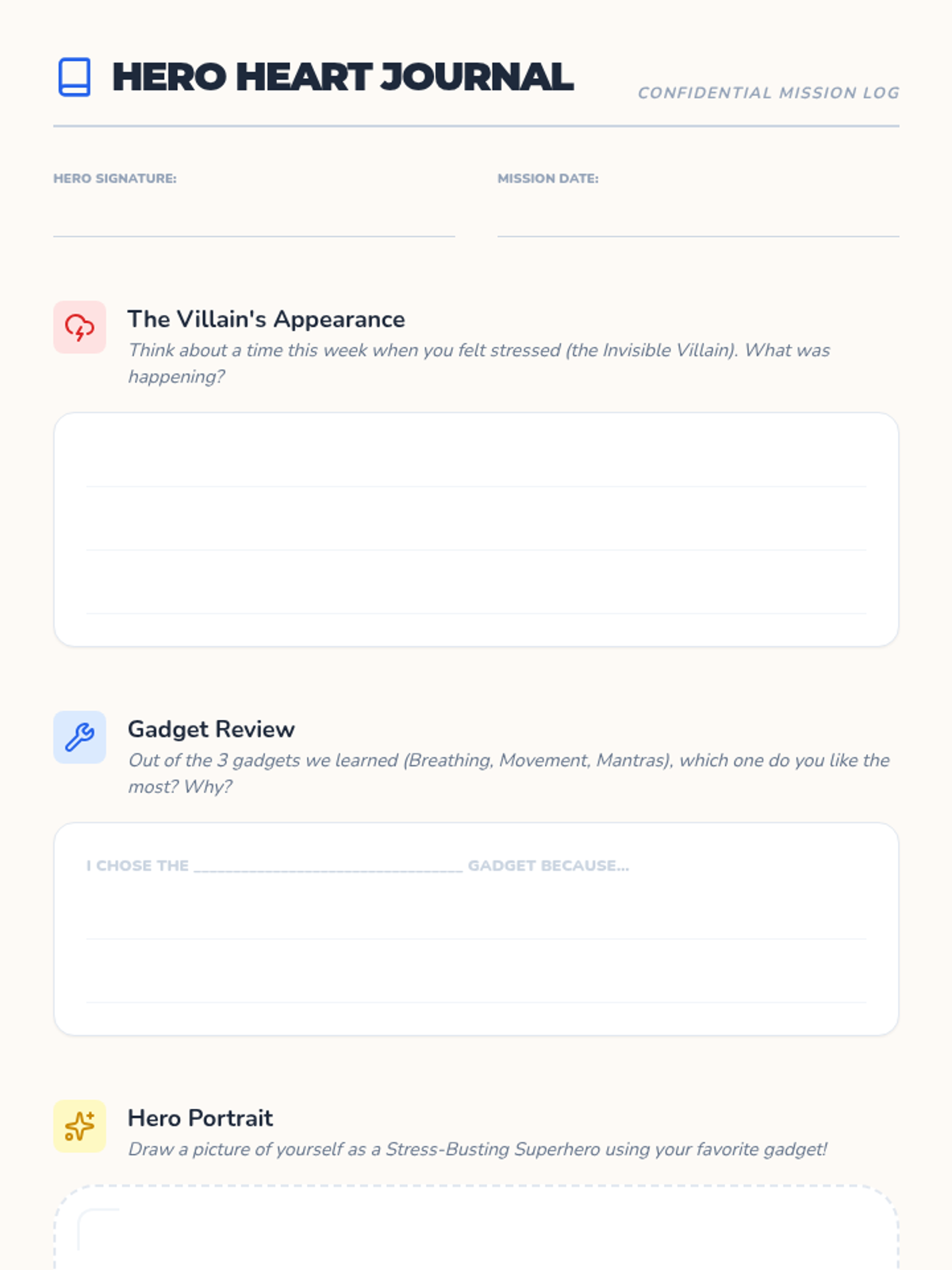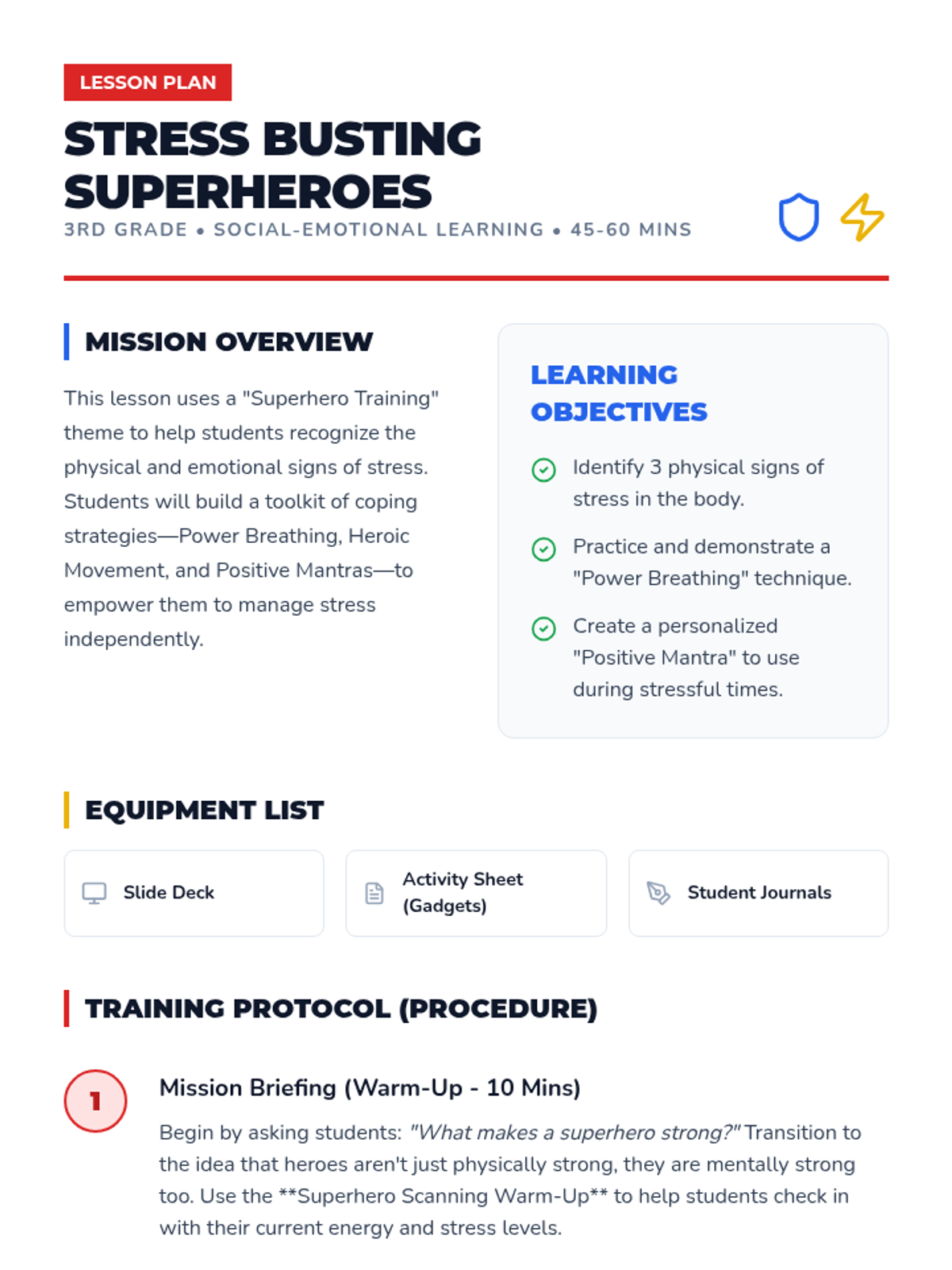 An empowering lesson that uses a 'superhero training' theme to help 3rd graders identify stress and build a toolkit of healthy coping strategies like mindful breathing and positive self-talk.