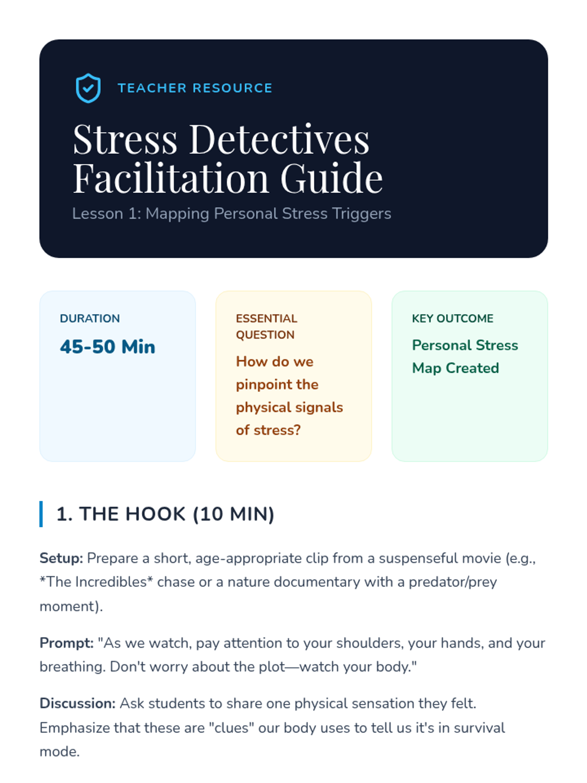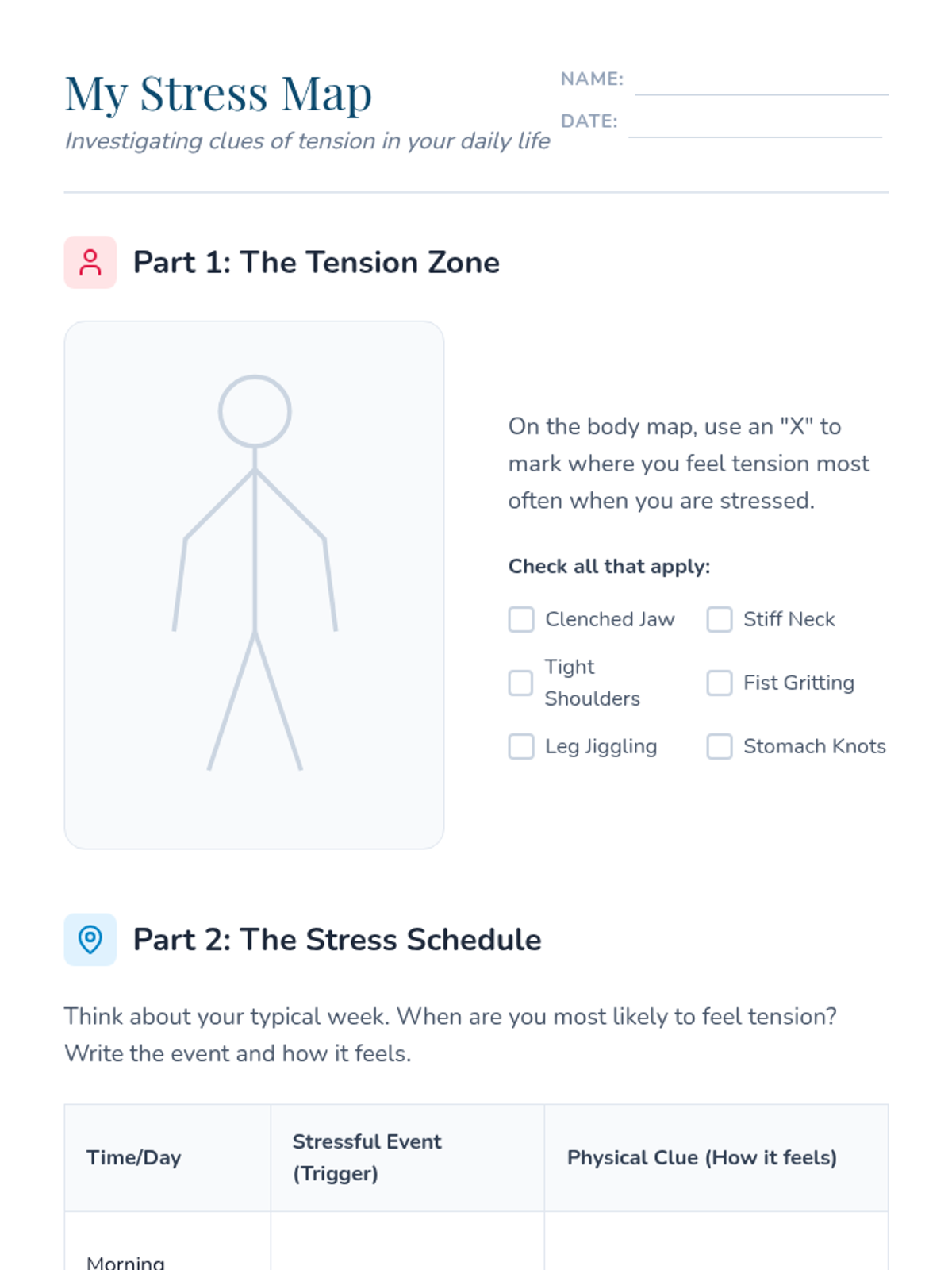 Students identify physical stress triggers and map out high-tension moments in their daily lives to determine when relaxation techniques are most needed.