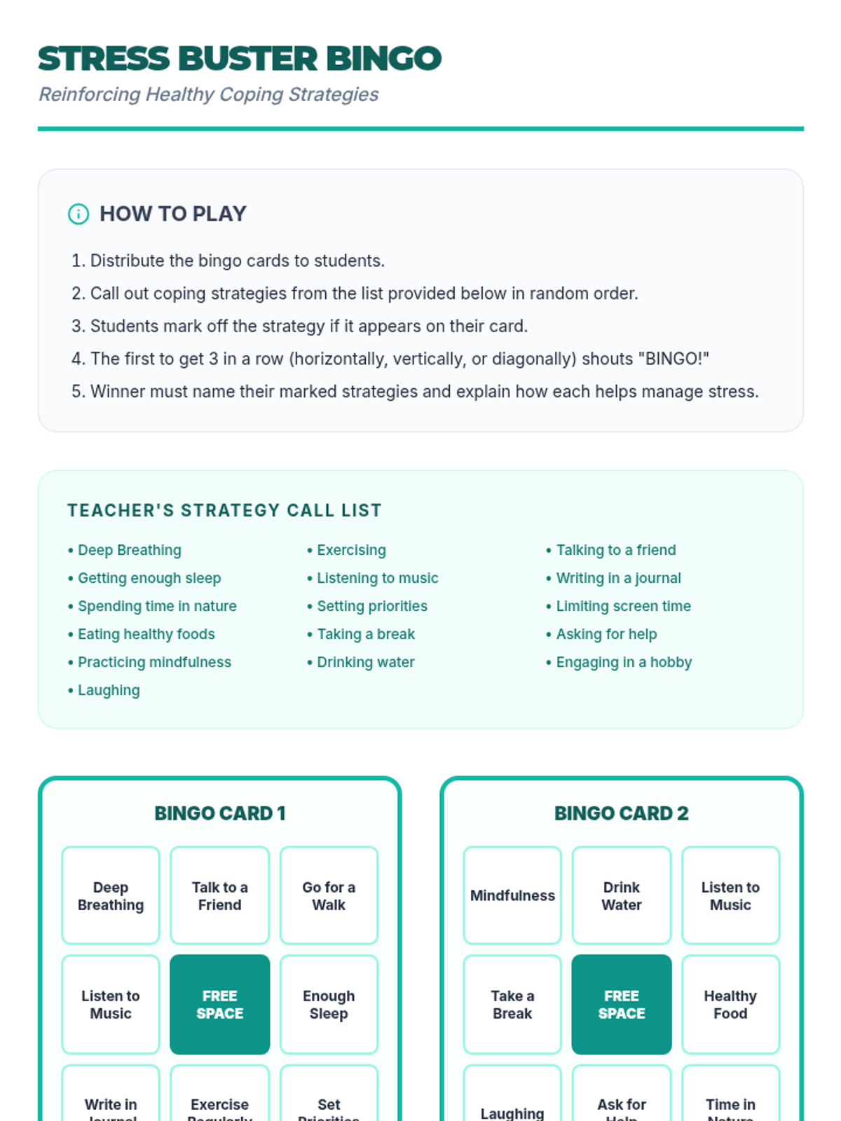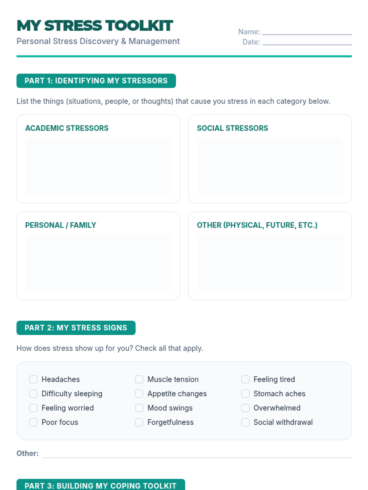 Students identify personal stress triggers and develop a 'relief valve' system of coping strategies. The lesson focuses on recognizing physical signs of stress and planning proactive responses.