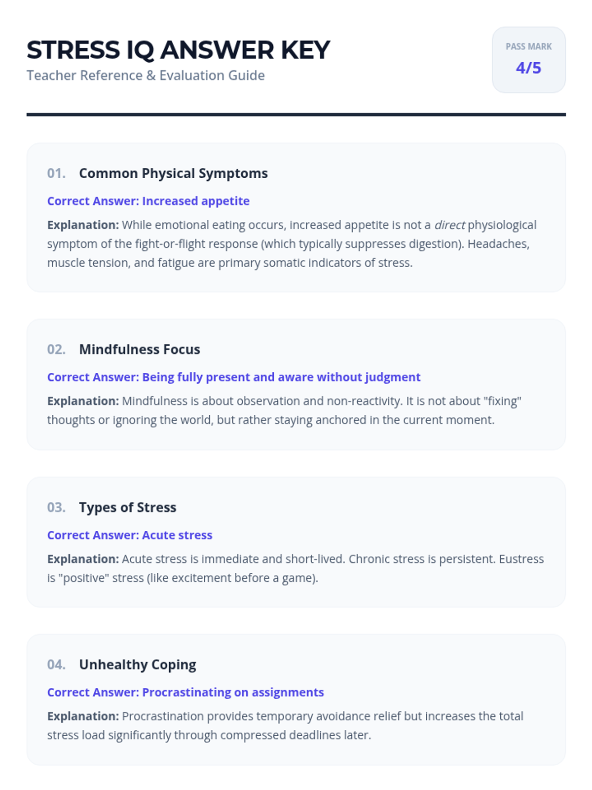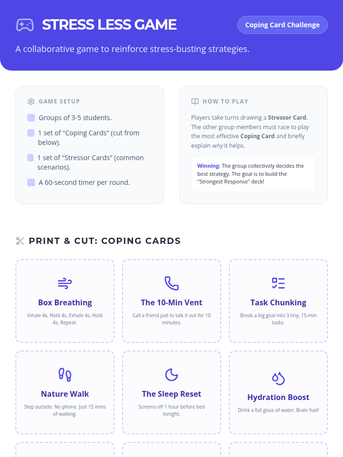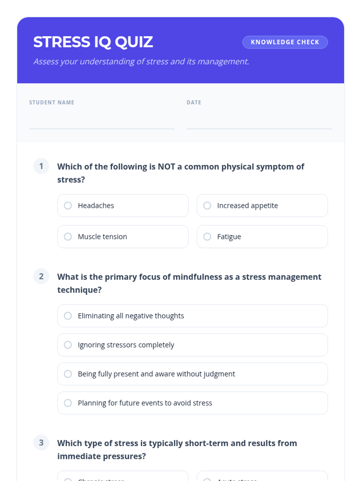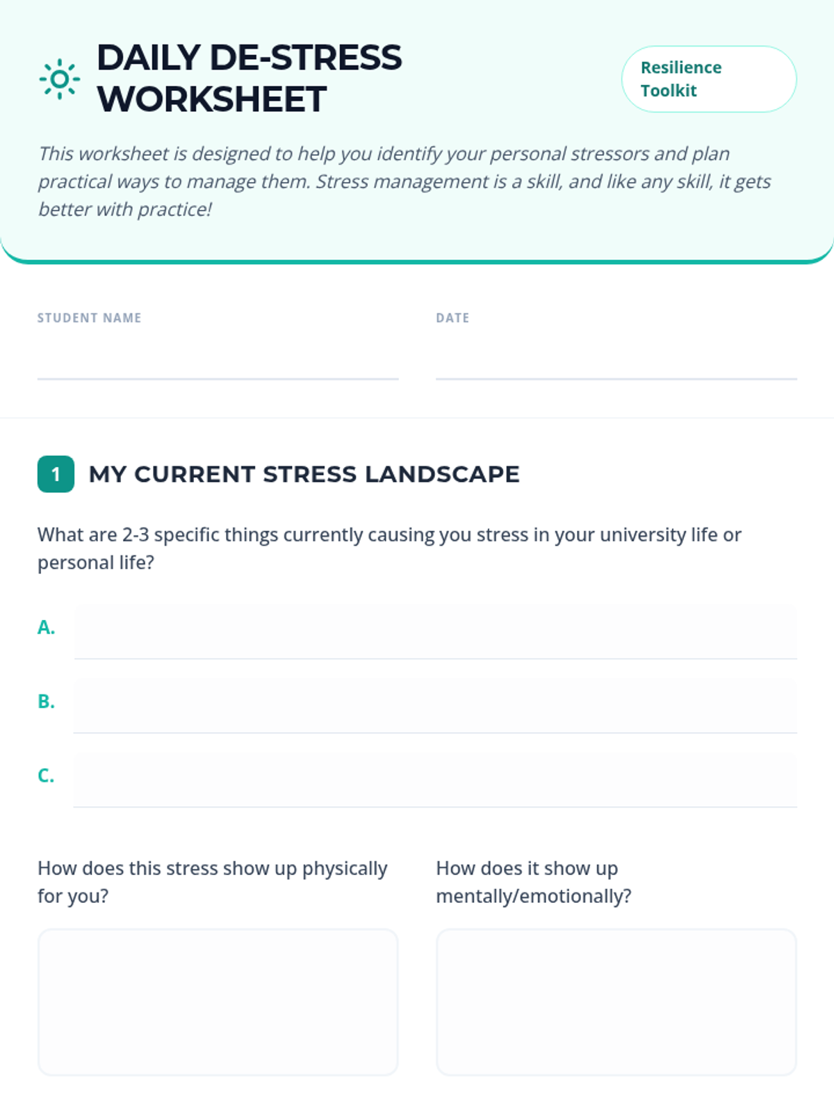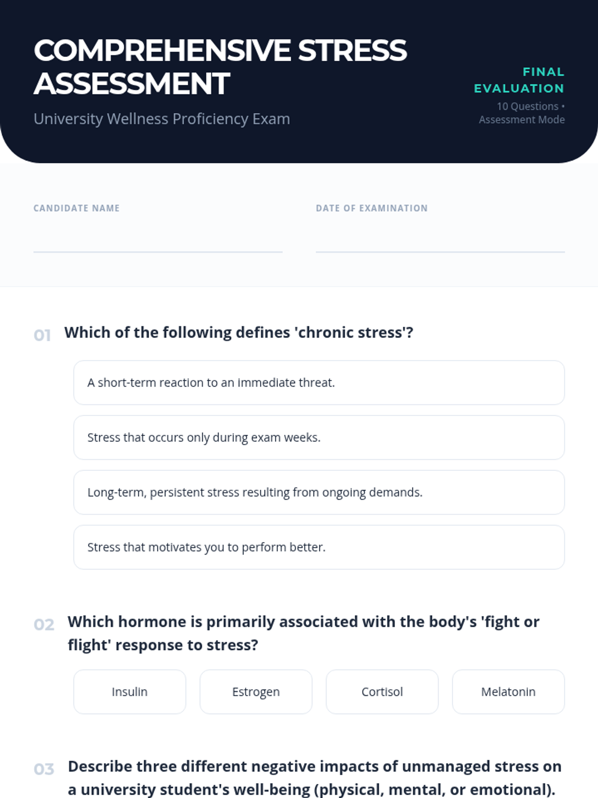 This lesson empowers university students with practical strategies to understand, manage, and reduce stress. Through interactive discussions and practical exercises, students will build a personalized toolkit for resilience and well-being.