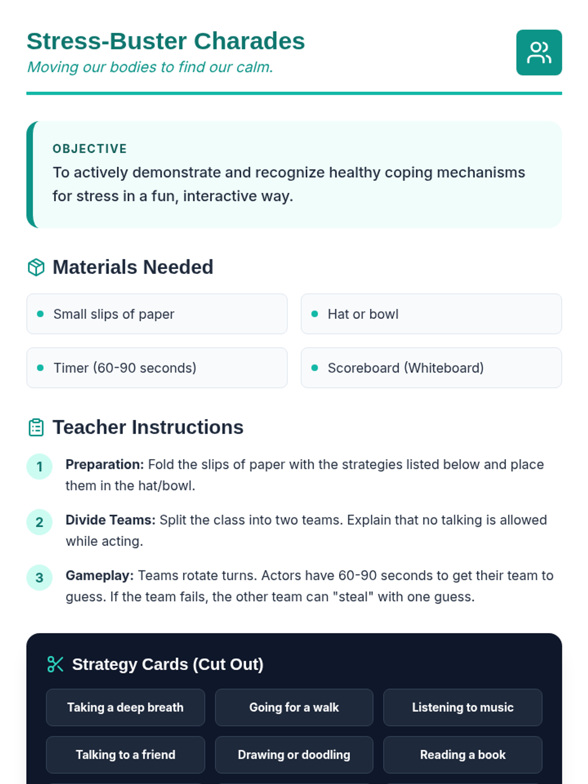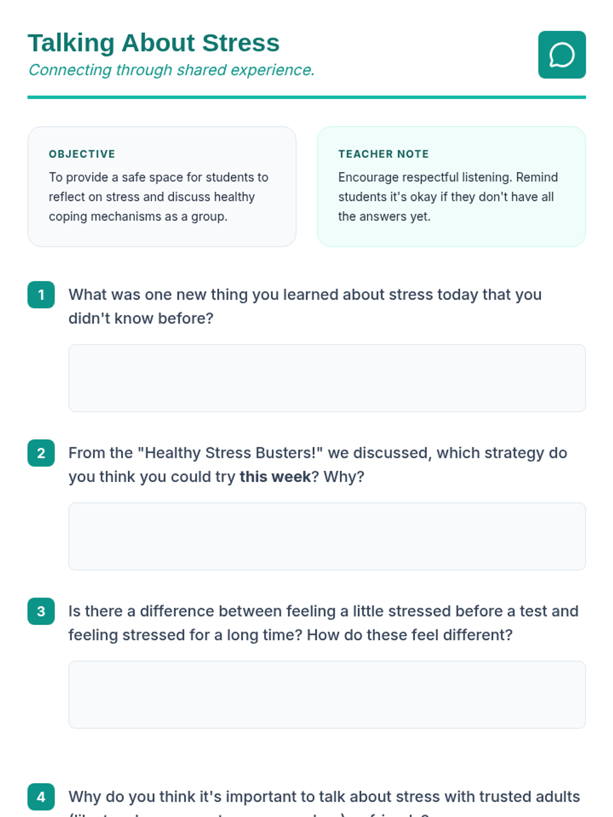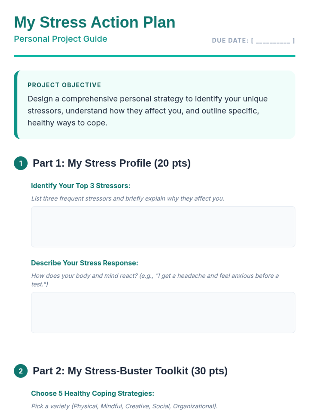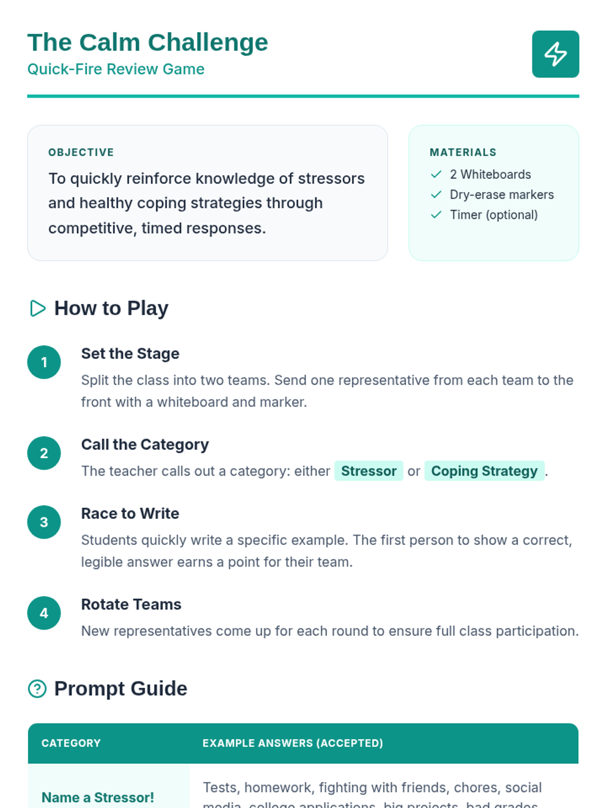A comprehensive one-hour Tier 1 lesson for secondary students to identify stressors and develop healthy coping mechanisms for emotional resilience.