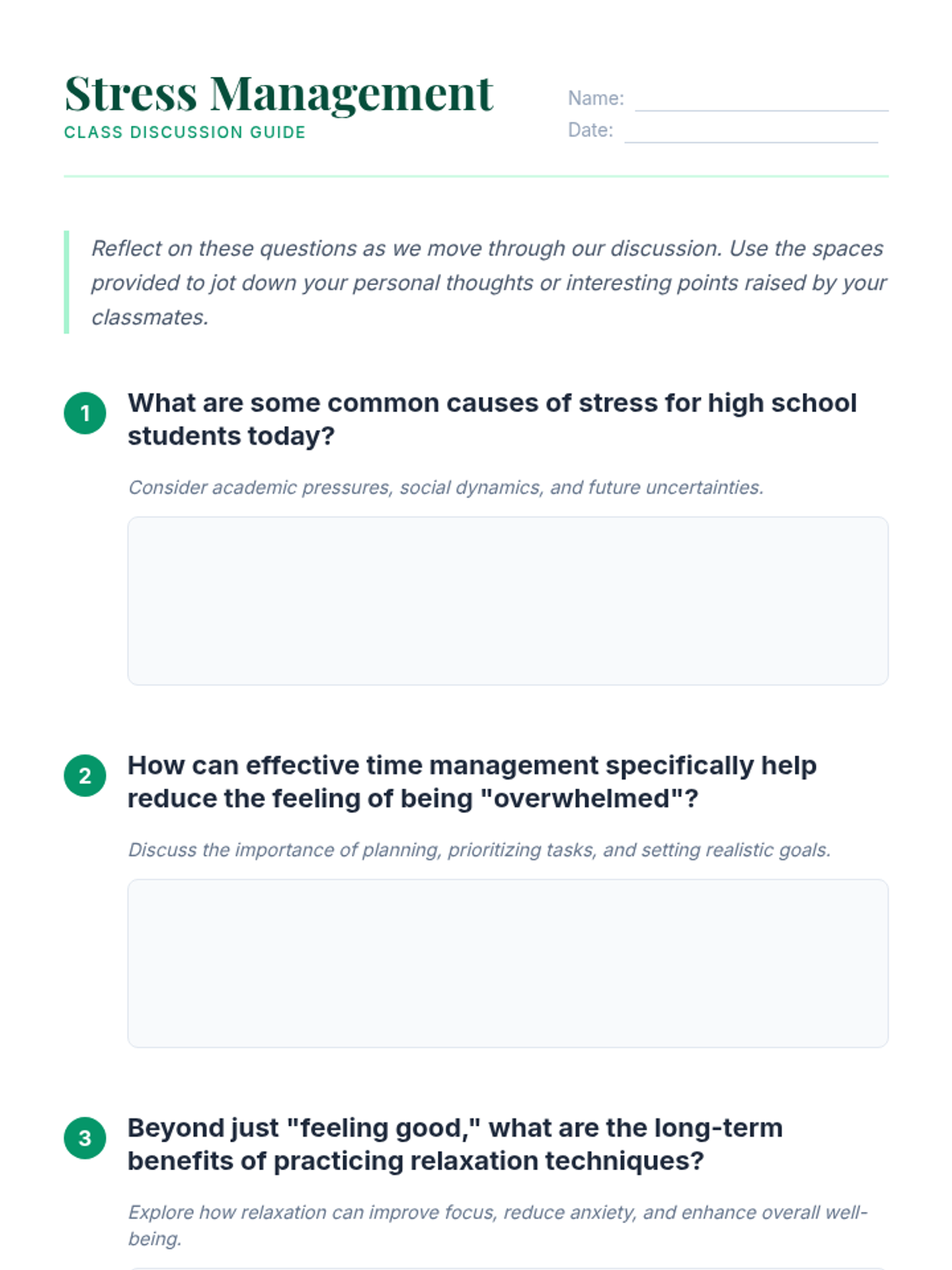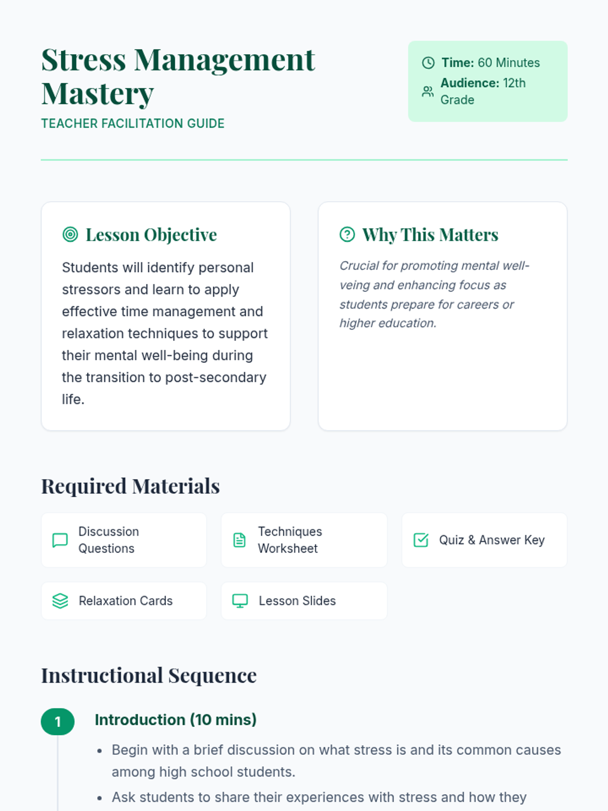 This lesson introduces 12th-grade students to effective stress management techniques, including time management and relaxation strategies, to support their transition to post-secondary life.