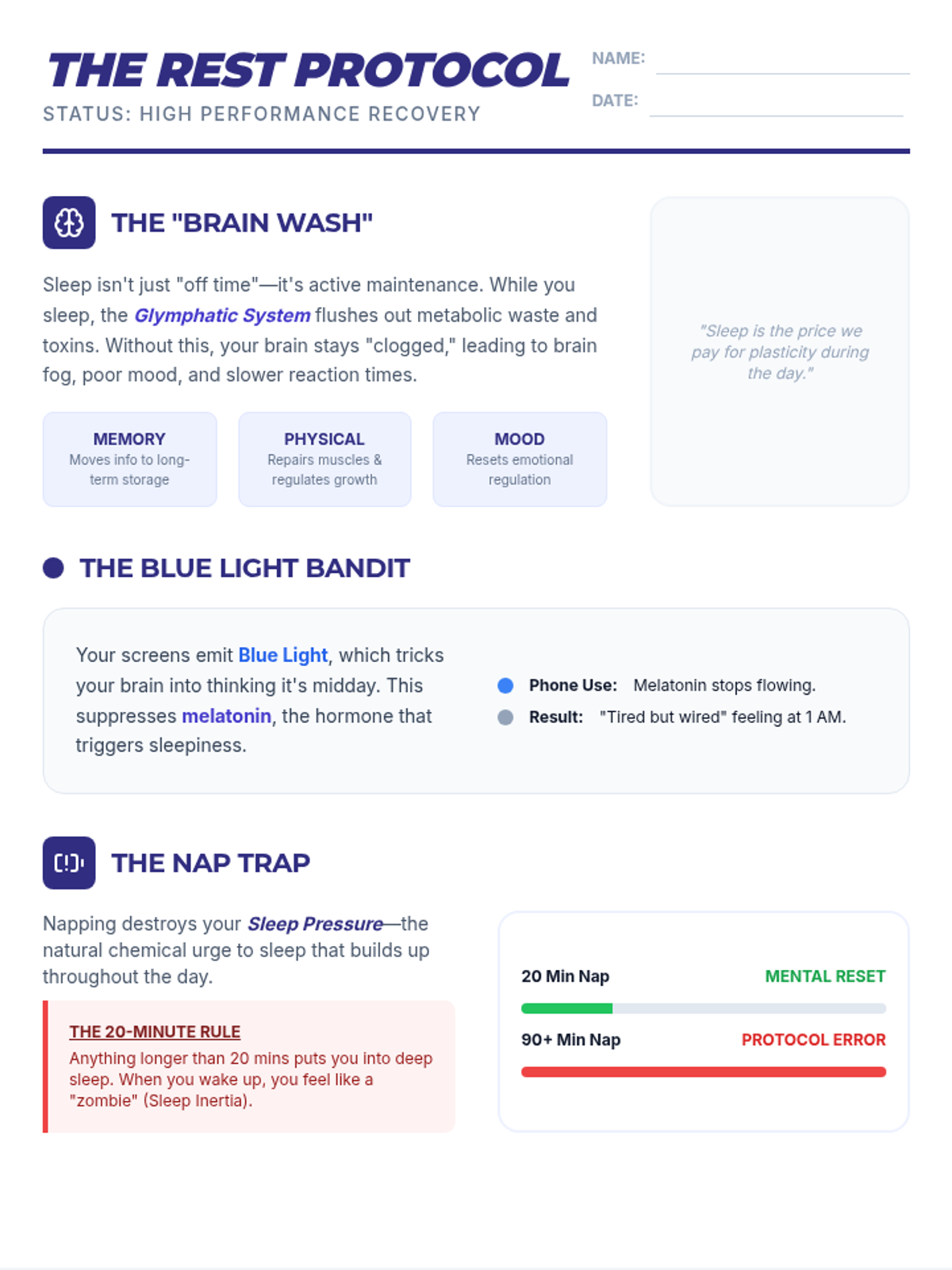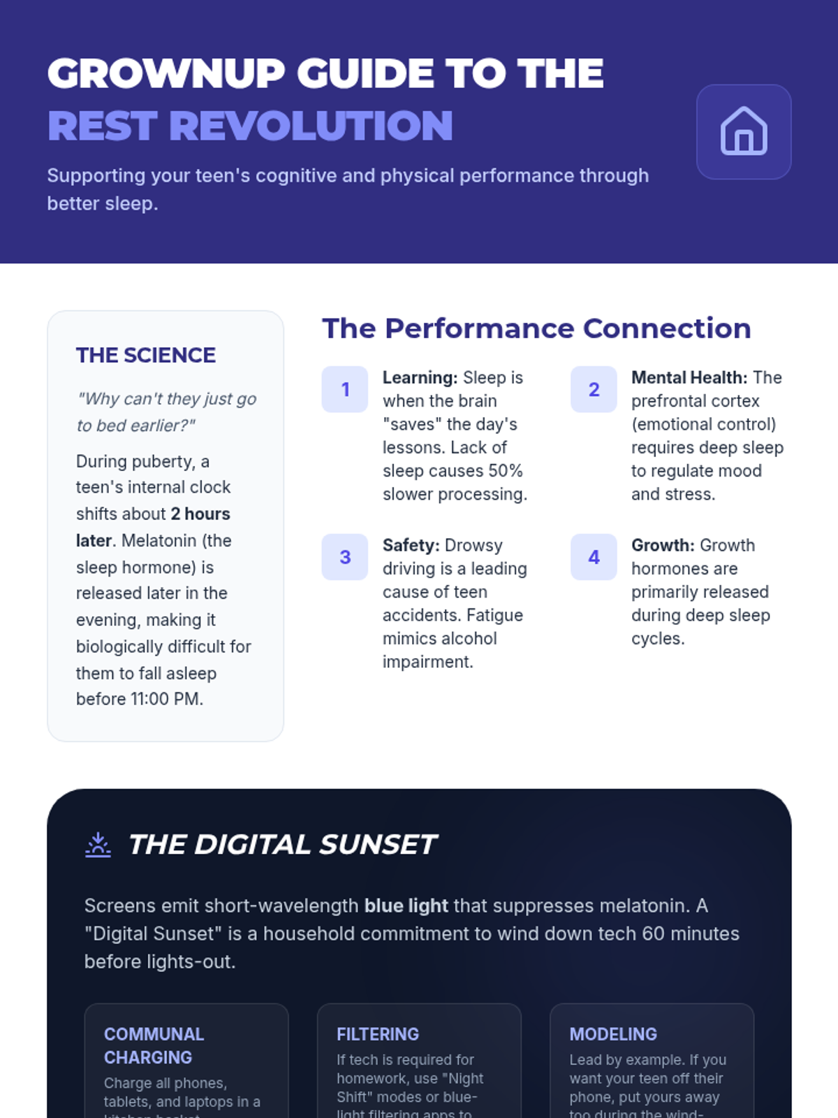 This lesson explores the science of sleep hygiene tailored for high school students, focusing on the biological impact of technology and practical strategies for optimizing rest.