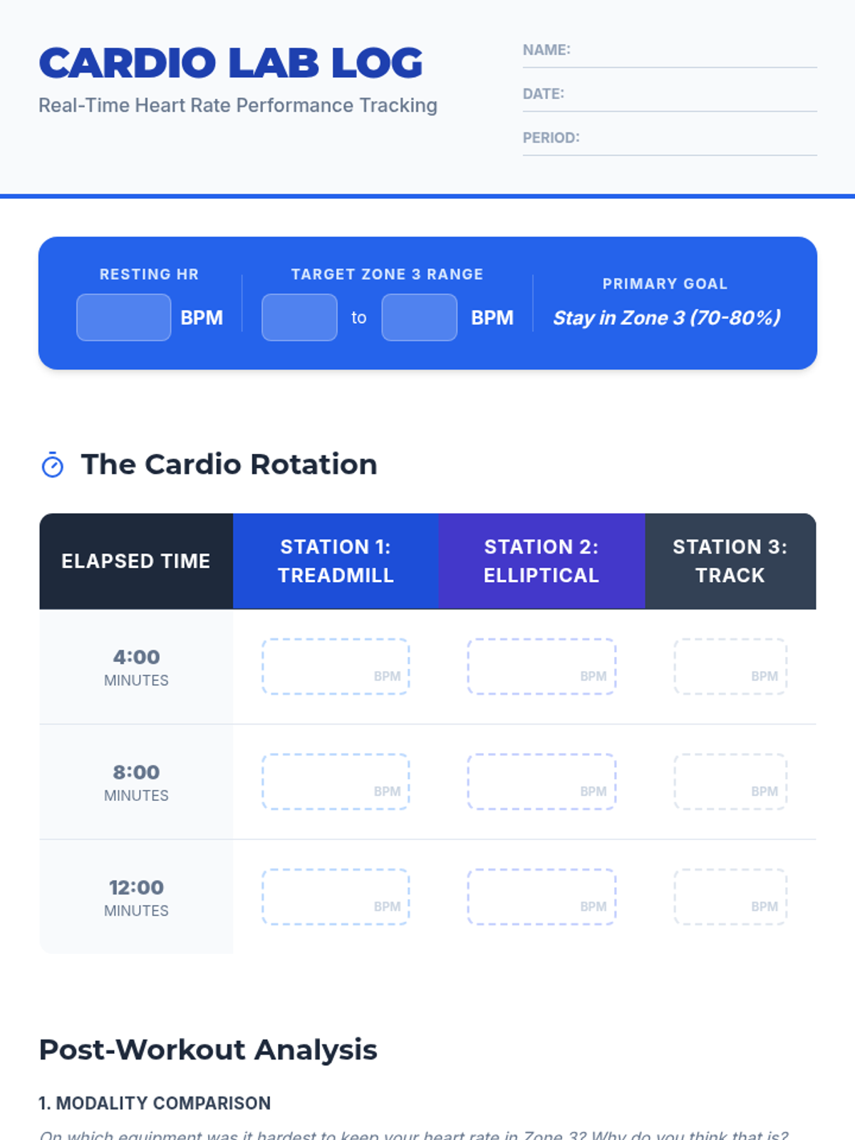 A comprehensive lesson on using heart rate monitors to optimize cardiovascular training. Students learn to calculate target zones and track real-time data across different cardio stations.