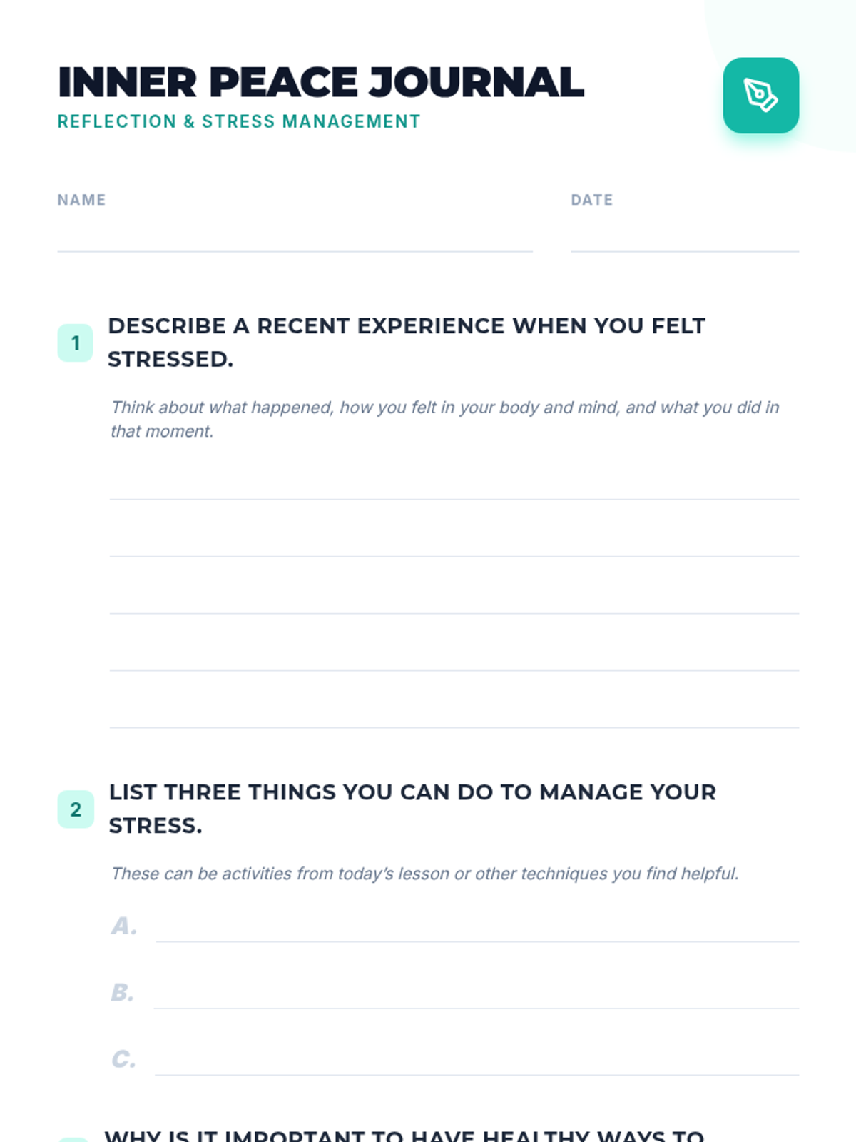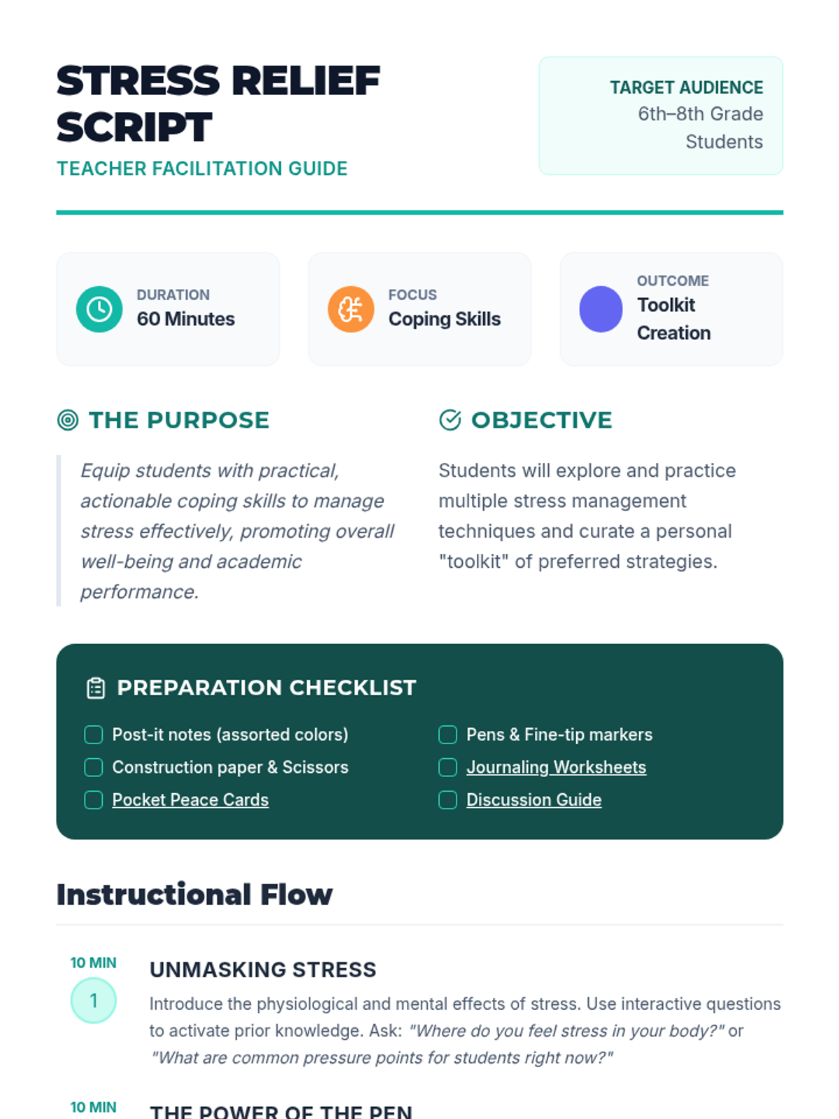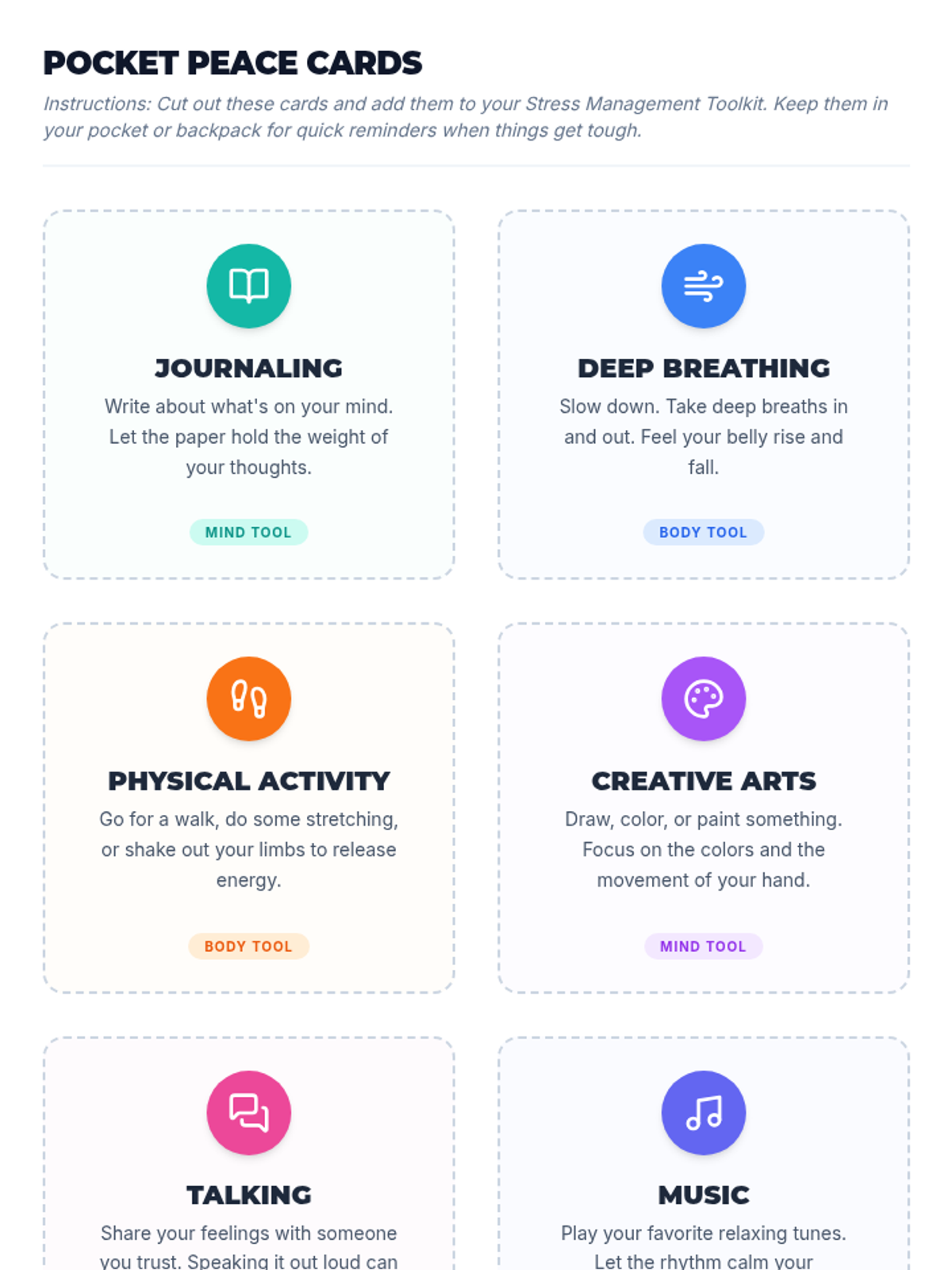 Students will explore stress management techniques like journaling, physical activity, and creative arts, culminating in the creation of a personal stress management toolkit to promote well-being.