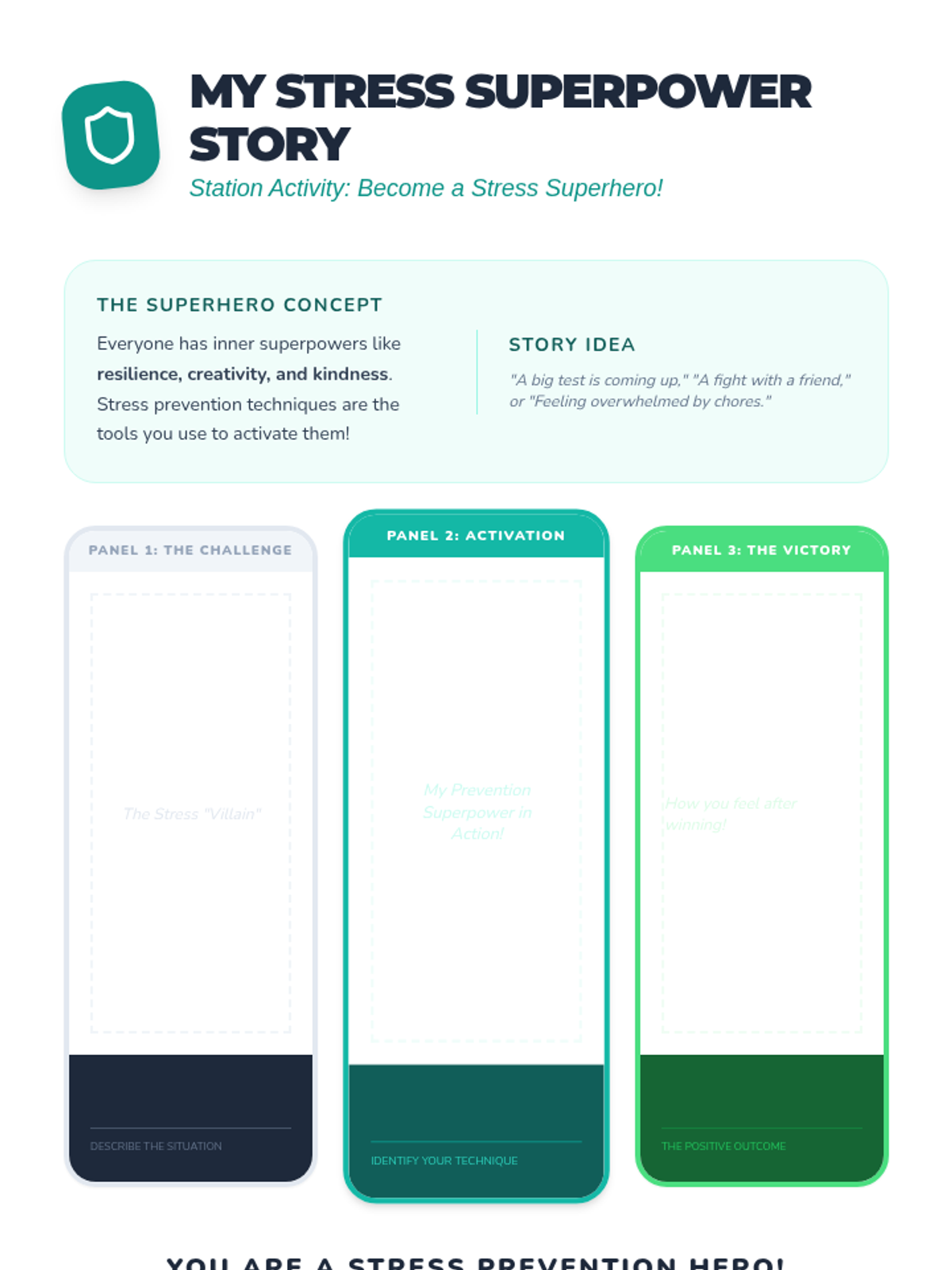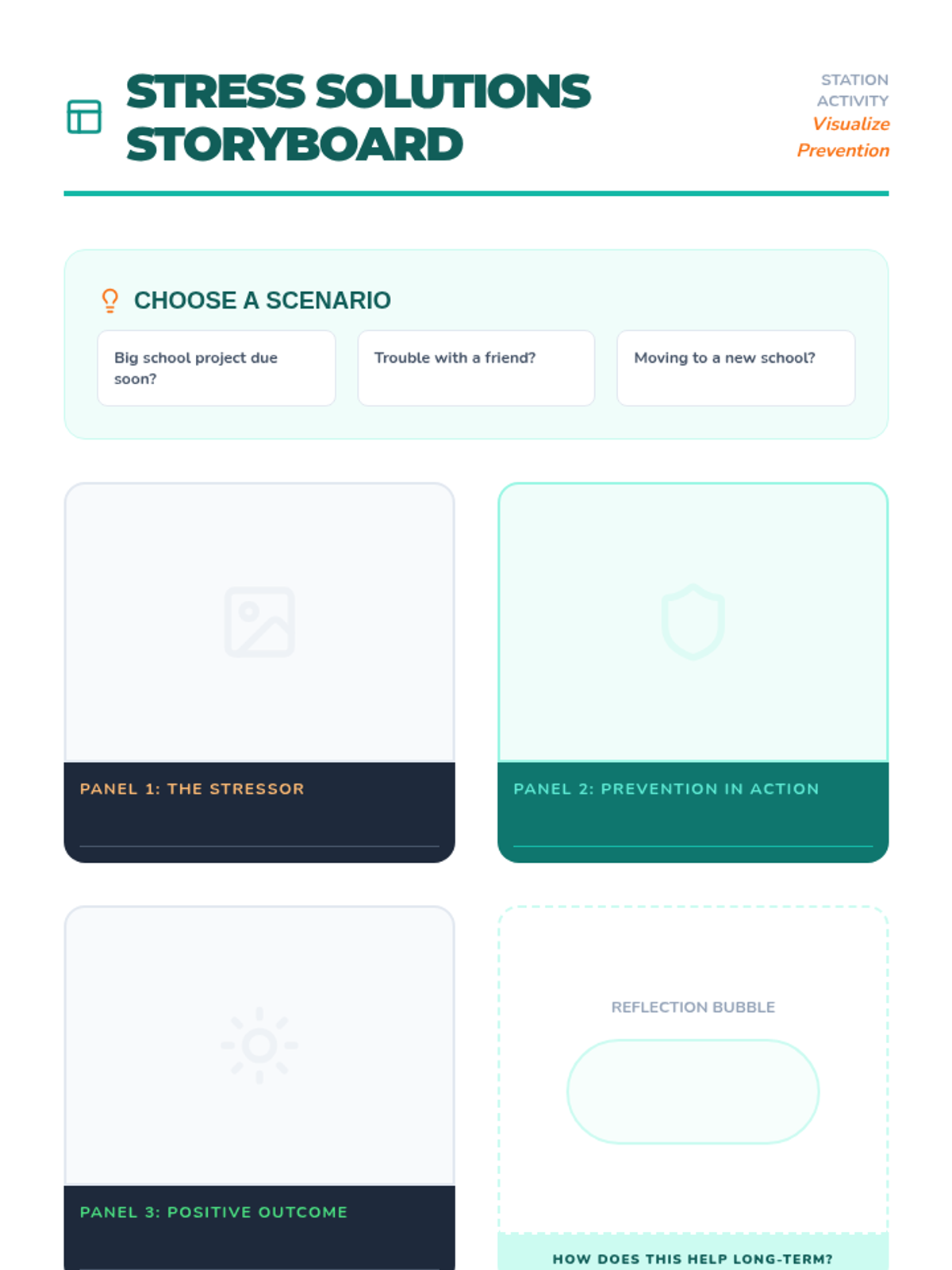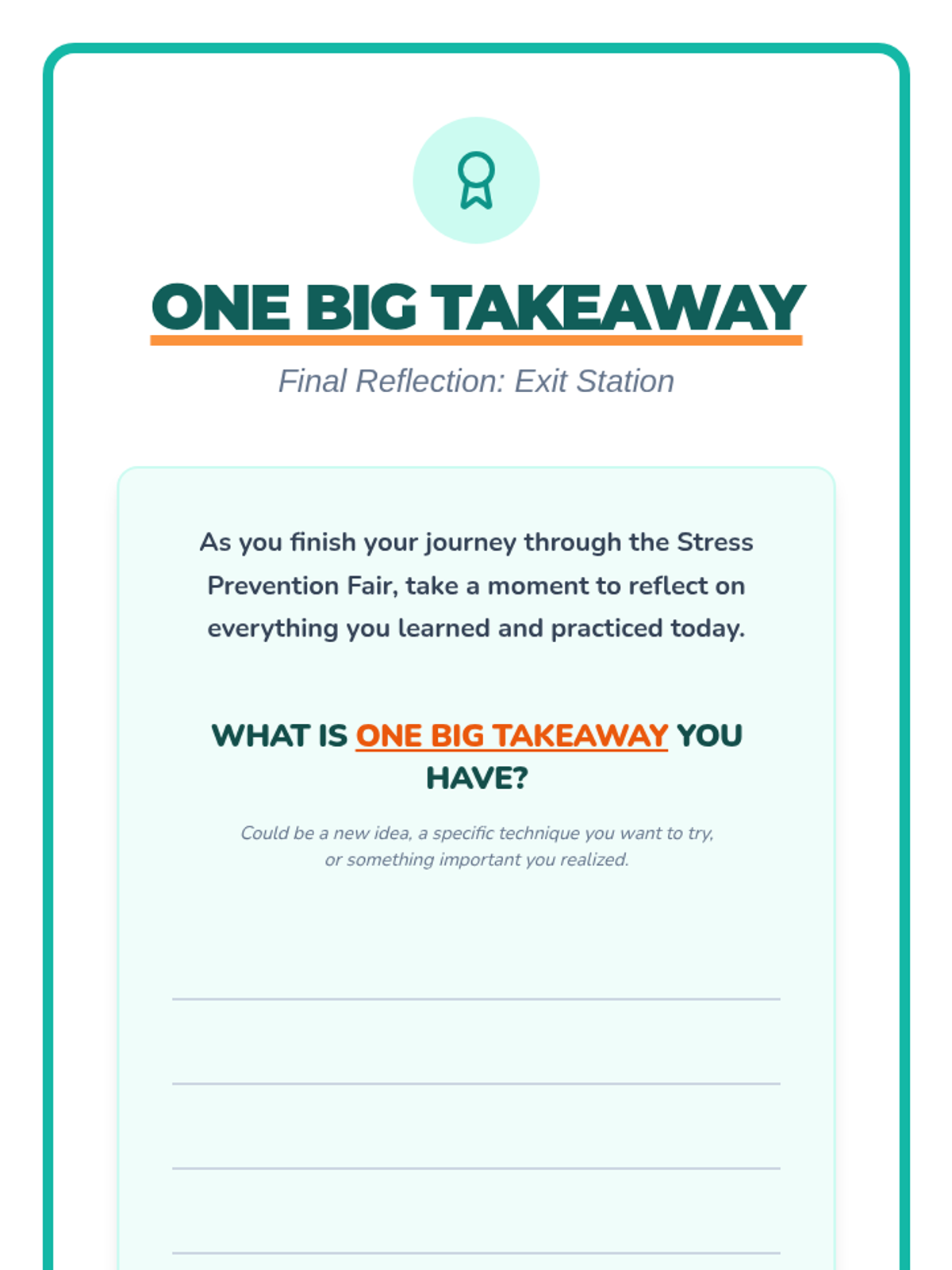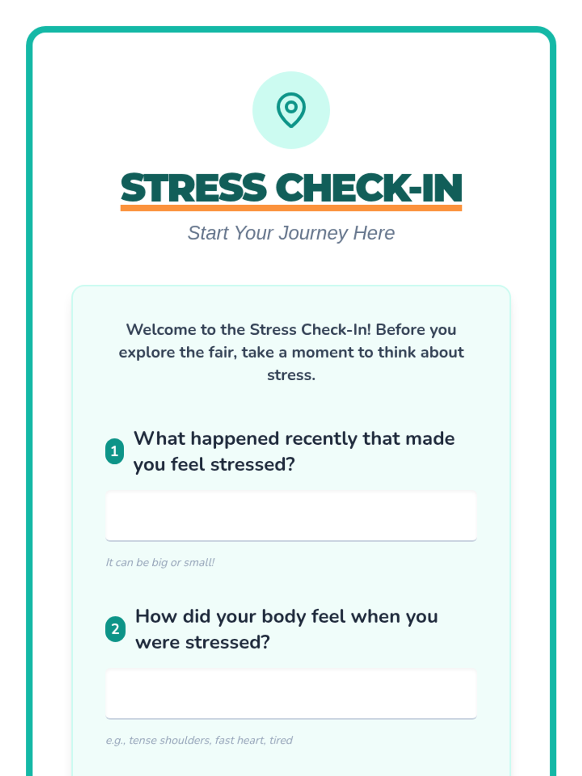 An interactive wellness fair event for 5th and 6th graders to identify stressors and learn proactive prevention strategies through self-guided stations.