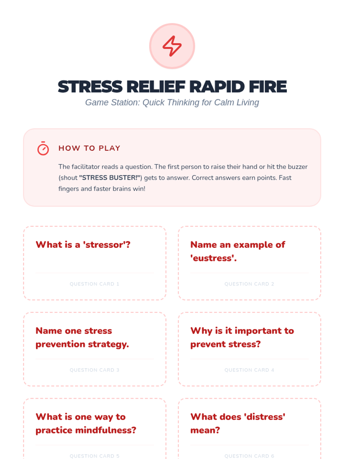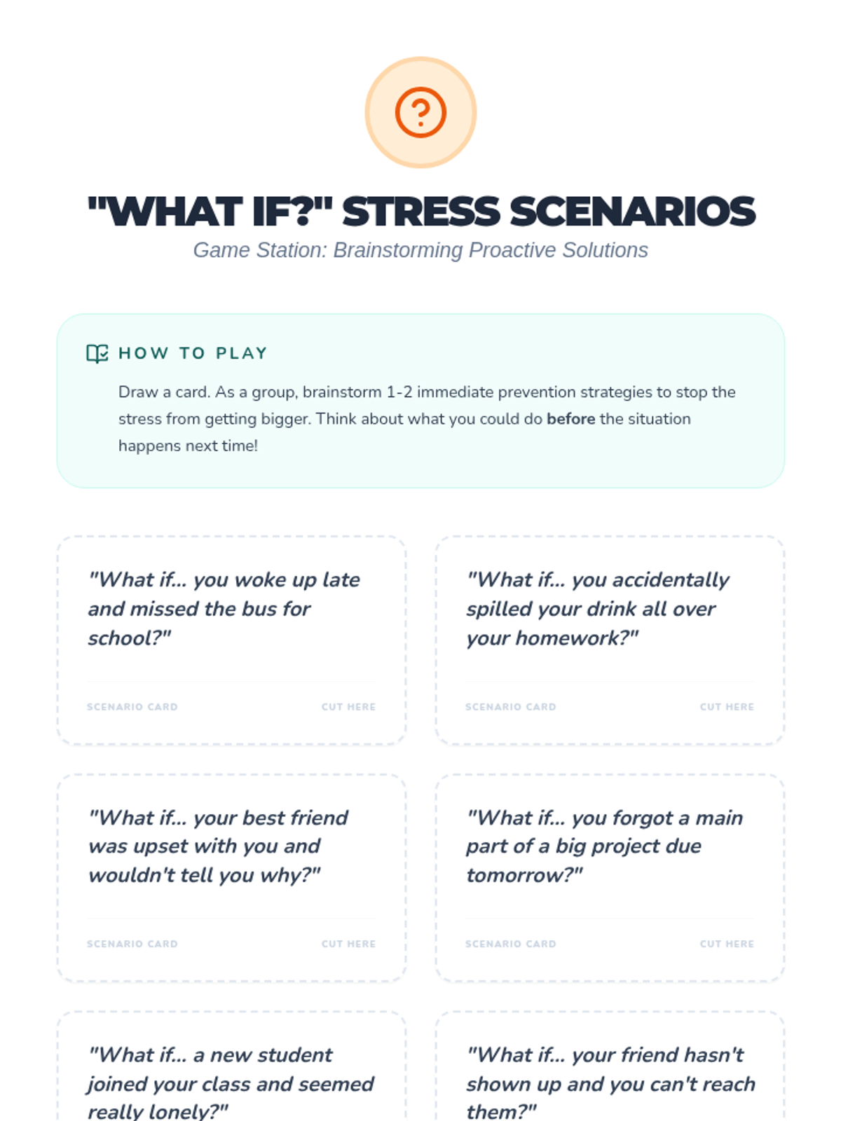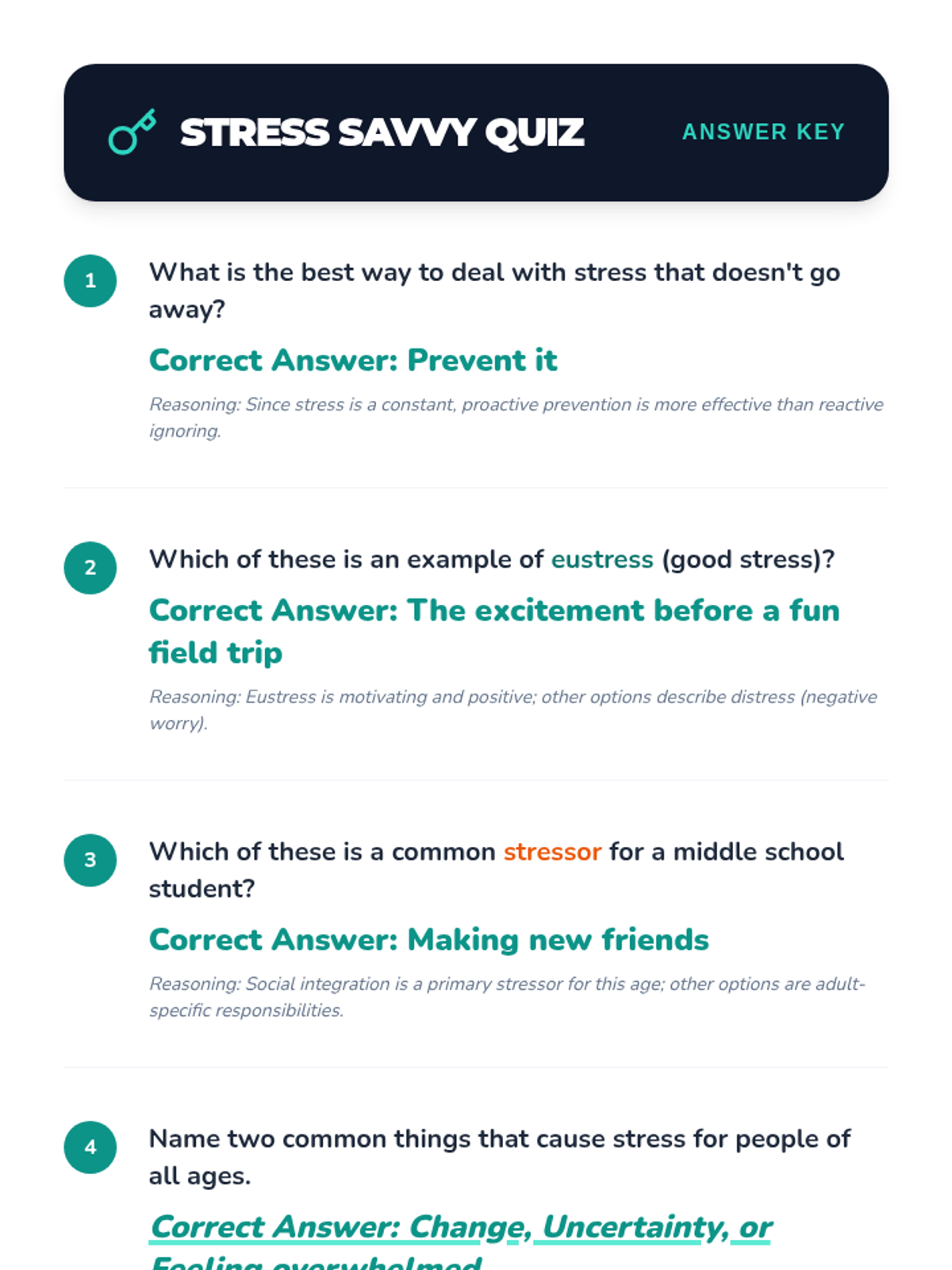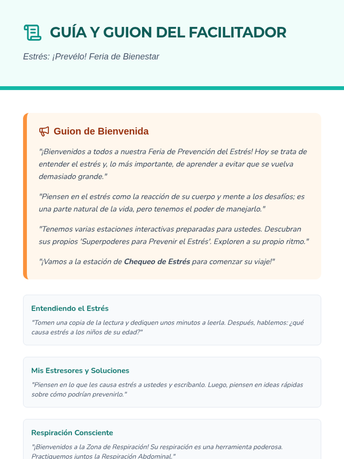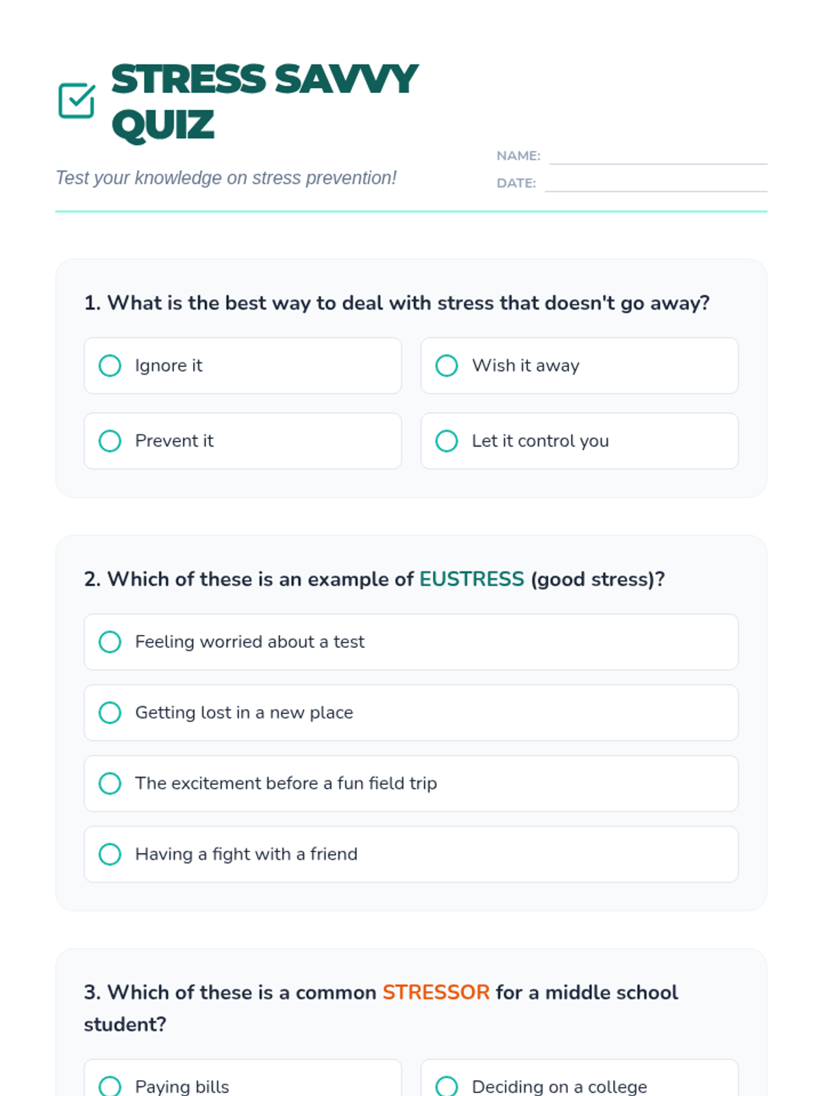 An interactive wellness fair event for 5th and 6th graders to identify stressors and learn proactive prevention strategies through self-guided stations.