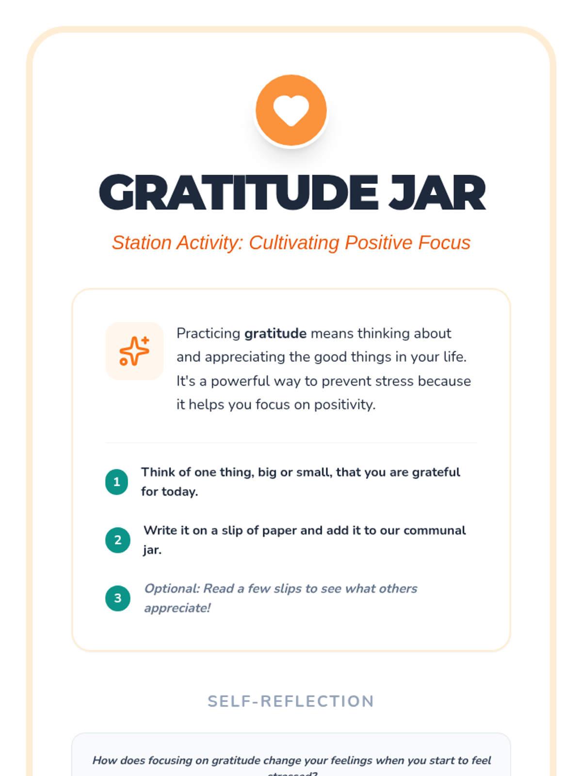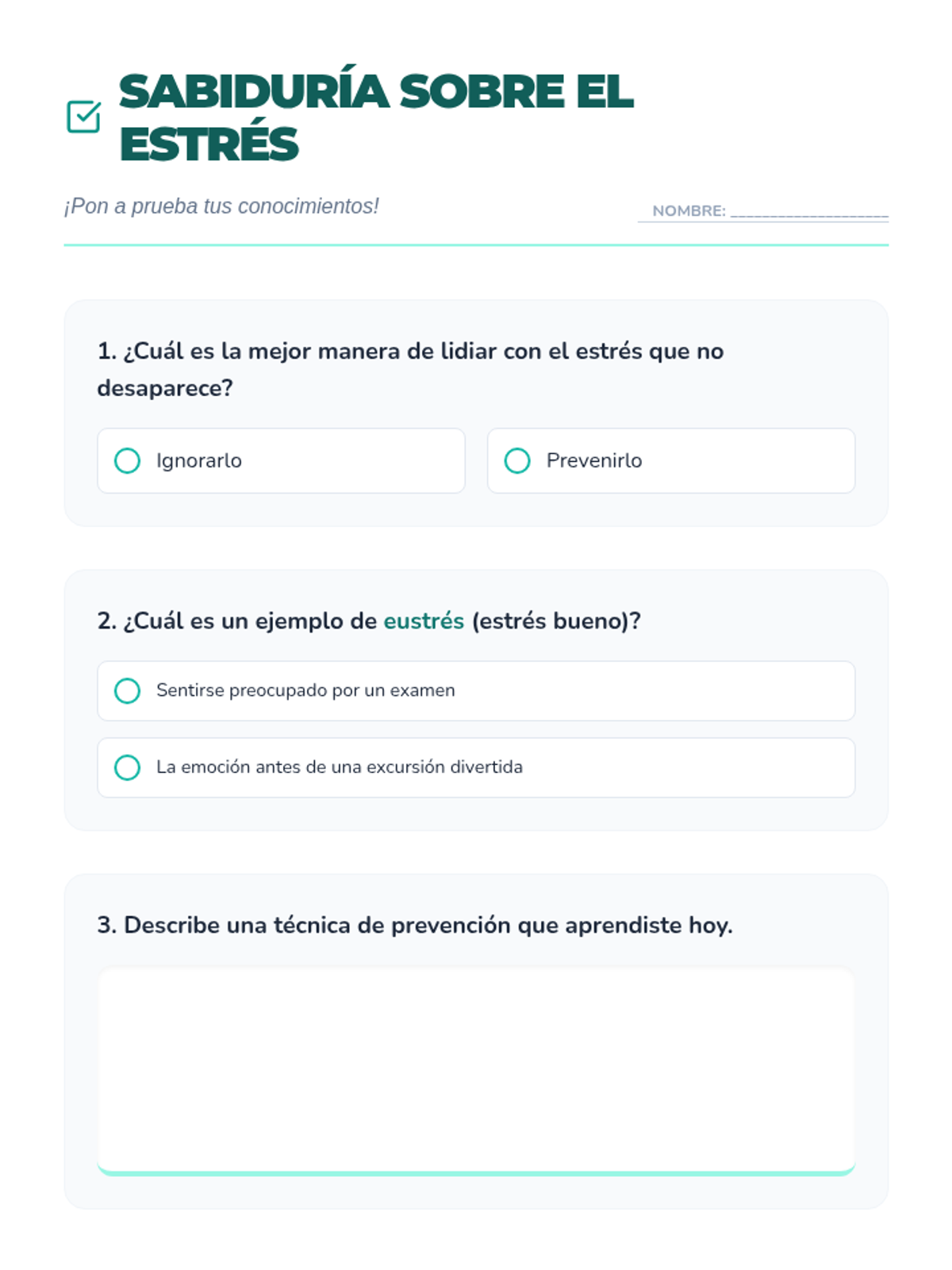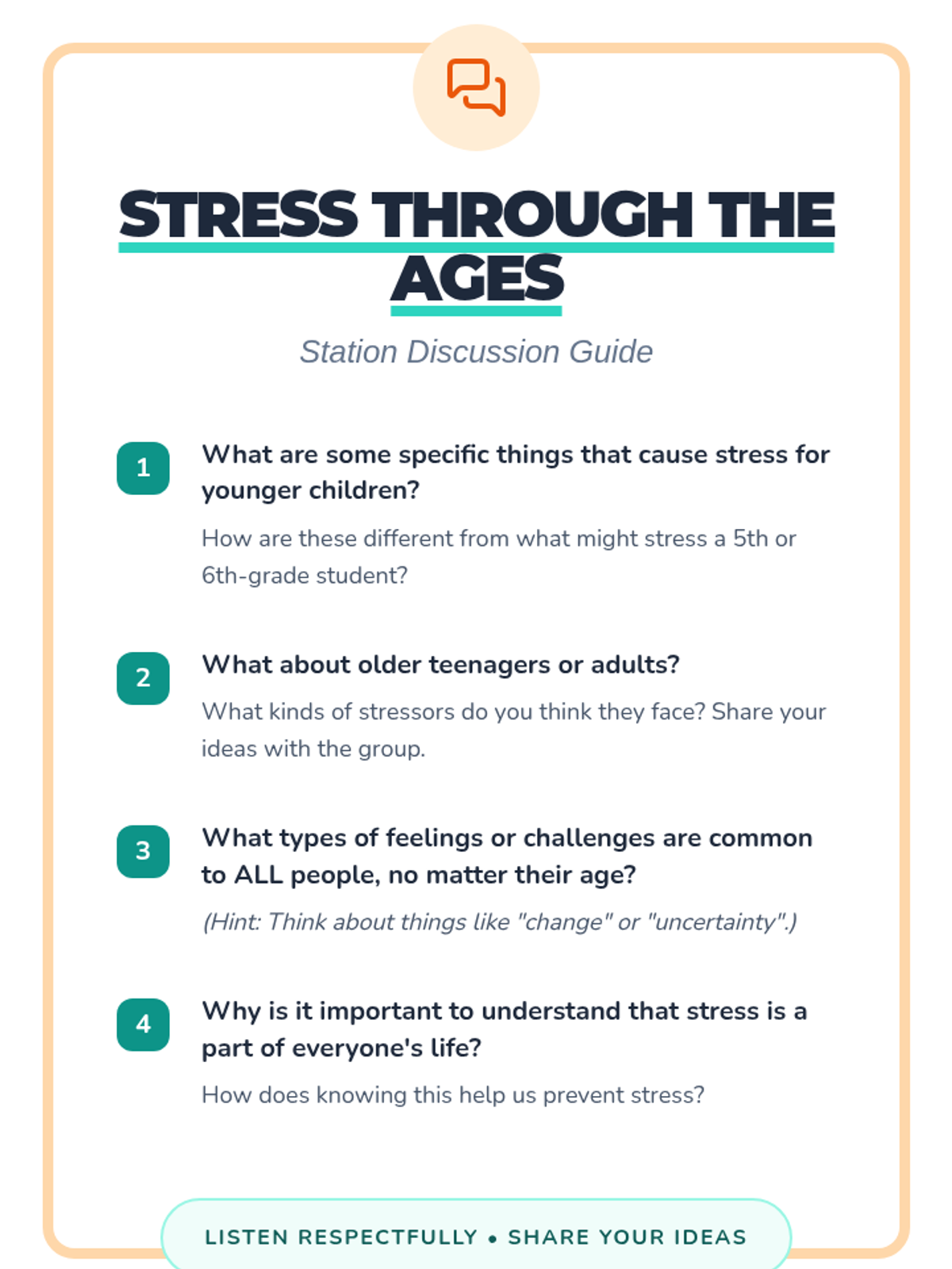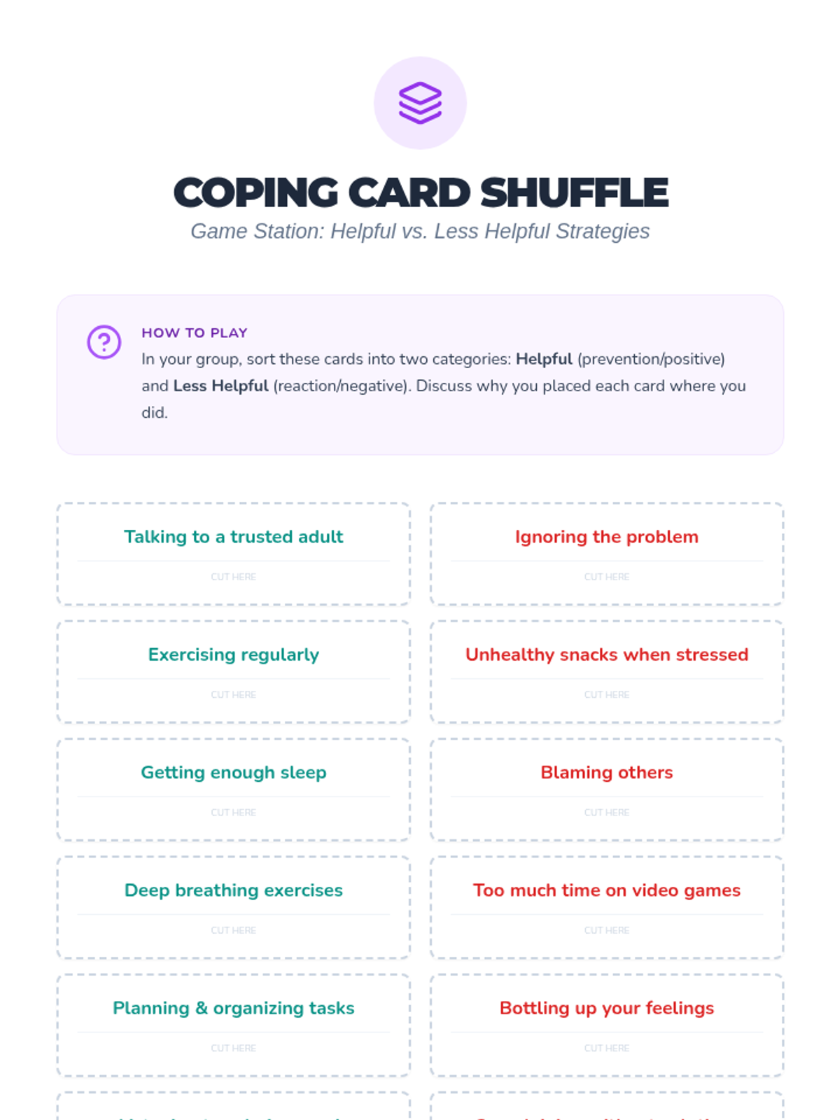 An interactive wellness fair event for 5th and 6th graders to identify stressors and learn proactive prevention strategies through self-guided stations.