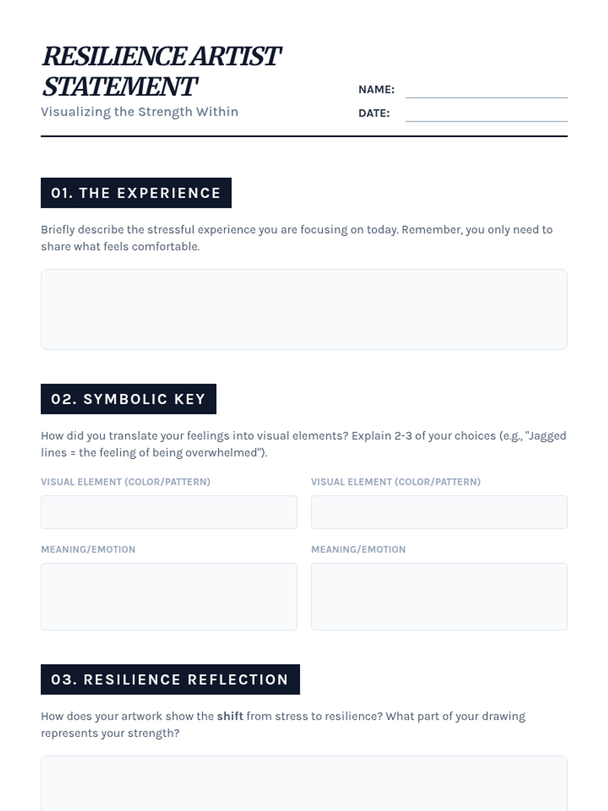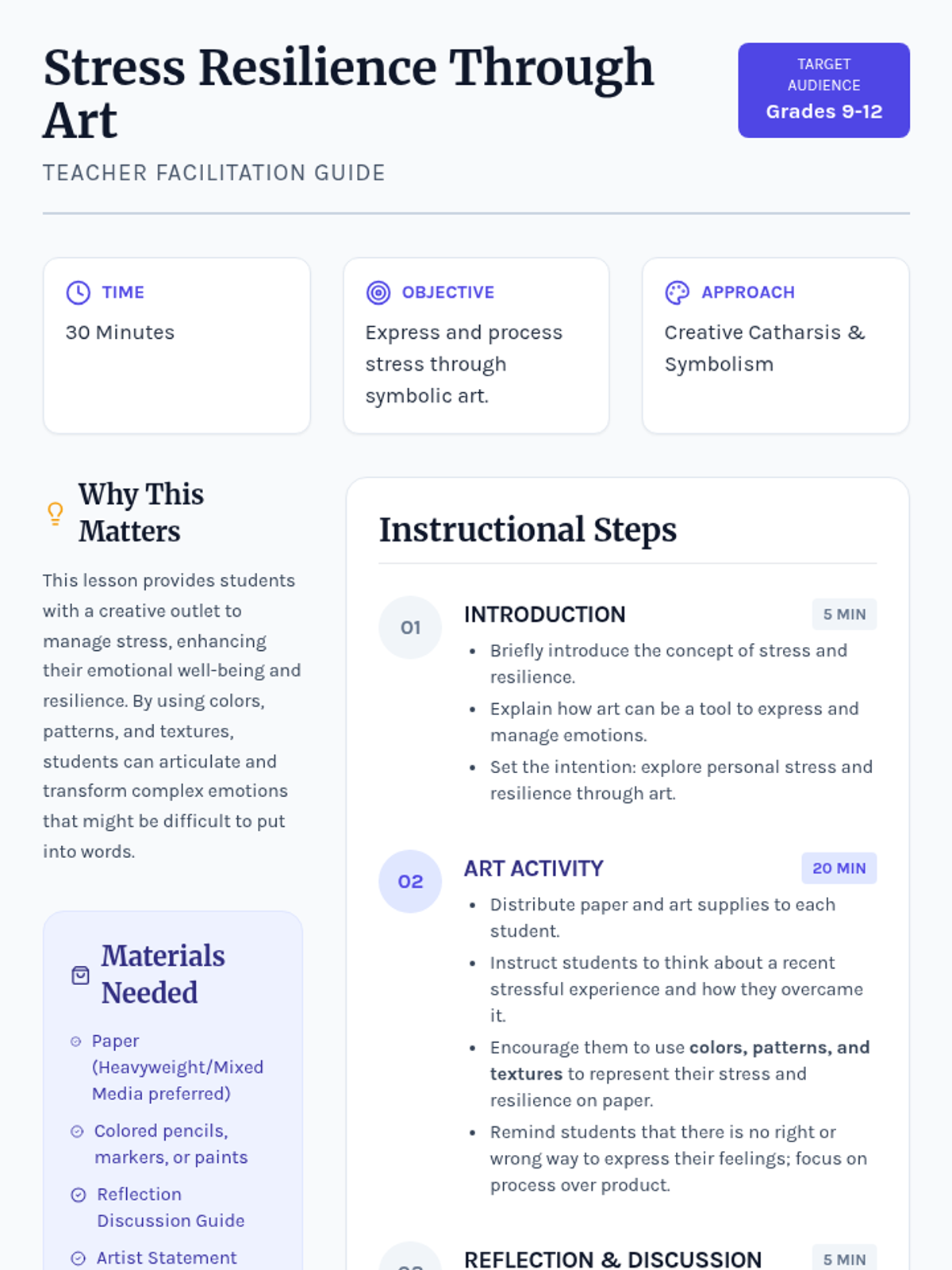 A creative arts-integrated lesson for high school students to explore personal stress and resilience through visual expression and symbolic art making.