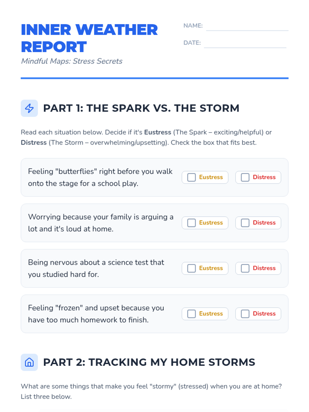 This lesson helps students identify the difference between positive and negative stress and provides practical strategies for managing stress within the home environment.