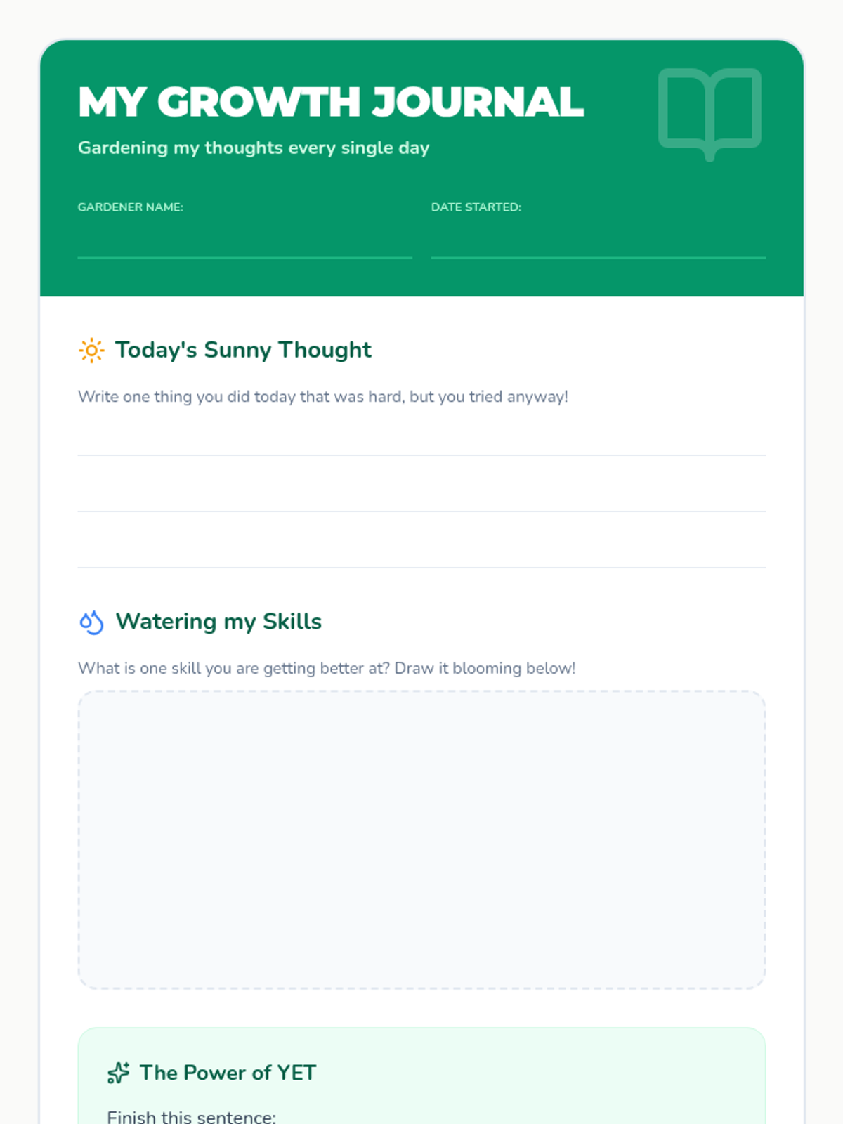A nurturing lesson for K-3 students that uses the metaphor of a garden to teach growth mindset. Students learn to view challenges as 'weeds' to pull and effort as the 'water' that helps their brain plants bloom.