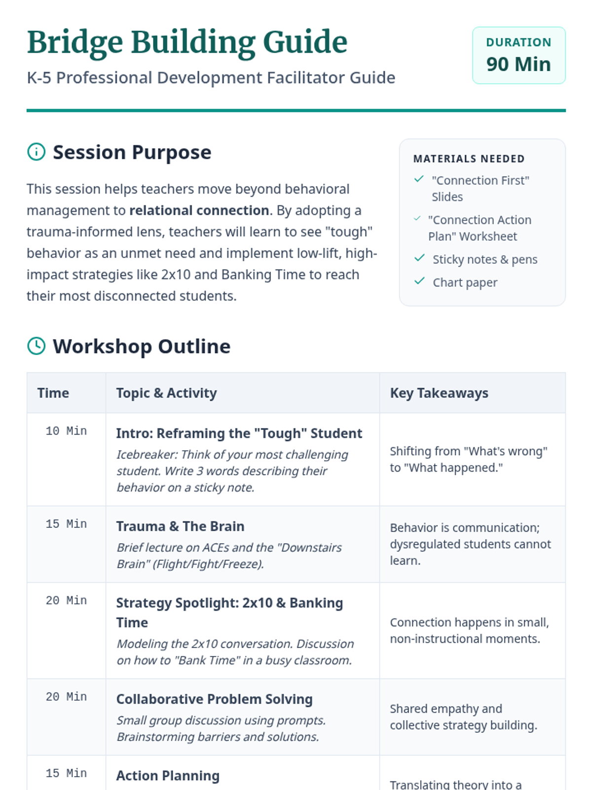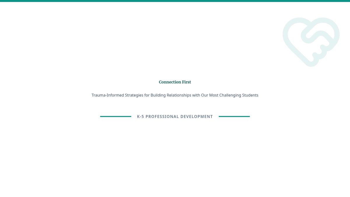 A professional development session for K-5 teachers focused on trauma-informed relationship building and practical strategies for connecting with challenging students.