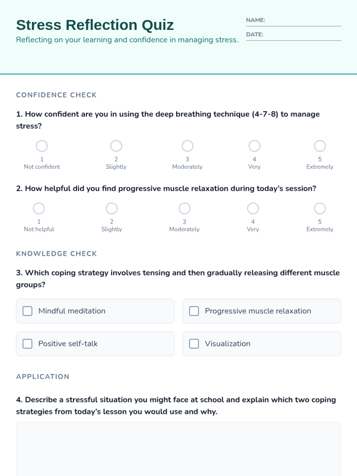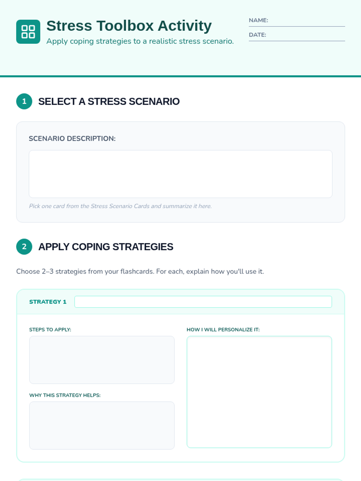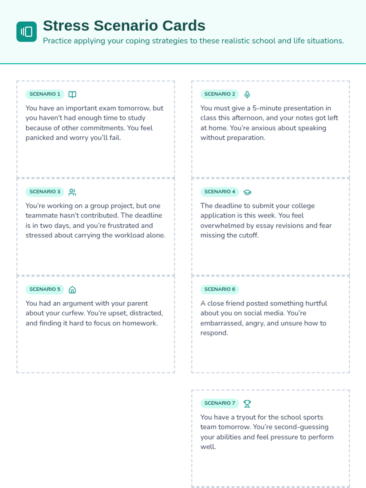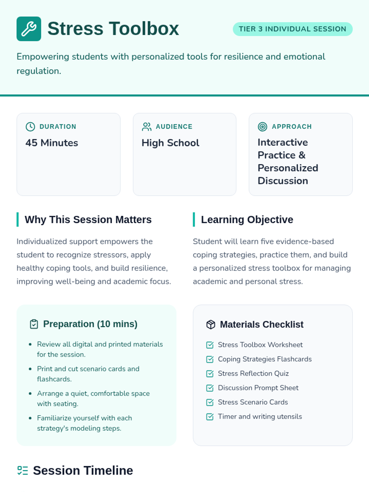 A 45-minute Tier 3 individual session for high school students focused on learning and practicing evidence-based coping strategies for managing stress and building resilience.