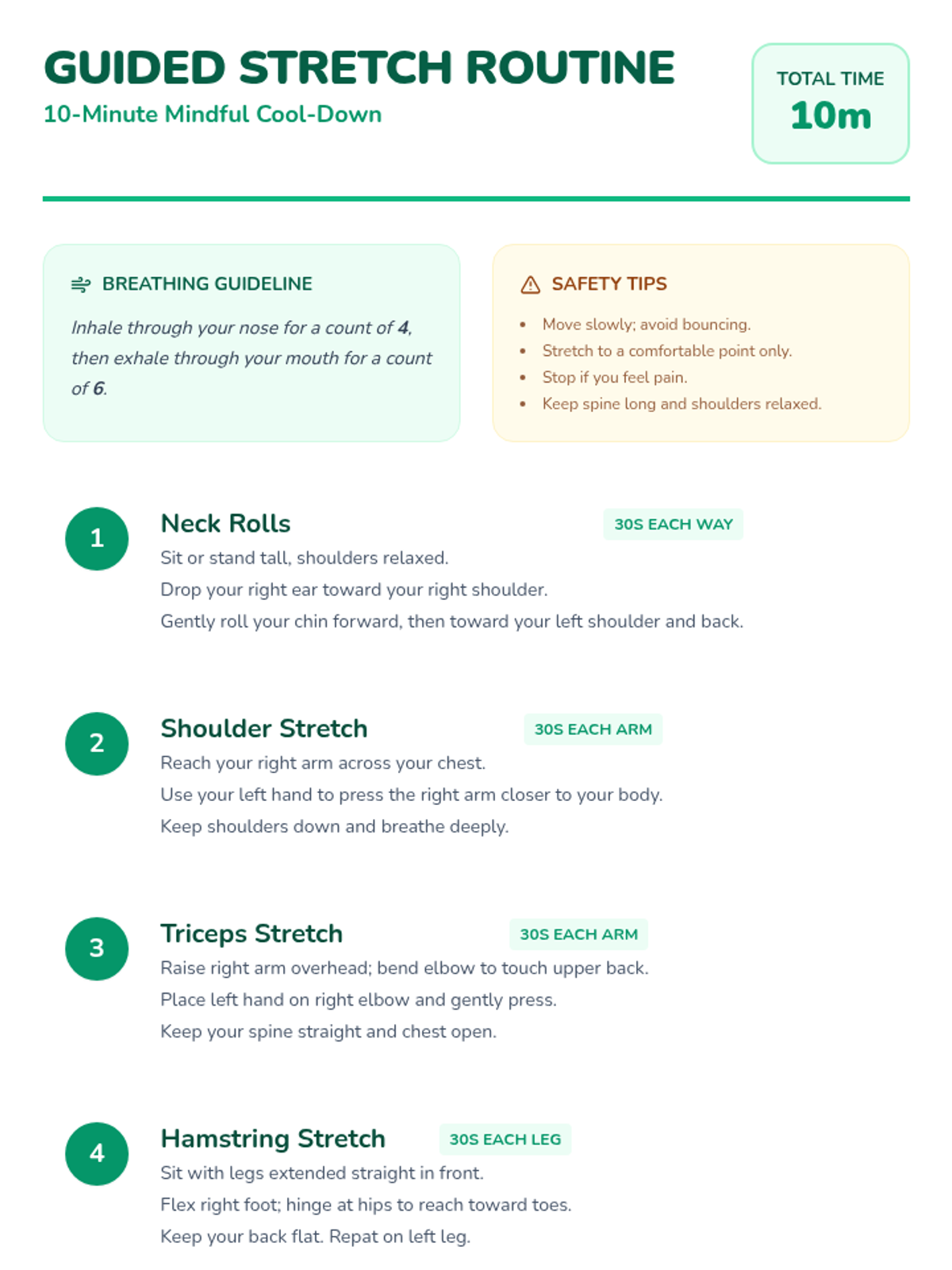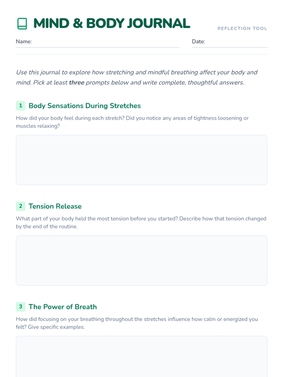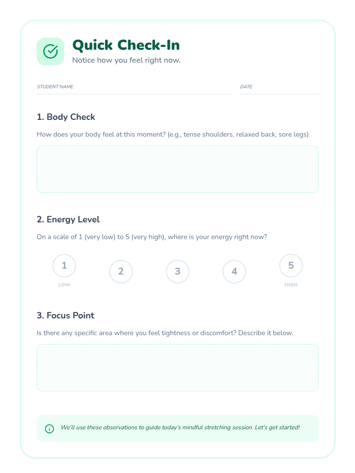 A Tier 3 individual 20-minute session for 6th graders focusing on a cool-down stretching routine and mindfulness journaling to improve flexibility and mental well-being.