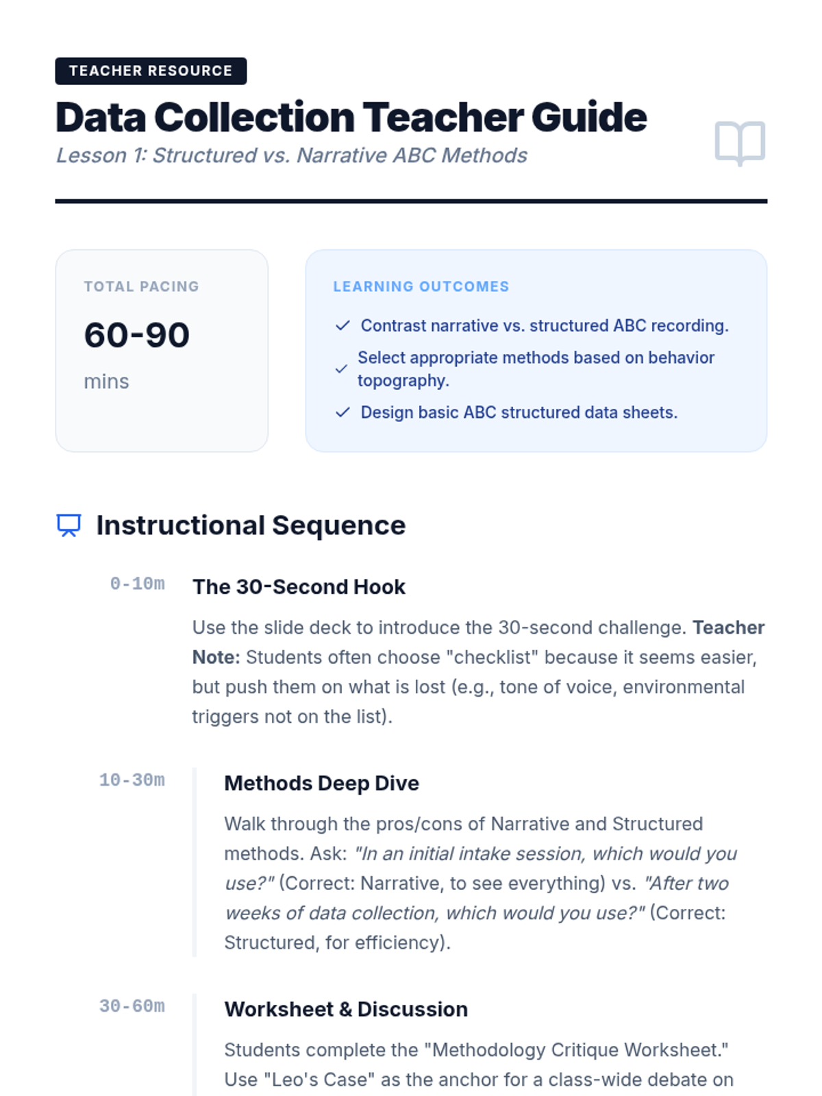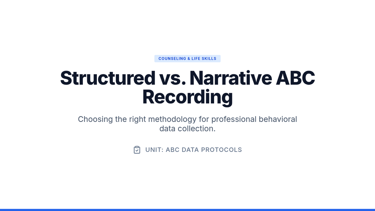 Explore the strengths and weaknesses of narrative versus structured ABC recording methods through comparative analysis and data sheet design.