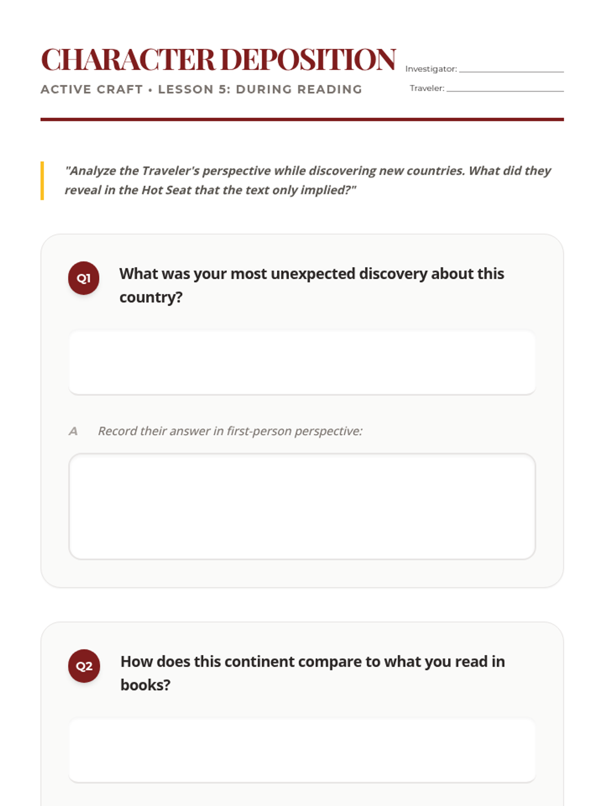 During Reading Strategy: Diving deep into traveler perspectives through the 'Hot Seat' technique while discovering countries.