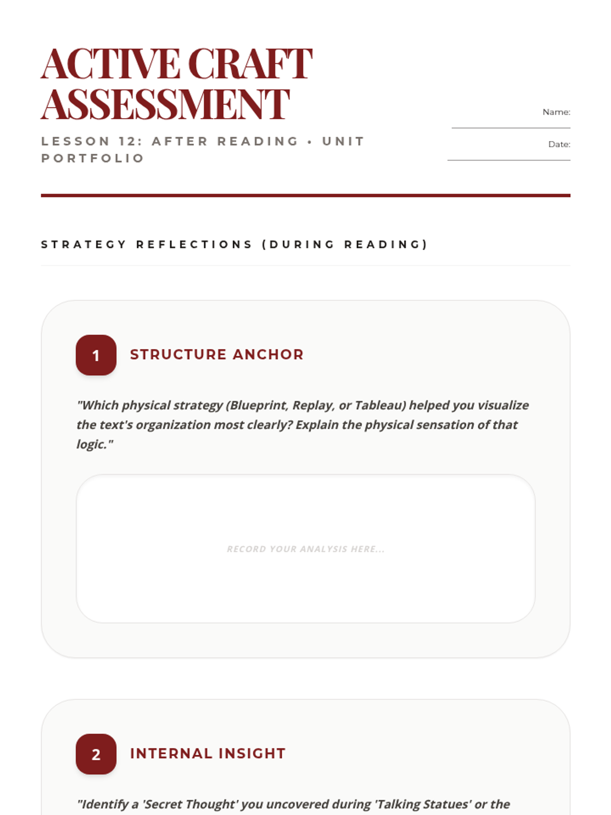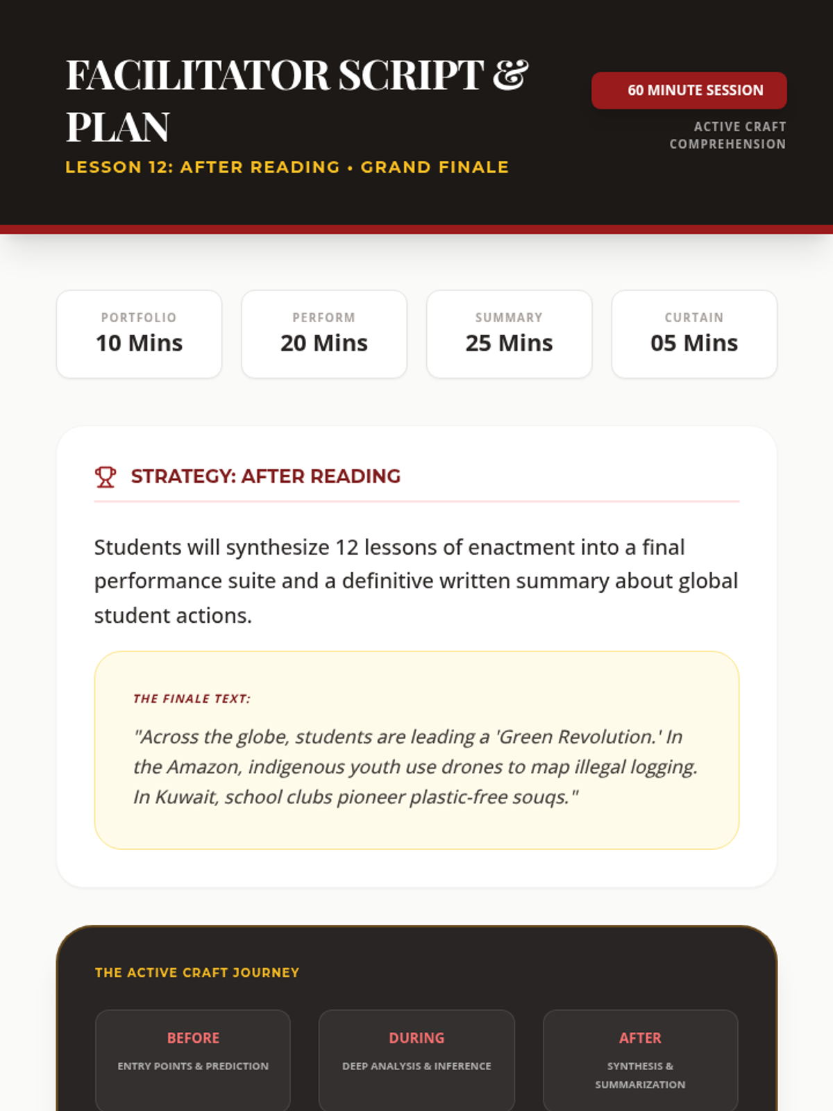 After Reading Strategy: Consolidating skills into a final performance and assessment about students’ actions around the world.