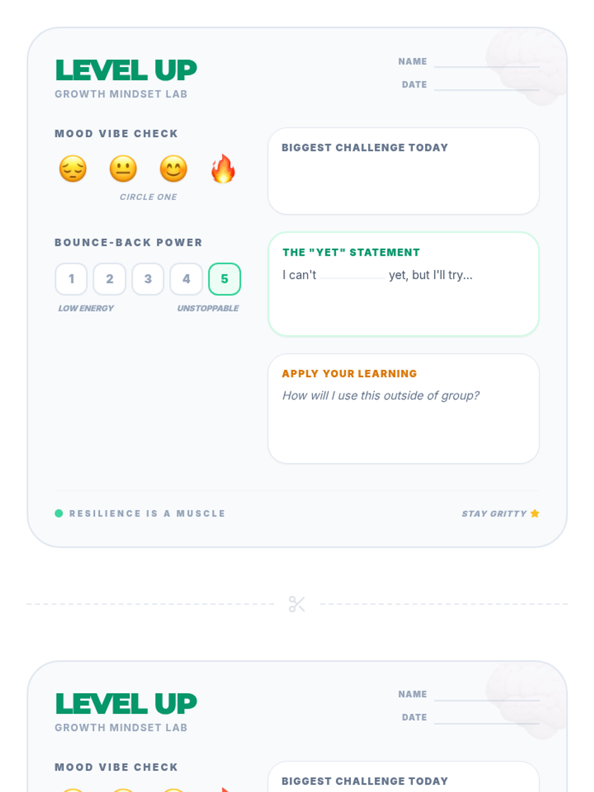 Students build a customized coping toolkit, including personal coping cards and sensory break options, and practice applying these tools to real-world scenarios.