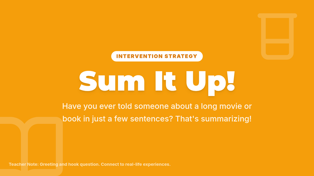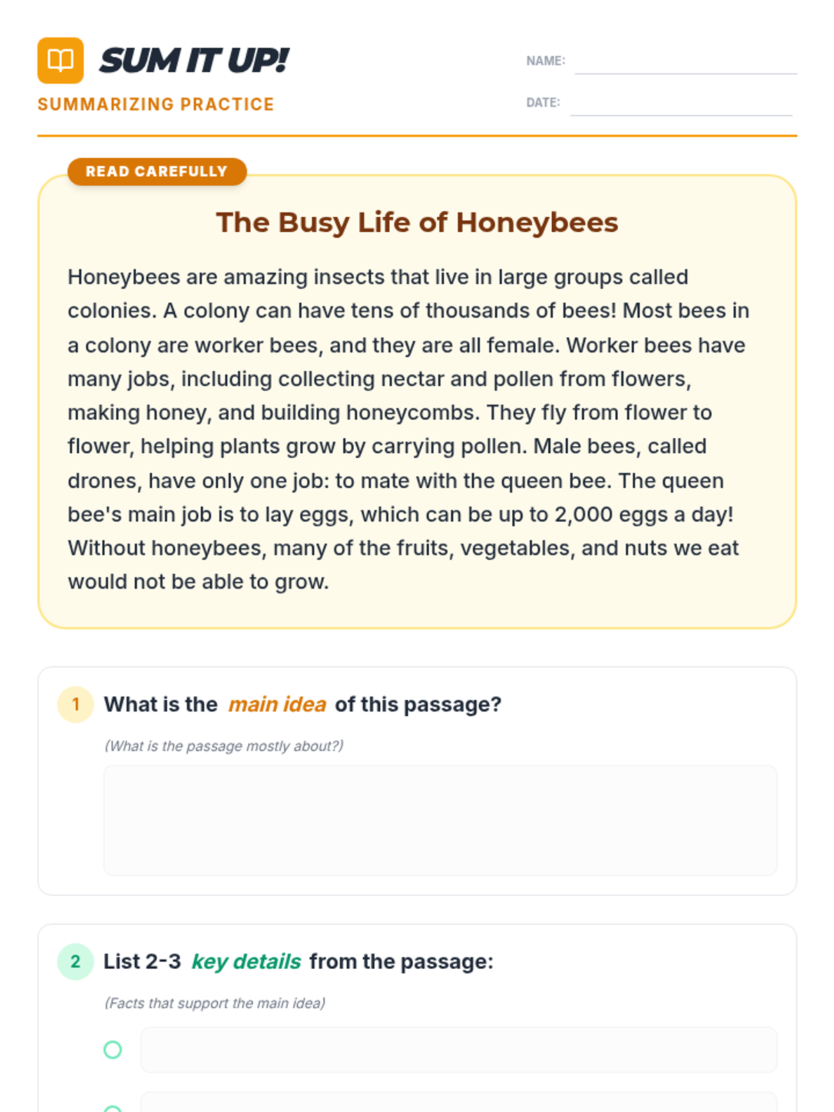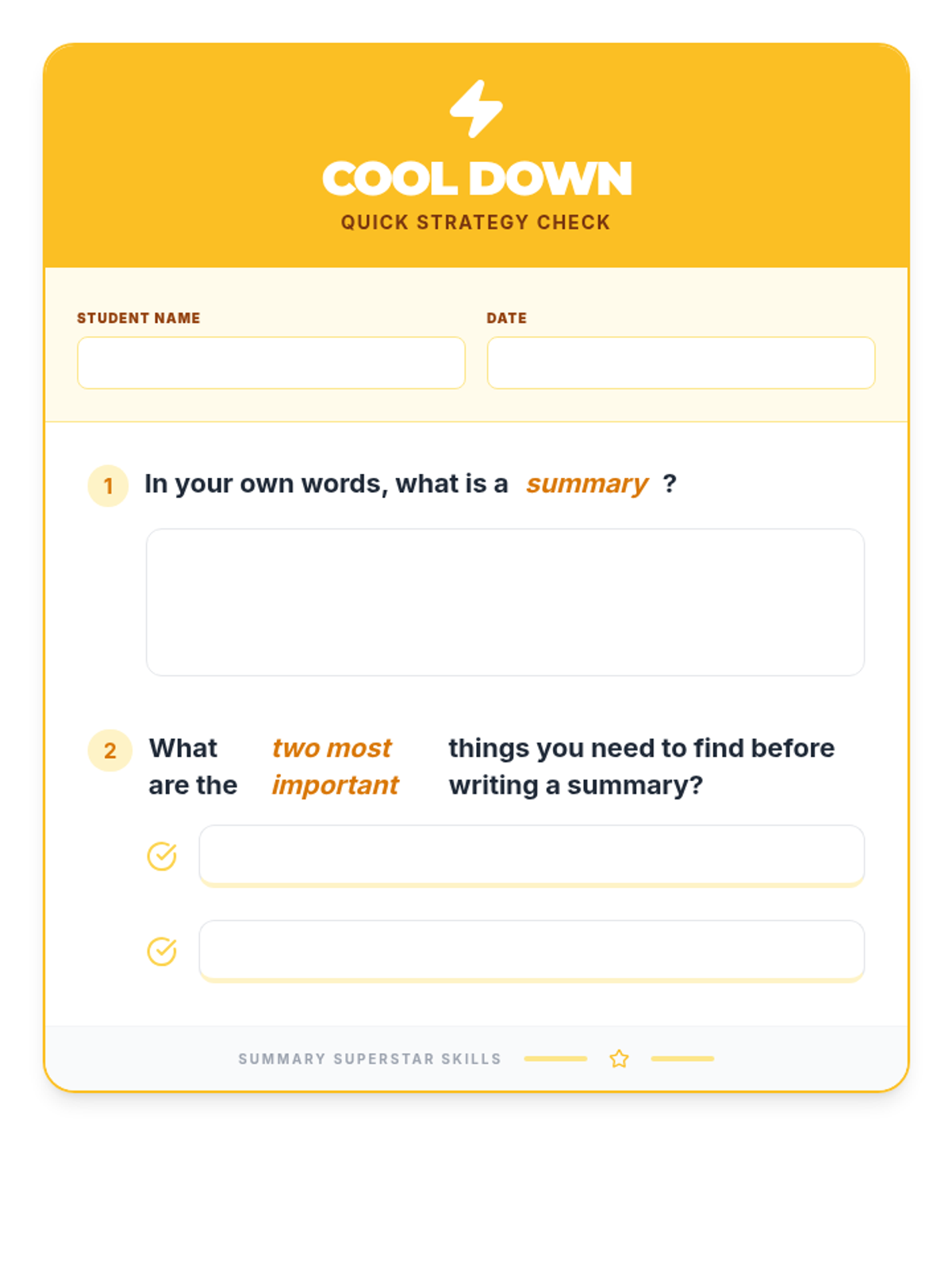 The culminating lesson where students apply all previous skills to write an original summary report based on an informational article.