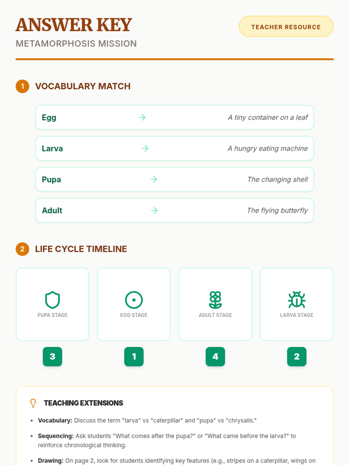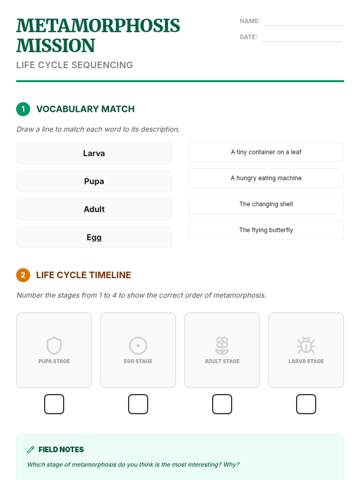 Students will learn the four distinct stages of a butterfly's life cycle and practice sequencing them in the correct chronological order.
