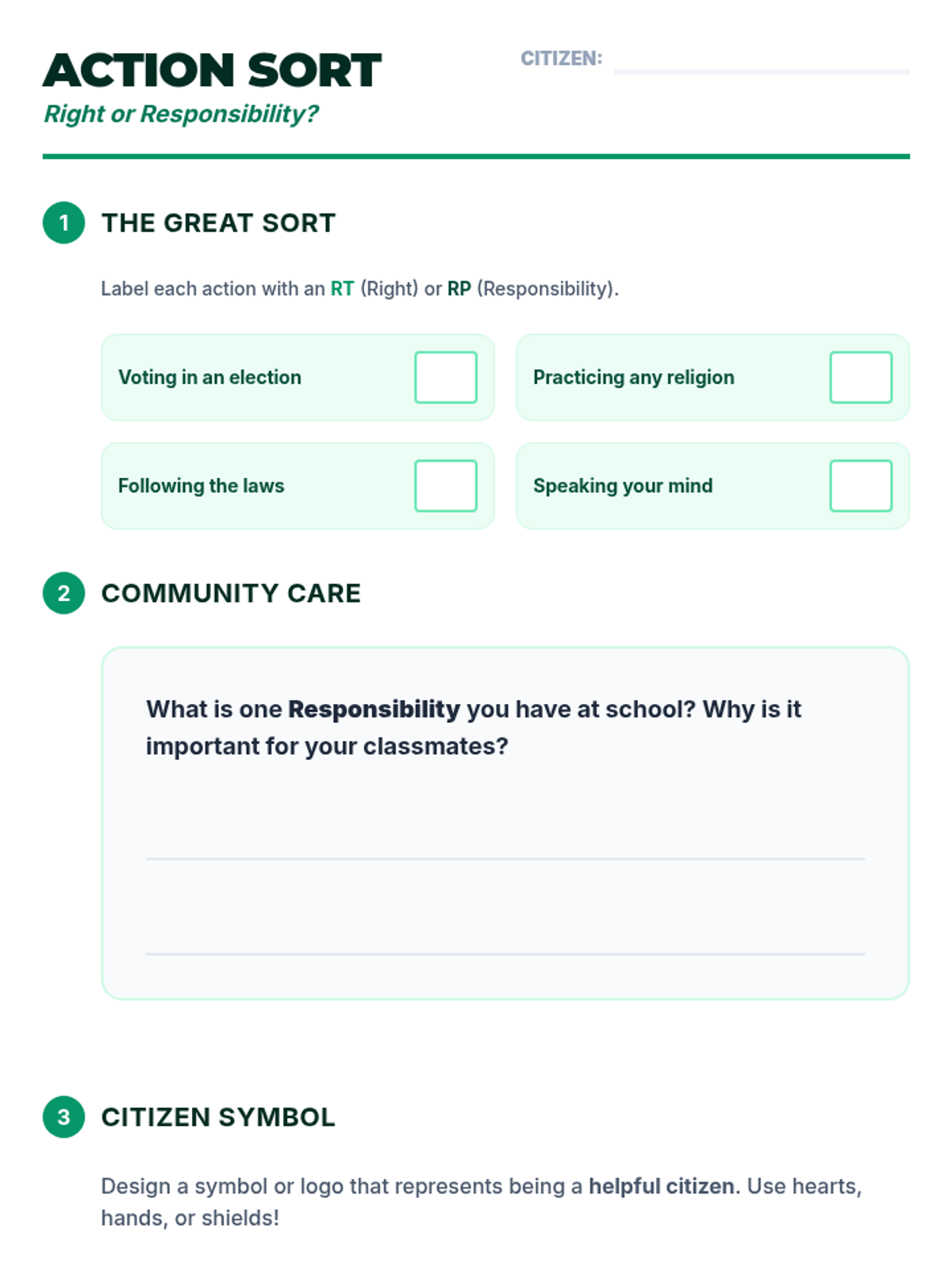 Analyze the distinction between the rights granted to citizens and the responsibilities they hold within a community.