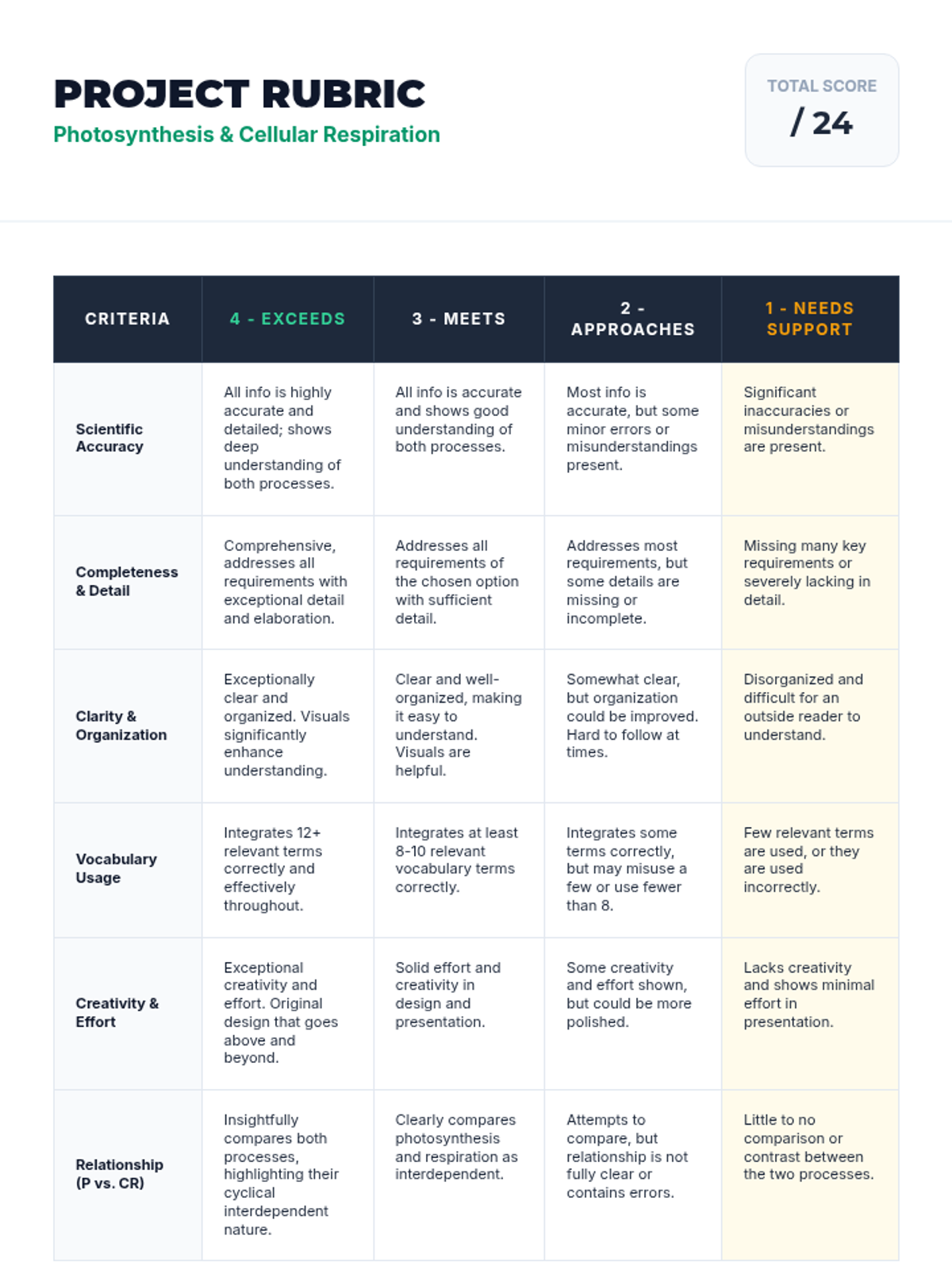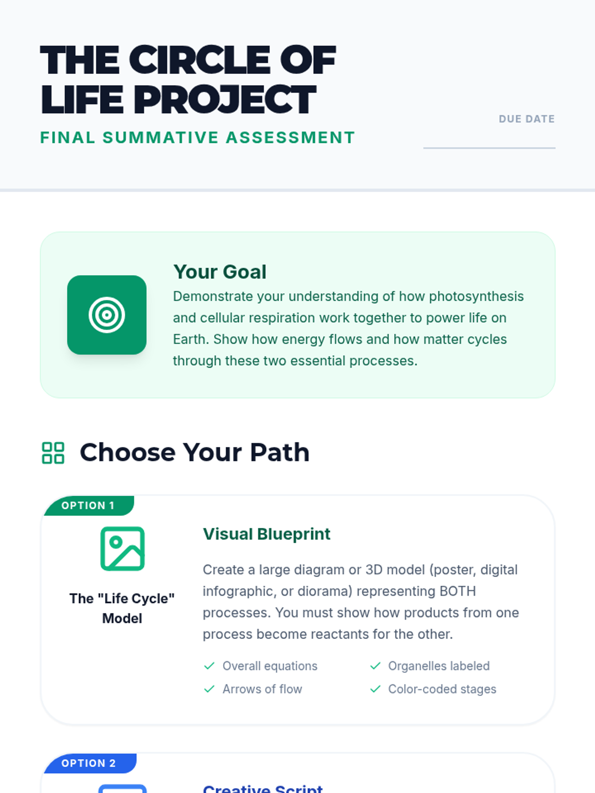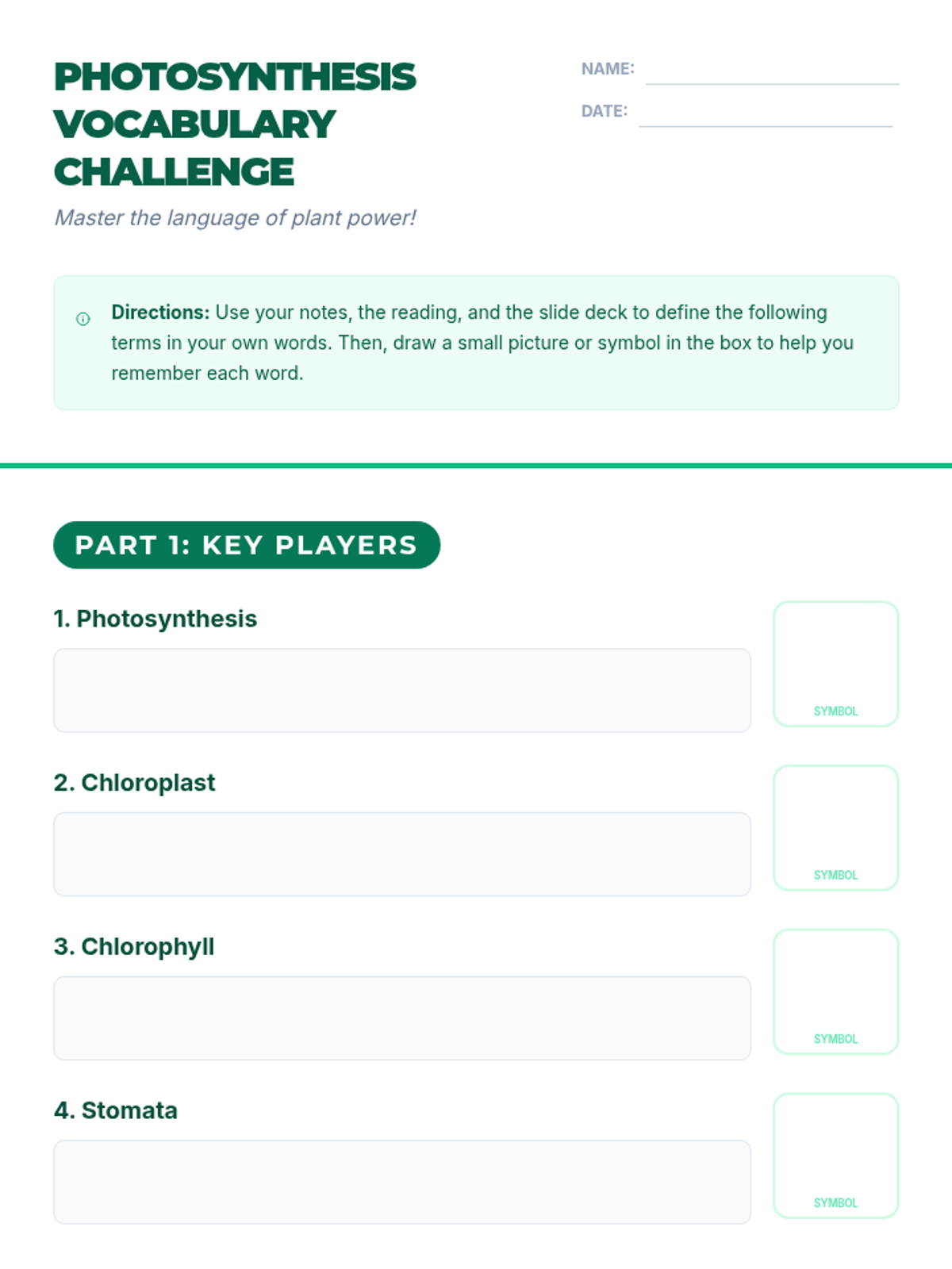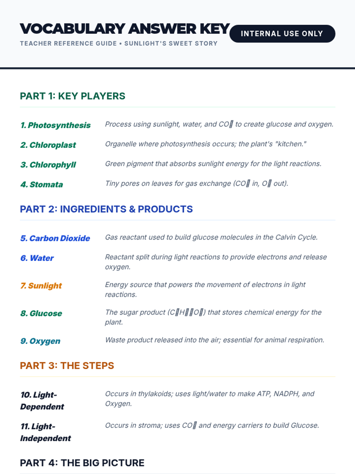 A comprehensive 500-minute multi-session lesson for high school biology students that breaks down the process of photosynthesis, its stages, real-world impact, and relationship to cellular respiration.