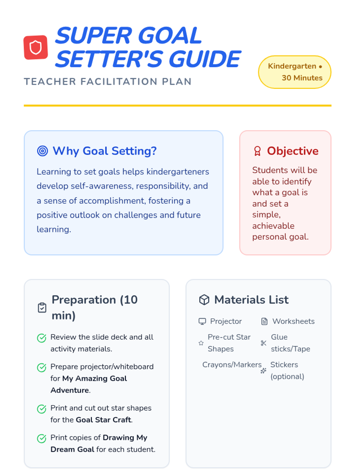 A fun, superhero-themed introduction to goal setting for kindergarteners, helping them identify simple, achievable goals and celebrate their progress.