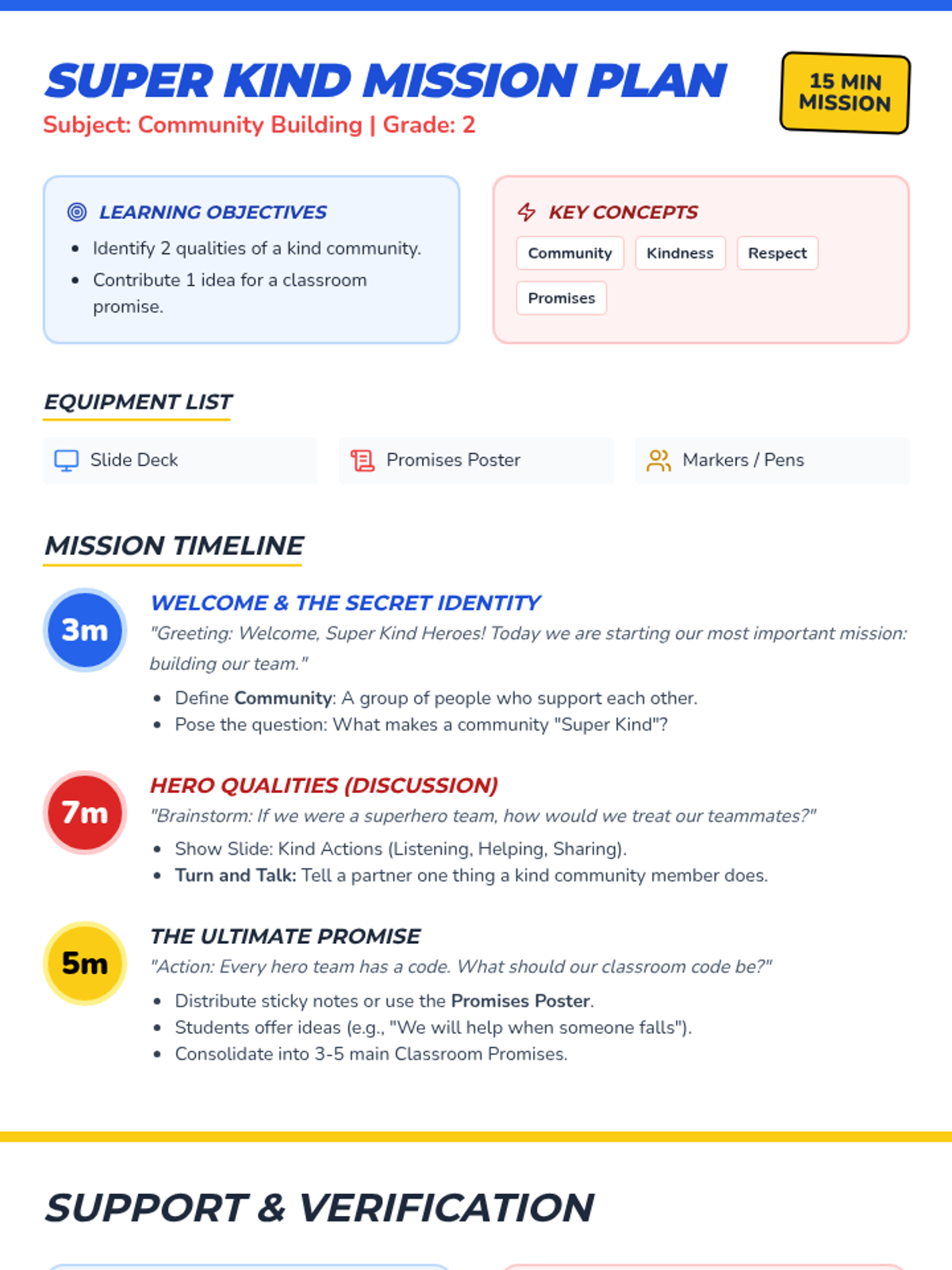 A quick 15-minute mini-lesson designed to introduce 2nd graders to the concepts of kindness and community, culminating in a shared classroom promise.