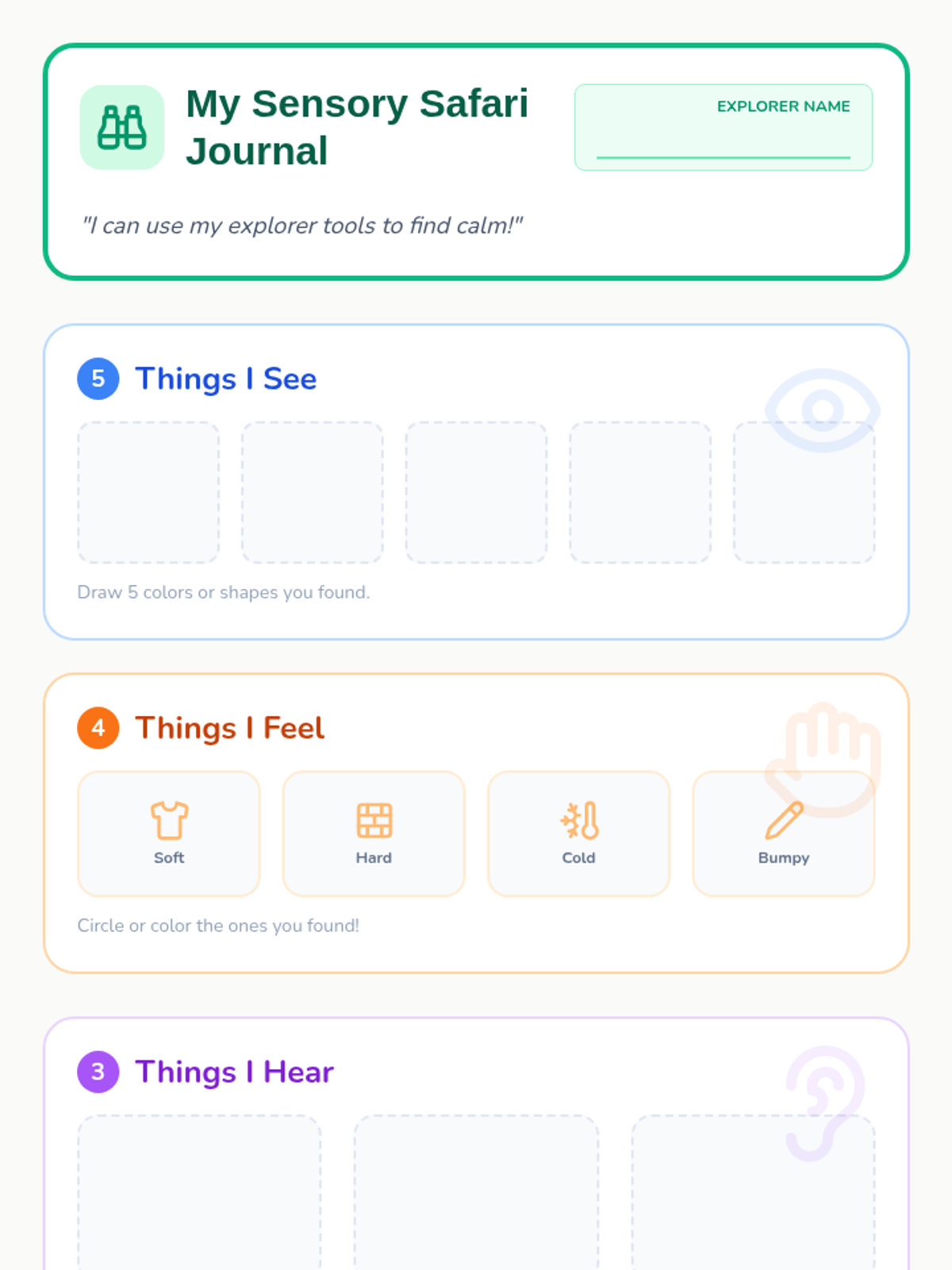 A gentle introduction to managing anxiety and school jitters for Pre-K students, using five-senses grounding techniques to build emotional resilience.