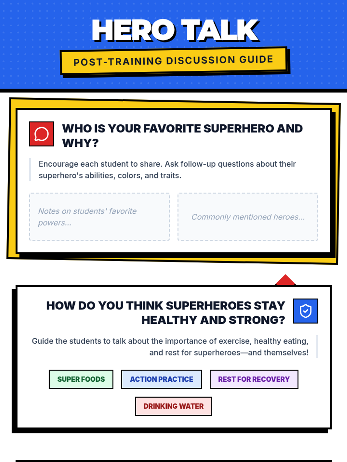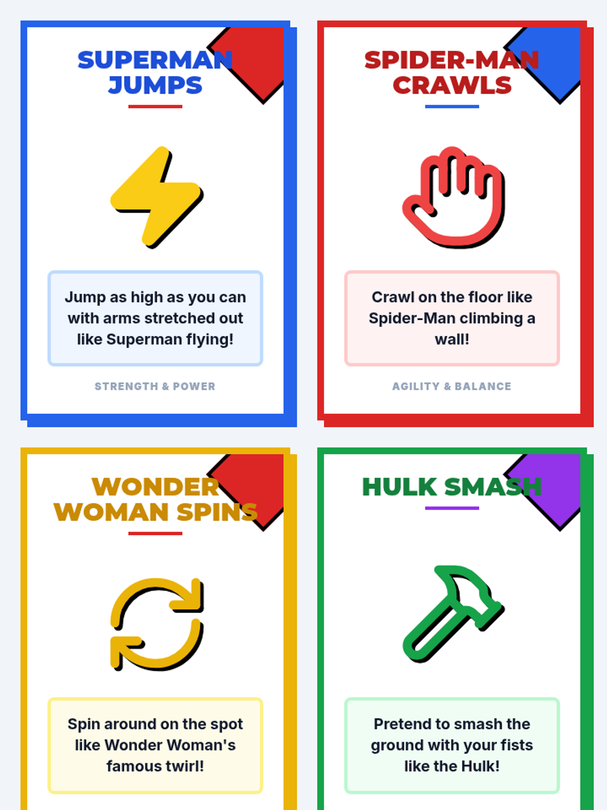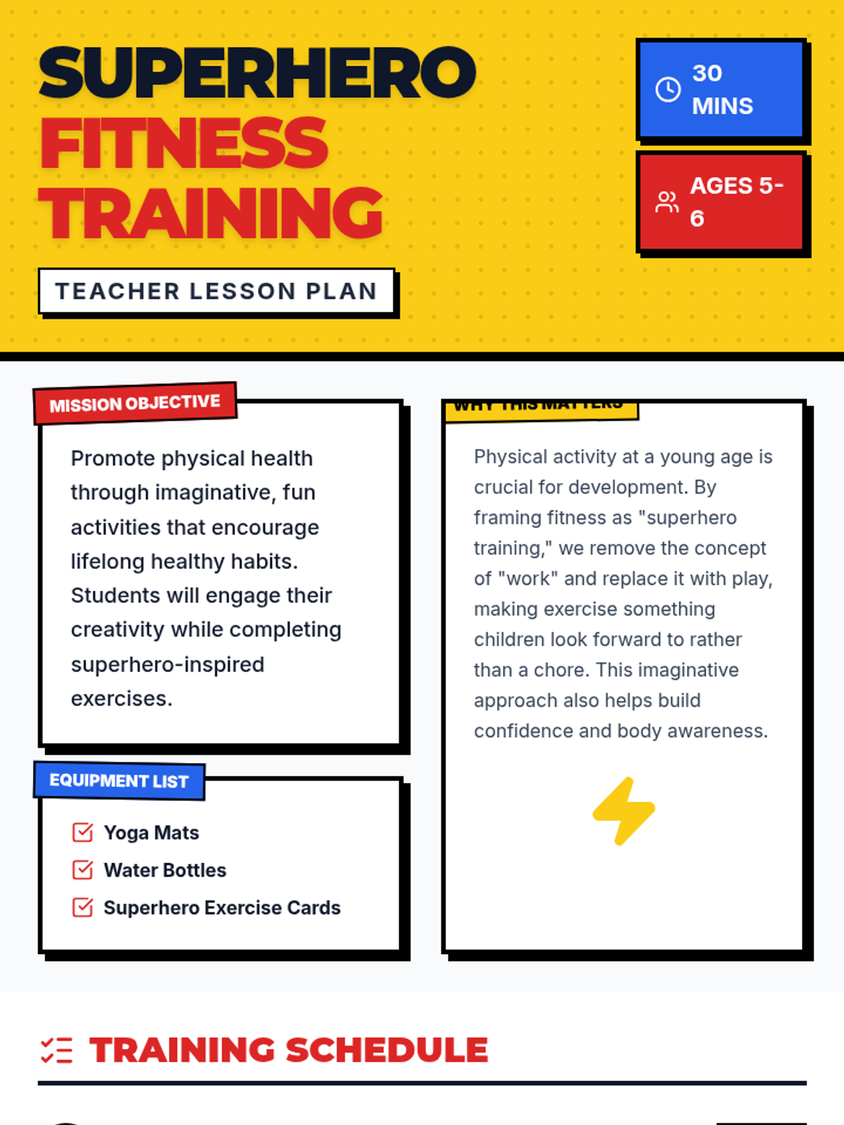 A high-energy fitness lesson for young children where they train like superheroes to promote physical health and imagination.