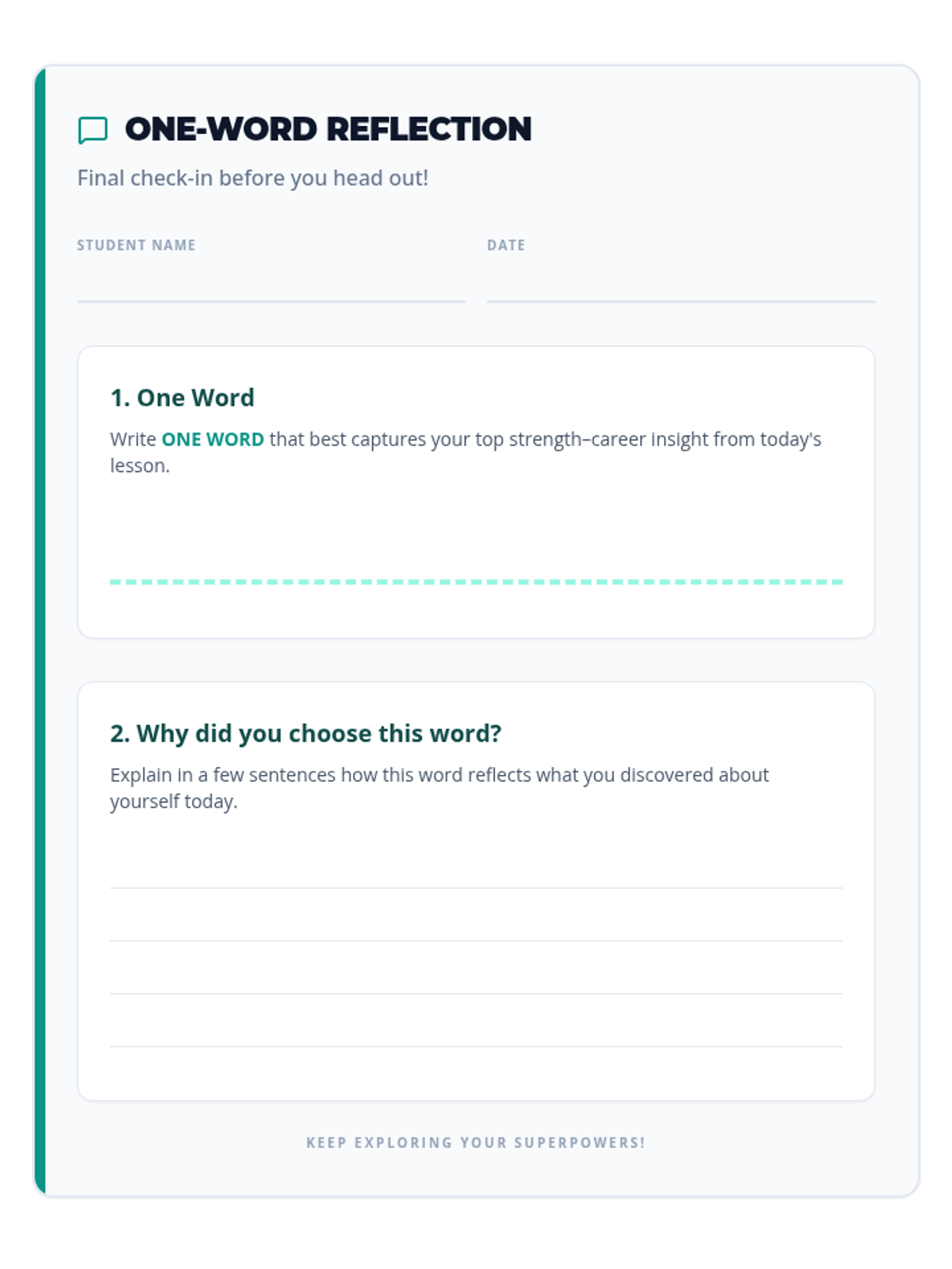 A quick, celebratory check-in for 8th graders as they prepare for high school. Includes a student flyer for goal-setting and a teacher guide for facilitating the transition discussion.