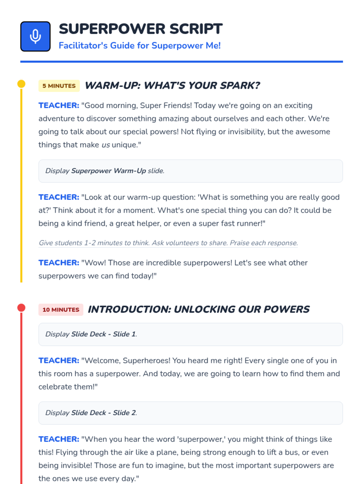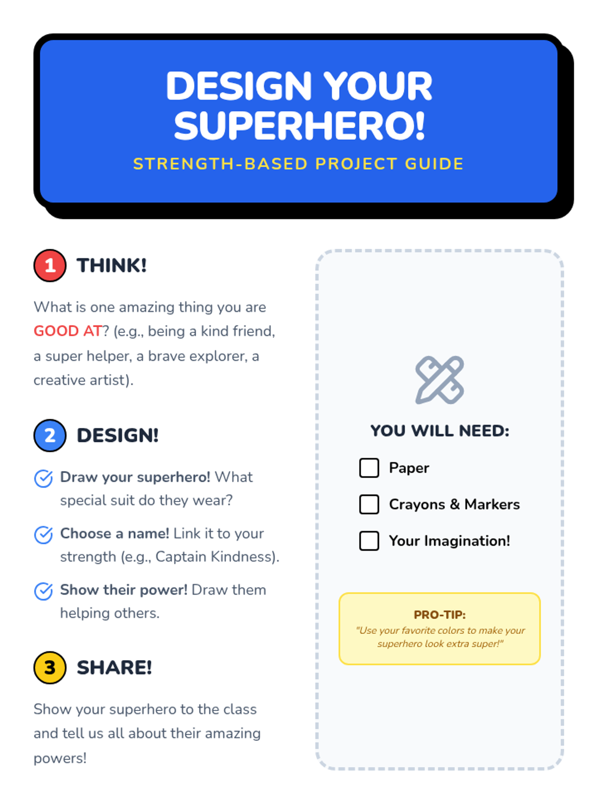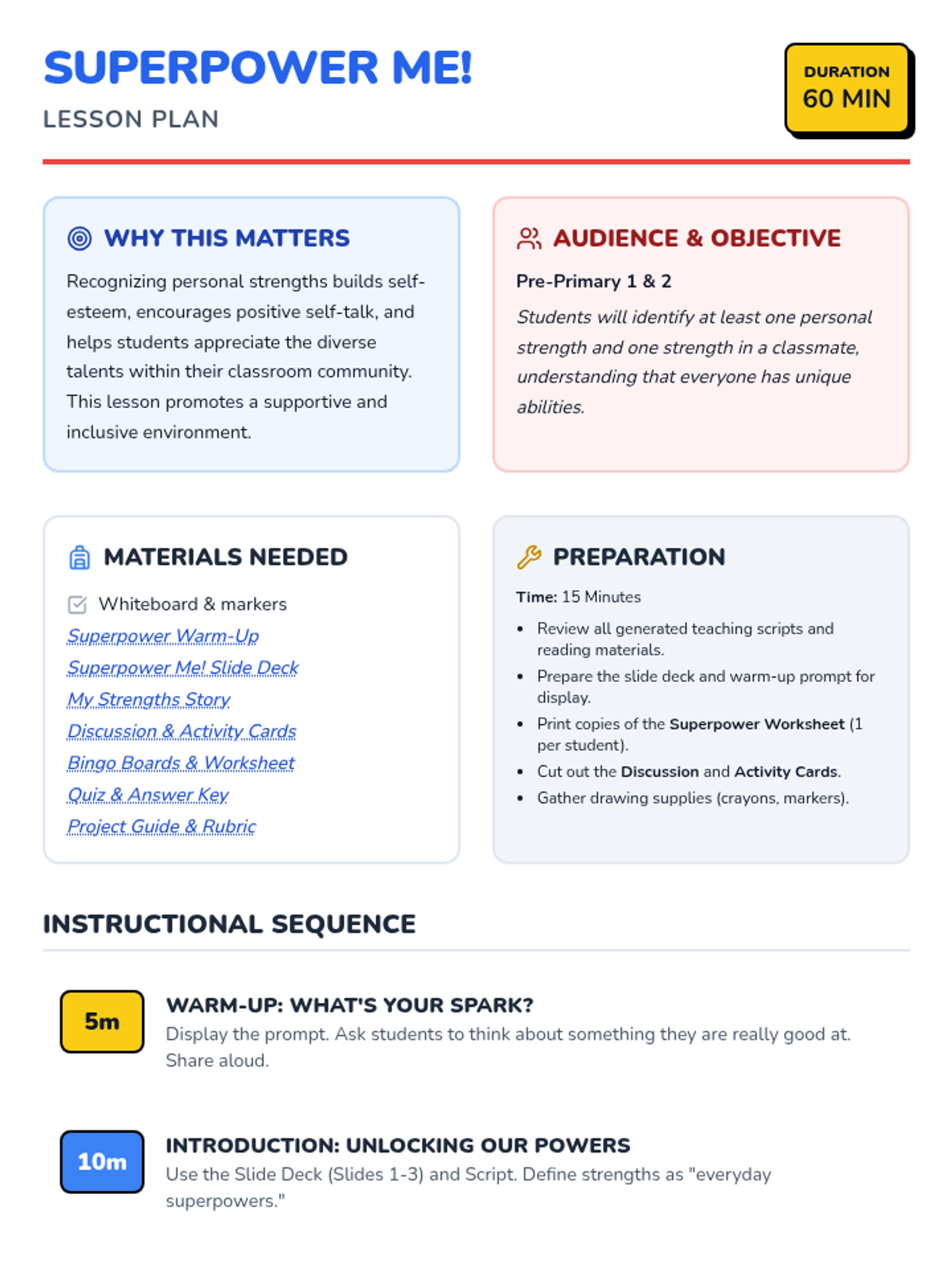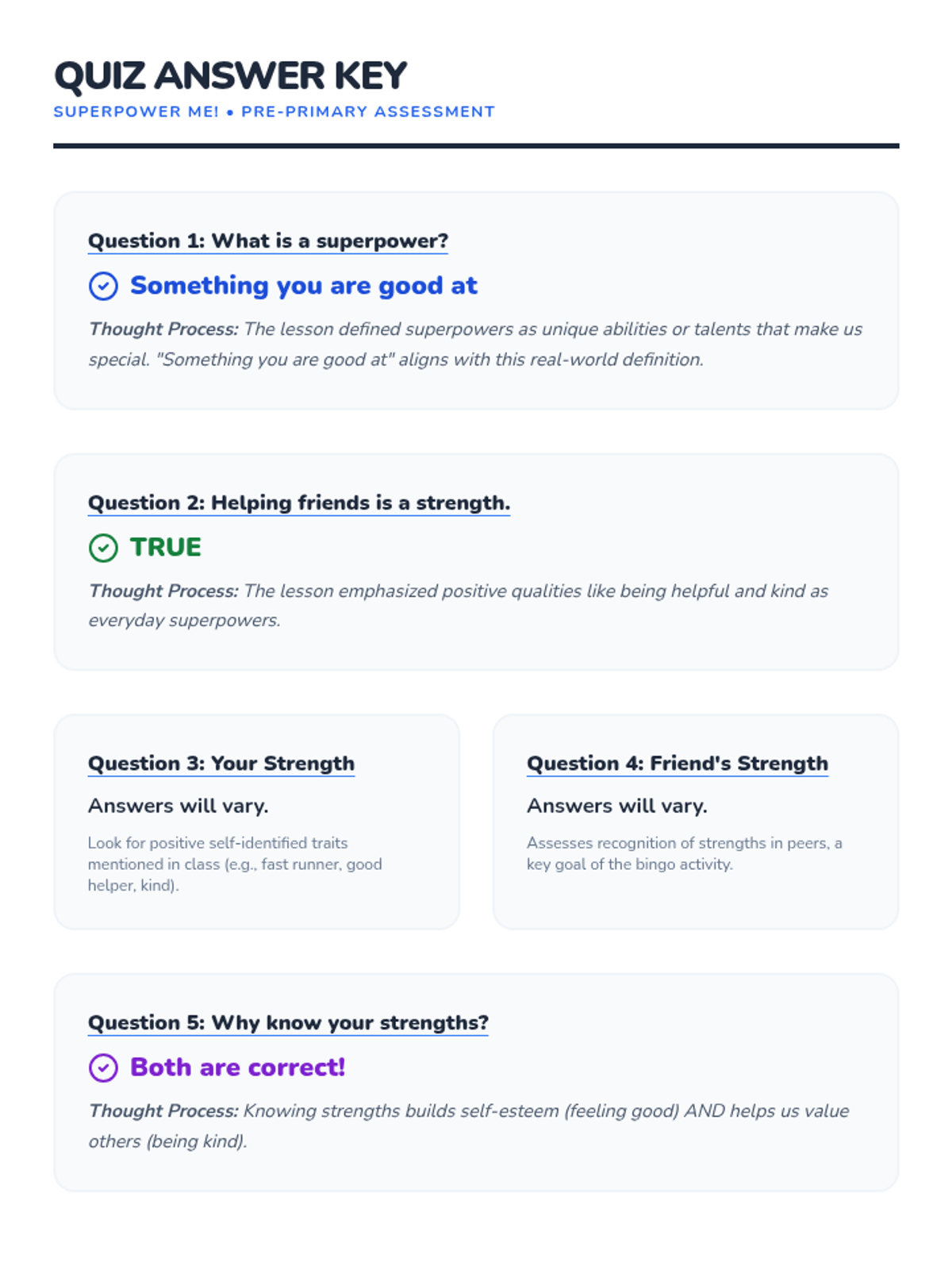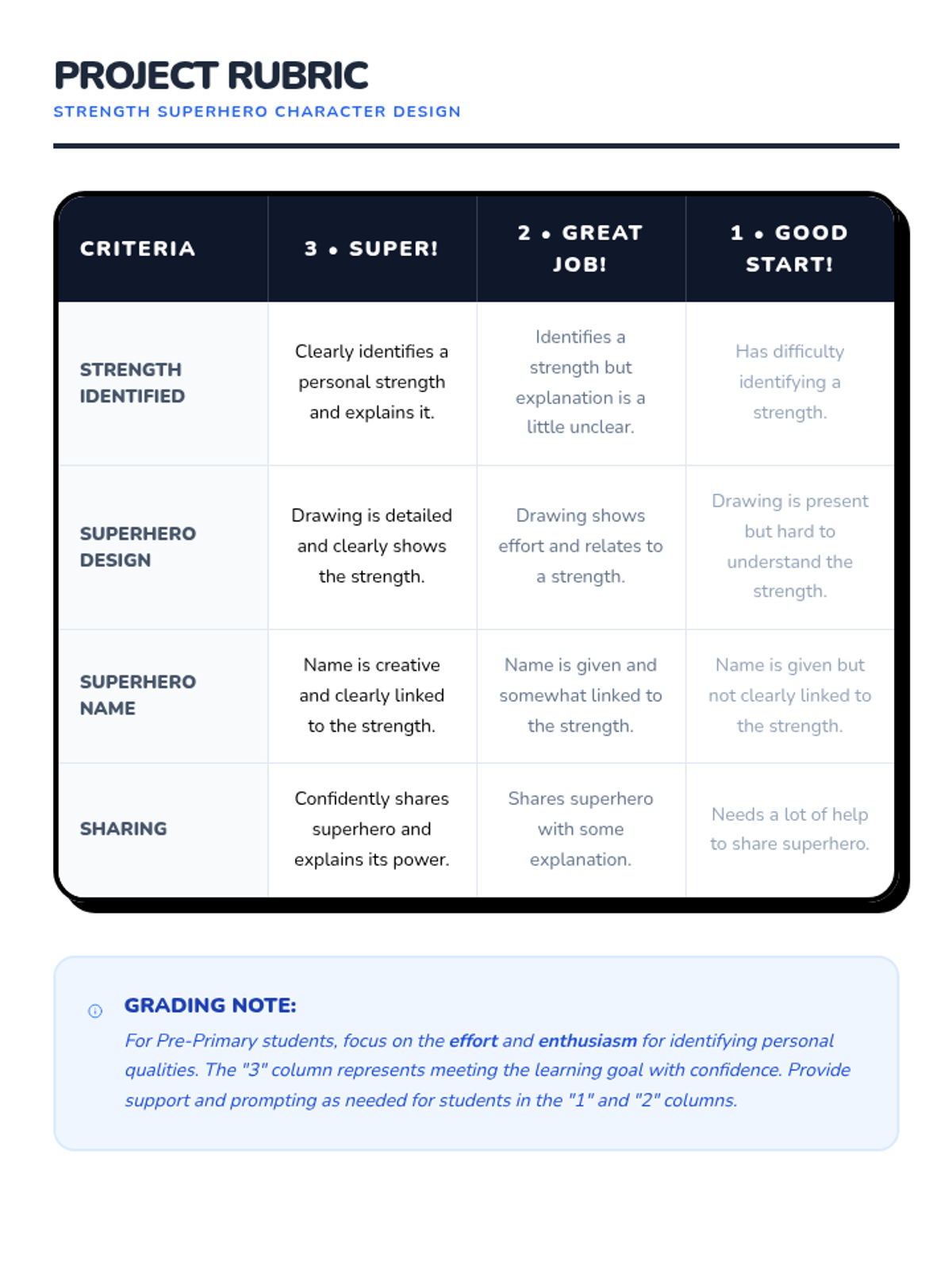 A 60-minute lesson for Pre-Primary students to identify and celebrate their unique strengths as 'everyday superpowers,' fostering self-esteem and community.