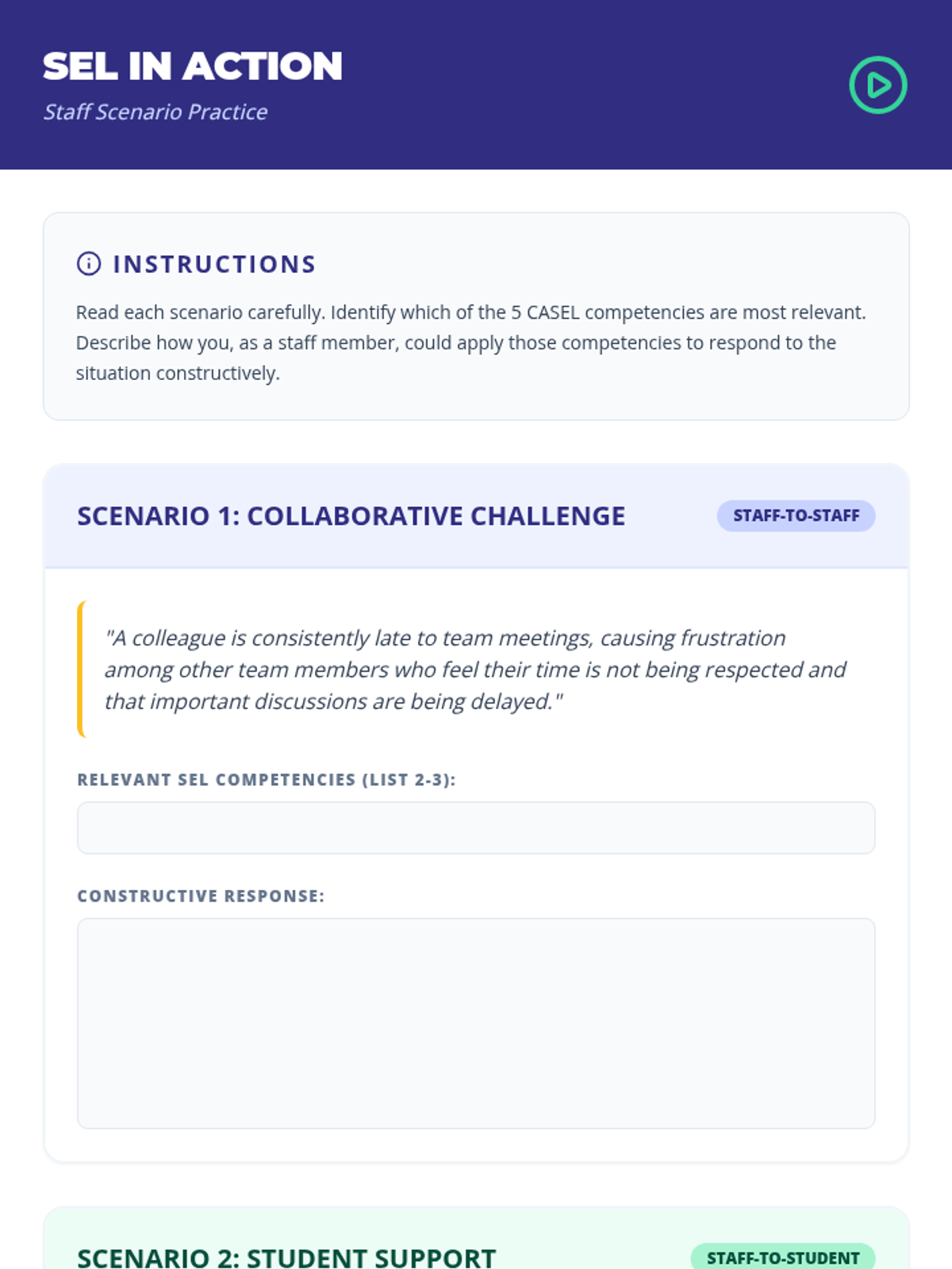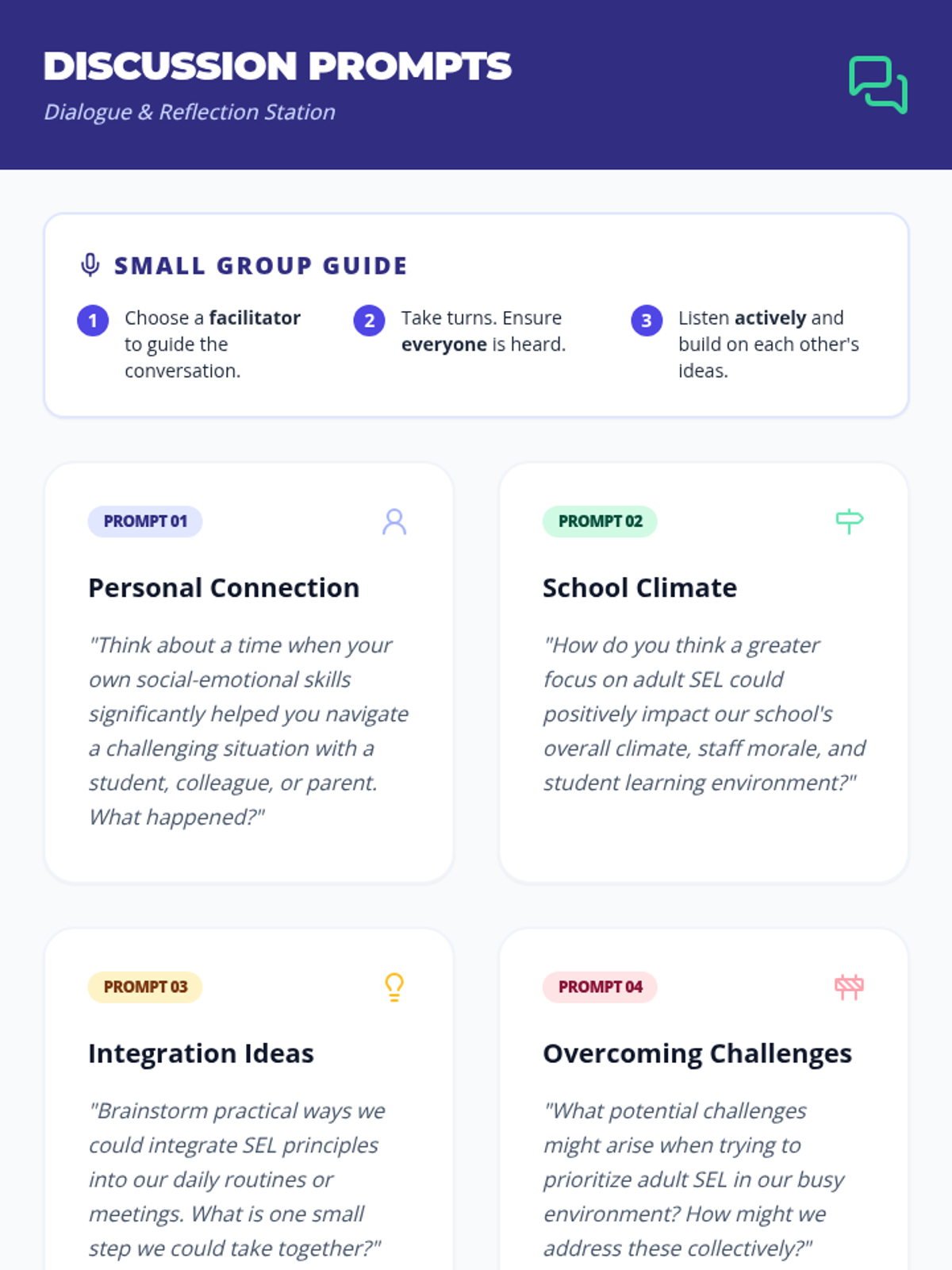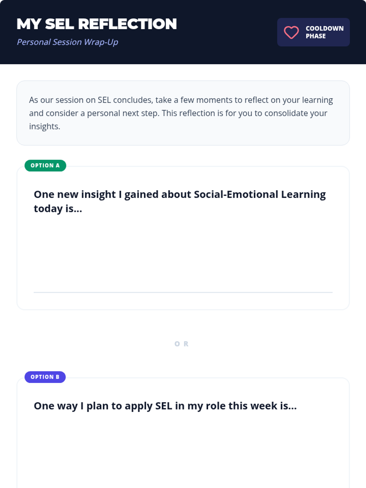 This professional development session introduces SEL to school staff, emphasizing its importance for adult well-being and student success through interactive activities and reflection.