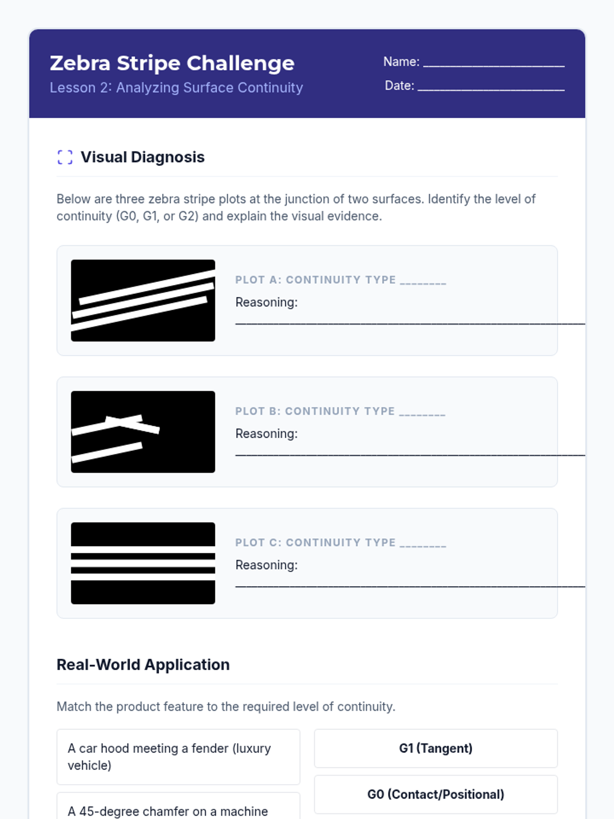 Creating complex surfaces using lofting and boundary tools while ensuring smooth G1 and G2 transitions.