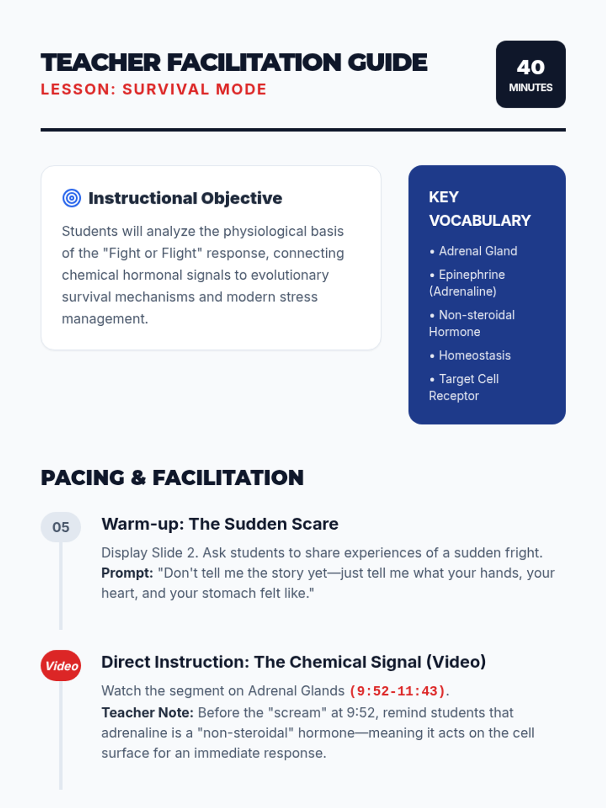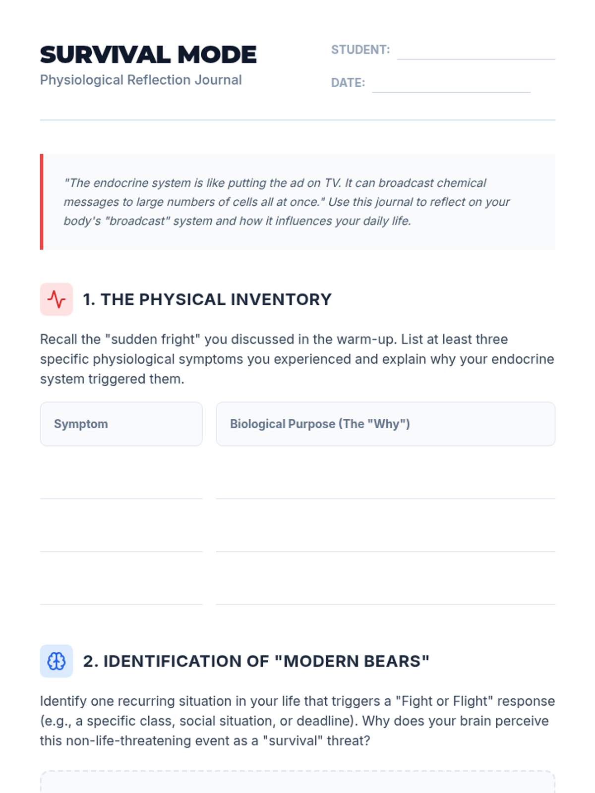 Students will explore the physiological and evolutionary roots of the 'Fight or Flight' response, analyzing how the endocrine system prepares the body for survival and how to manage these responses in a modern context.