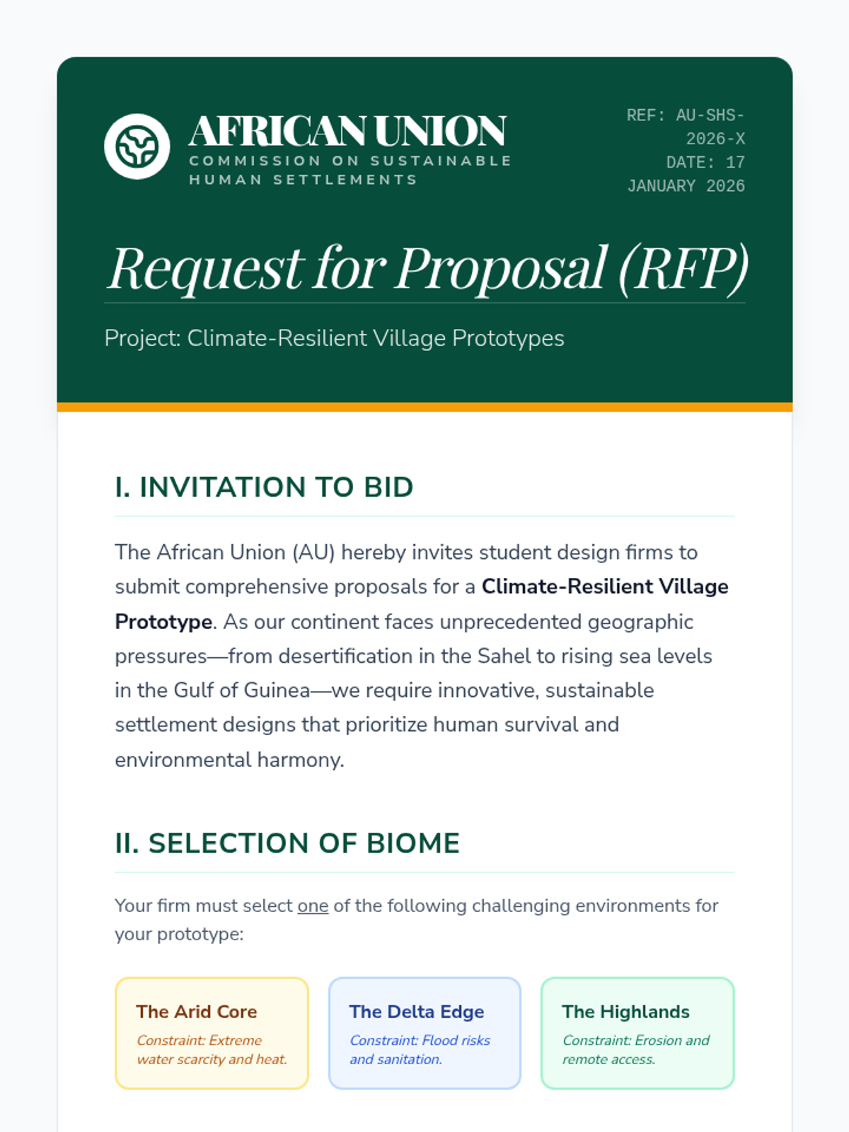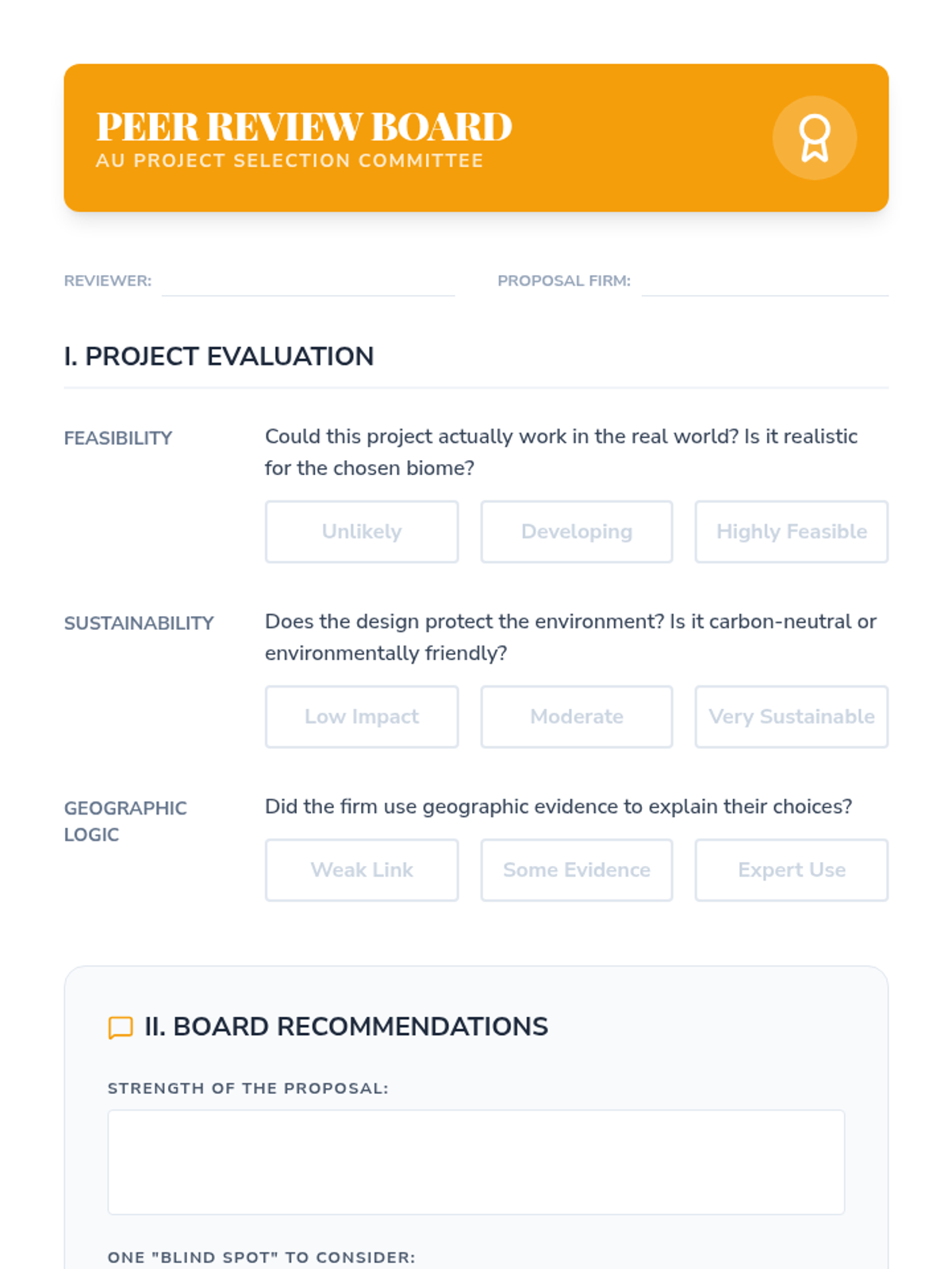 Students synthesize their learning by developing a proposal for a sustainable settlement in a challenging African biome. They apply geographic knowledge to solve human problems and participate in a peer review process.