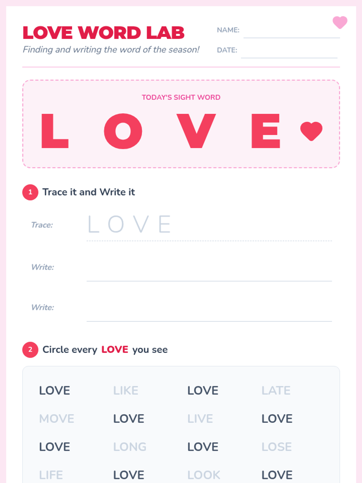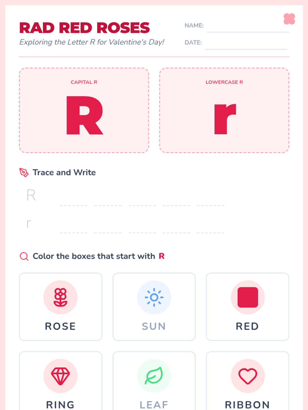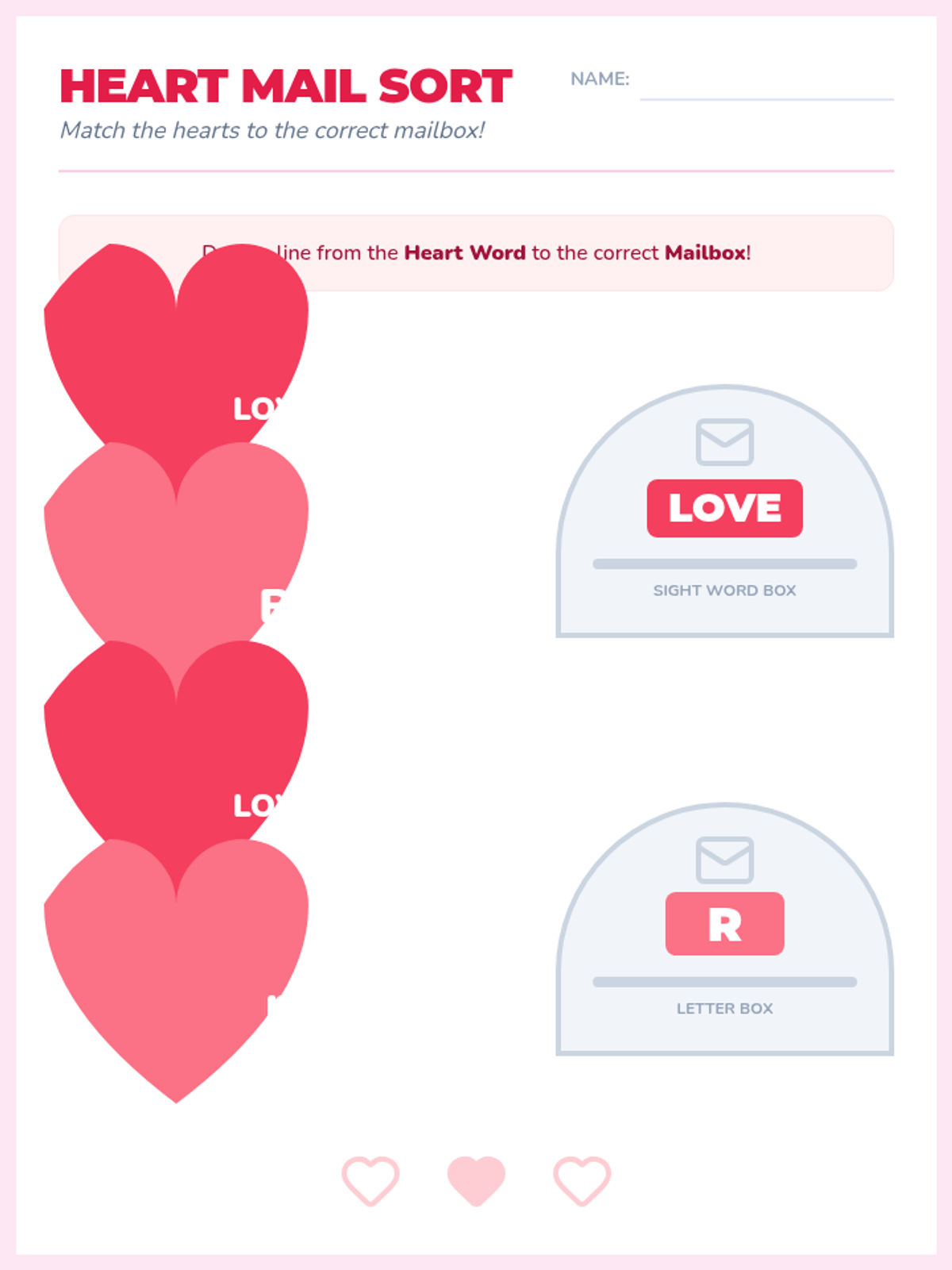 A Valentine's Day themed lesson for life skills students focusing on functional literacy through the sight word 'LOVE' and the letter 'R'. Students will engage in tracing, identifying, and sorting activities to build foundational reading skills.
