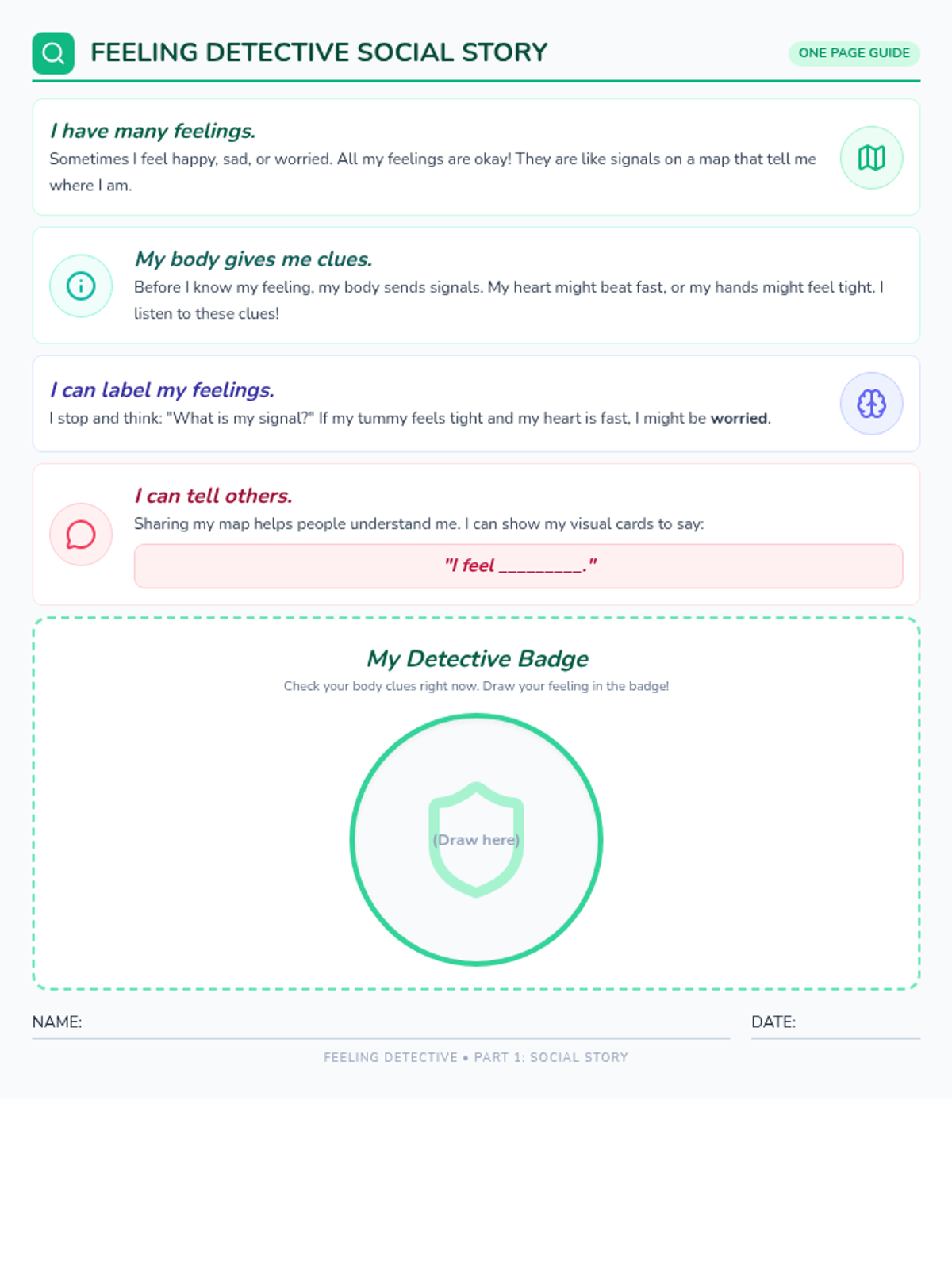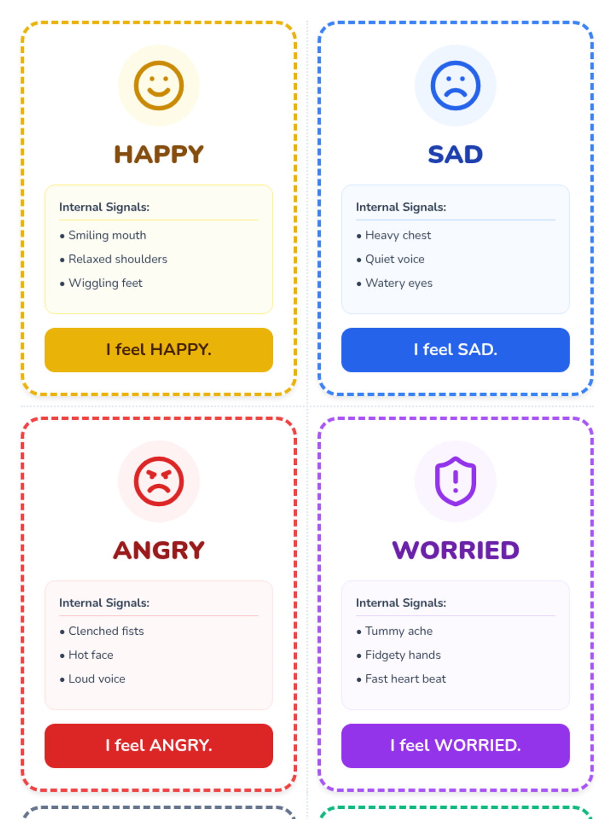 This lesson helps 3rd-grade students with Autism identify their internal body signals to label emotions and provides scripted language for expressing their emotional state to others.