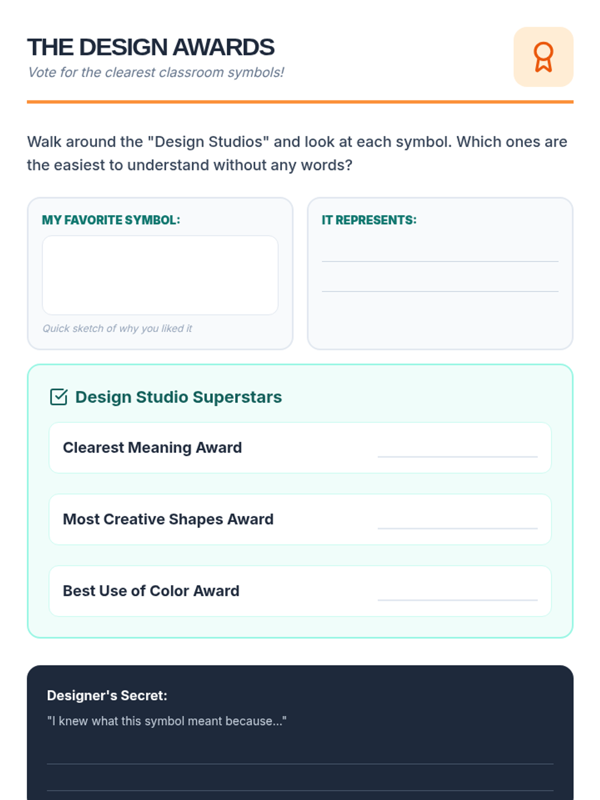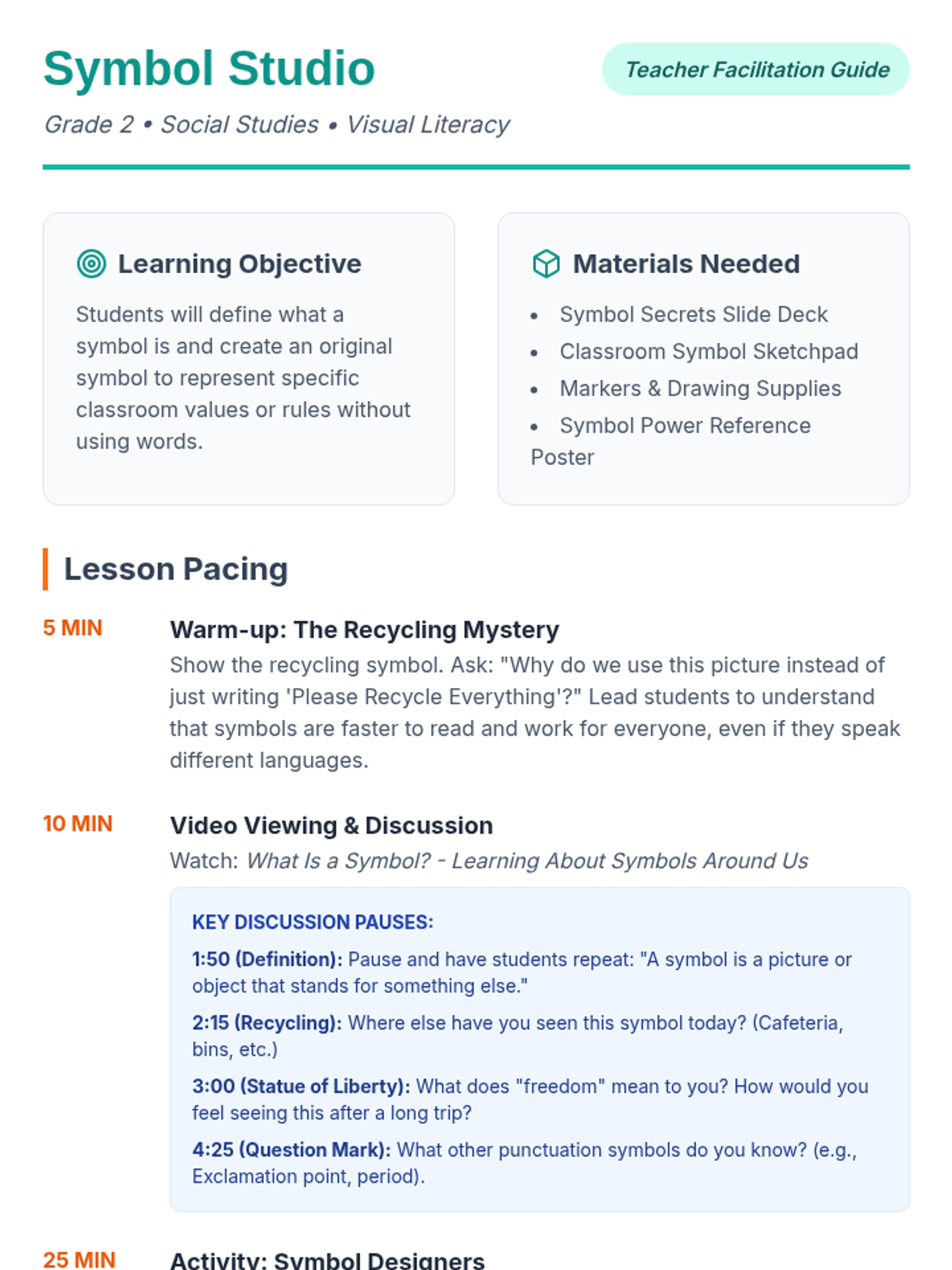 Students will learn what symbols are, how they represent ideas, and work in groups to design original symbols for classroom rules and values.