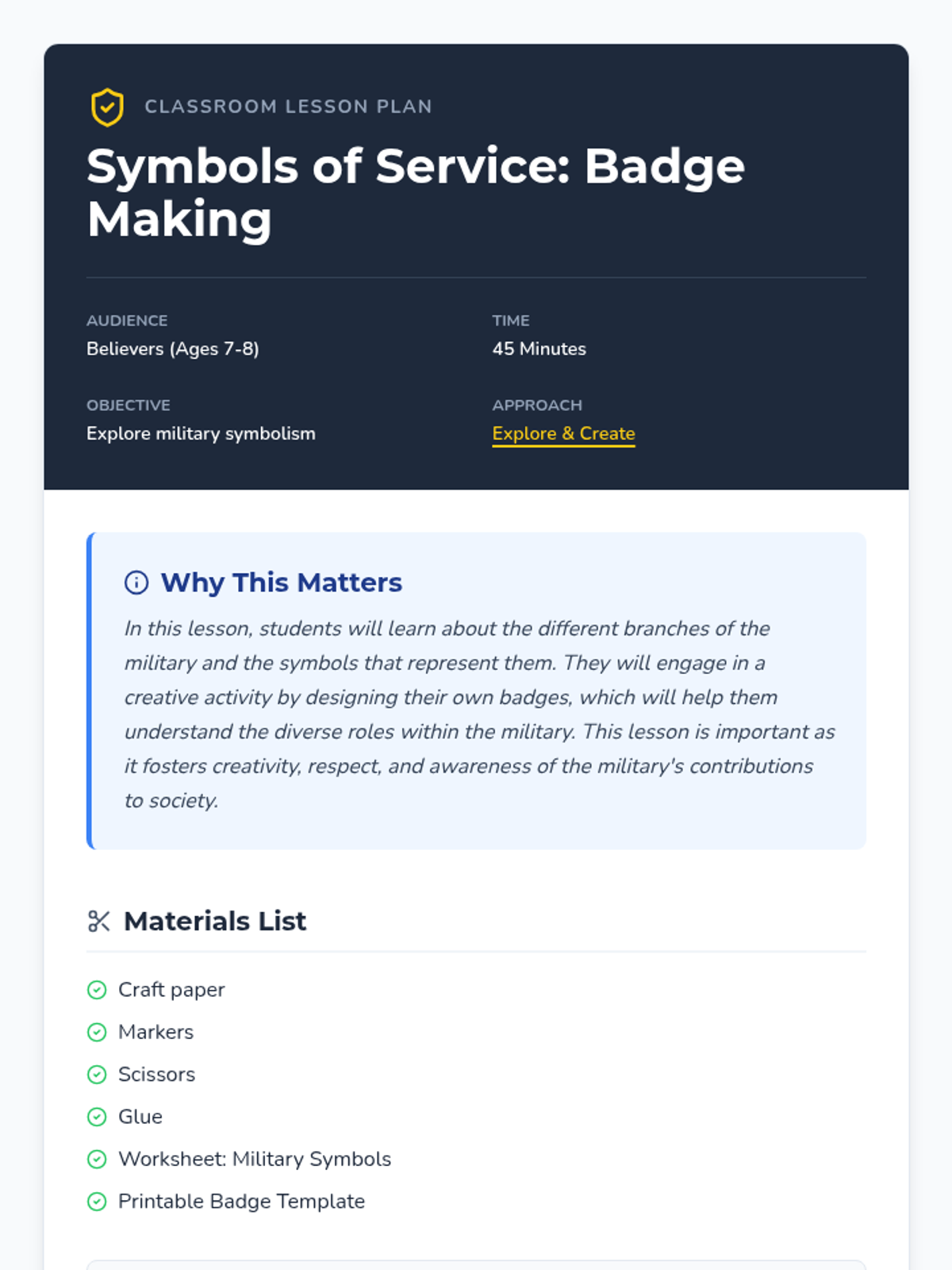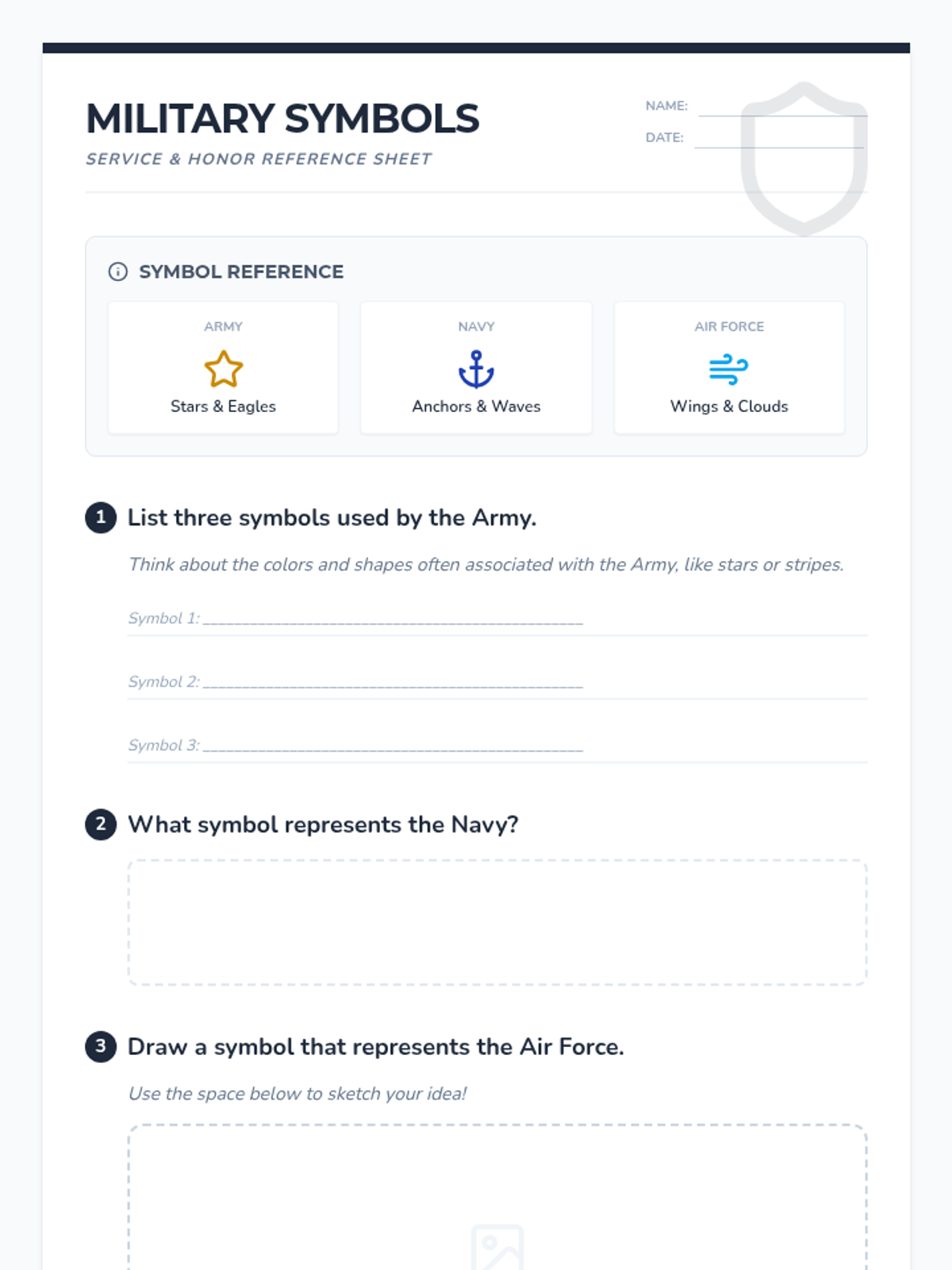 Students will explore the symbolism used by different military branches and design their own badges to represent honor and service.