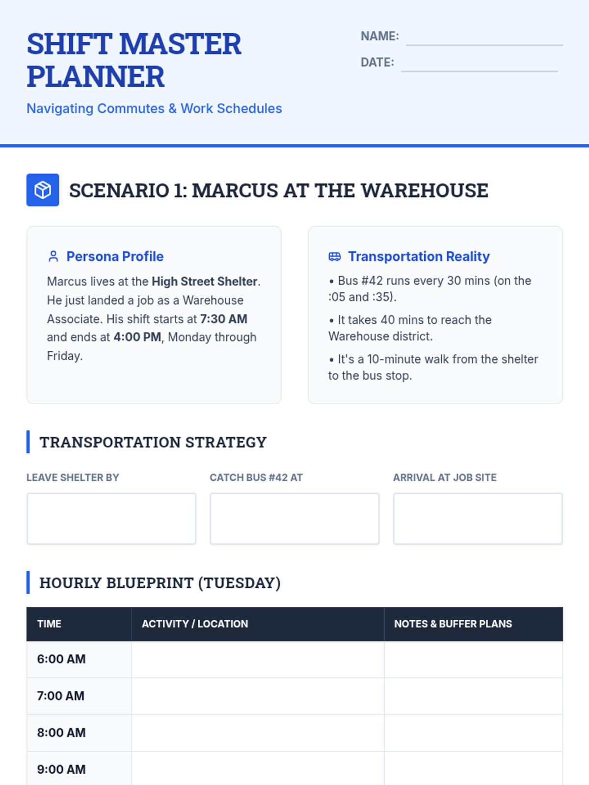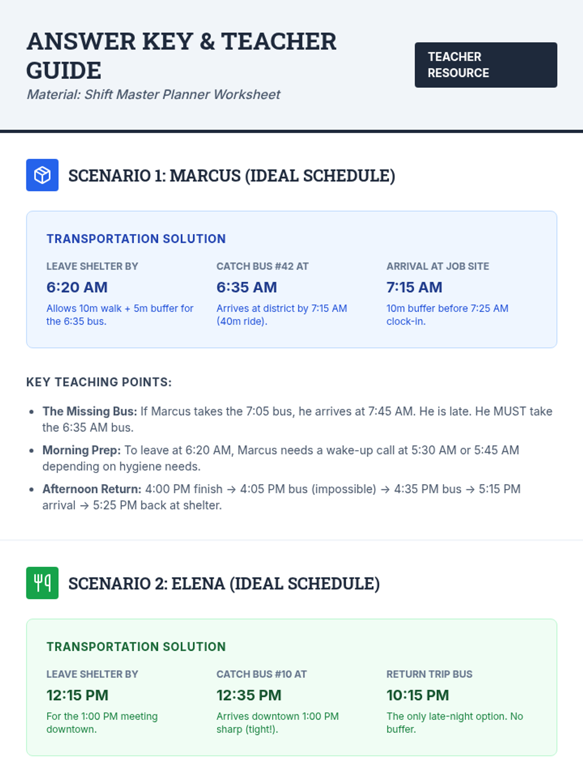 A lesson focused on the practical skills of navigating public transportation and managing a work schedule. Students will learn to account for commute times, shift overlaps, and personal responsibilities to create a realistic weekly plan.