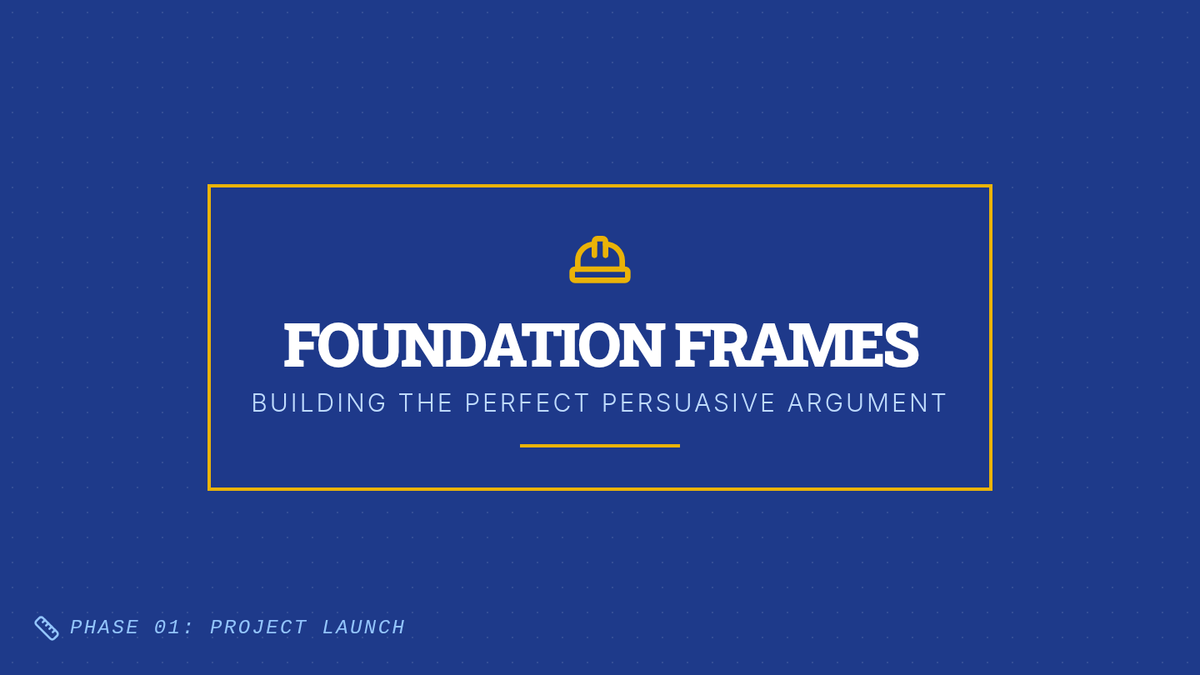 A foundational lesson on argumentative writing, covering essential terminology like claims, evidence, and counterclaims through a 'blueprint' architectural theme.