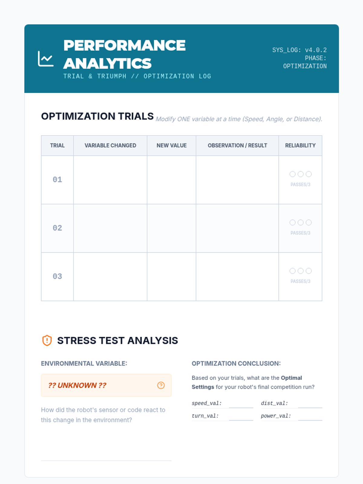 Students optimize hardware and software through iterative testing to increase reliability in changing environmental conditions.
