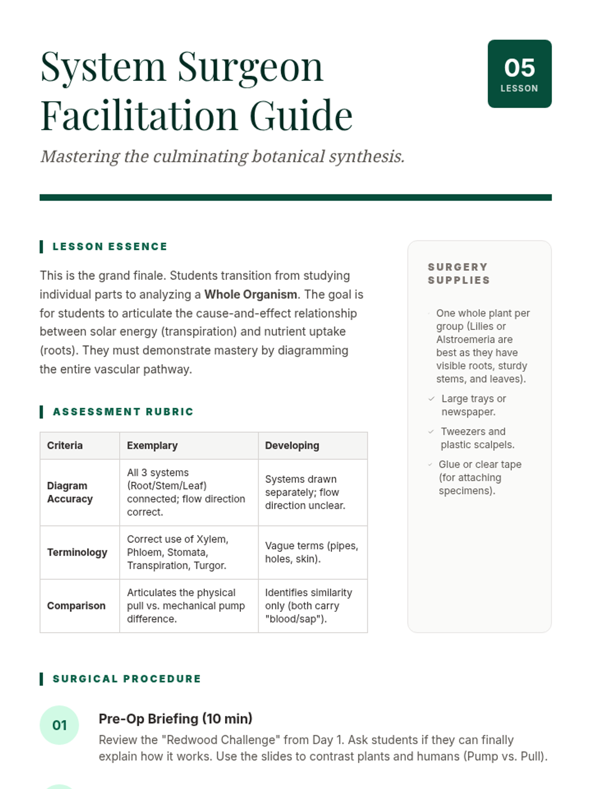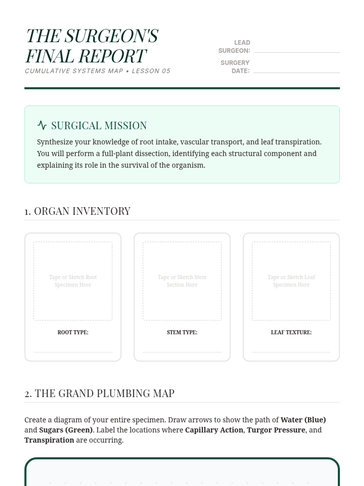 In this culminating activity, students perform a full dissection of a vascular plant. They label the interconnected systems and present a diagram explaining how roots, stems, and leaves work in unison.