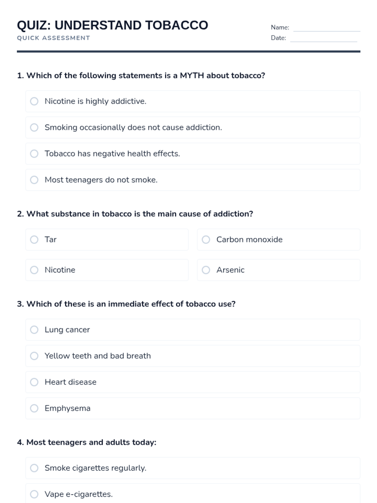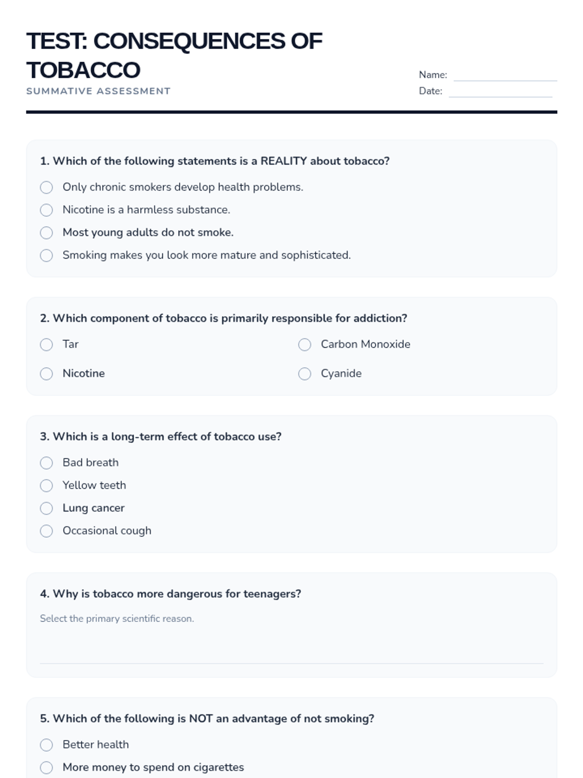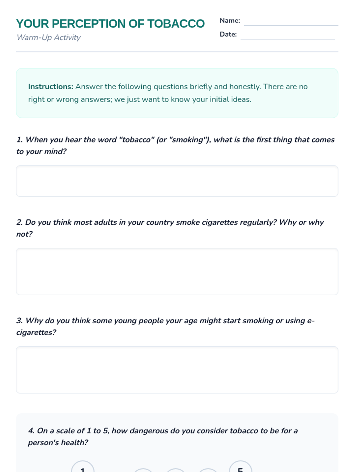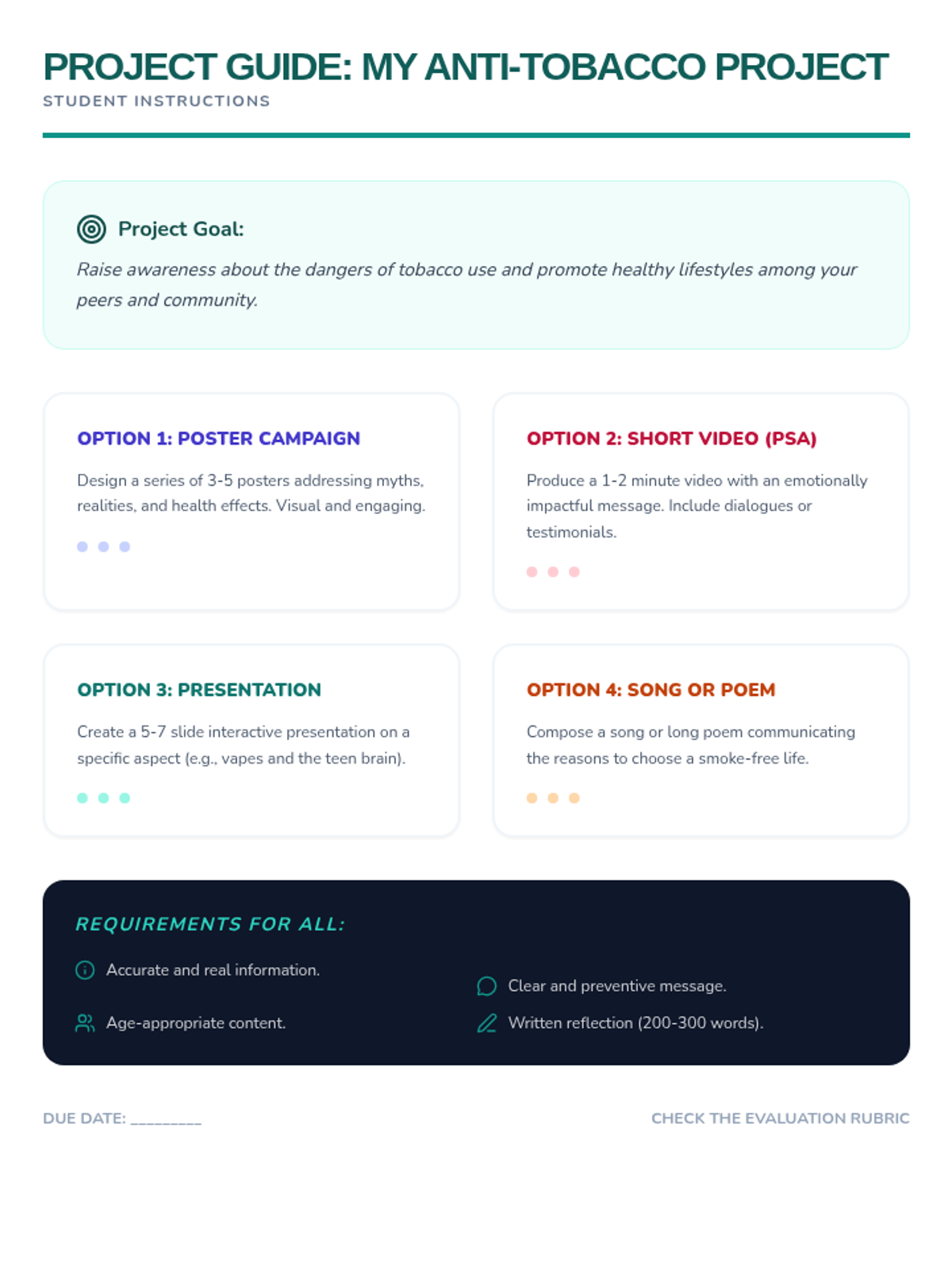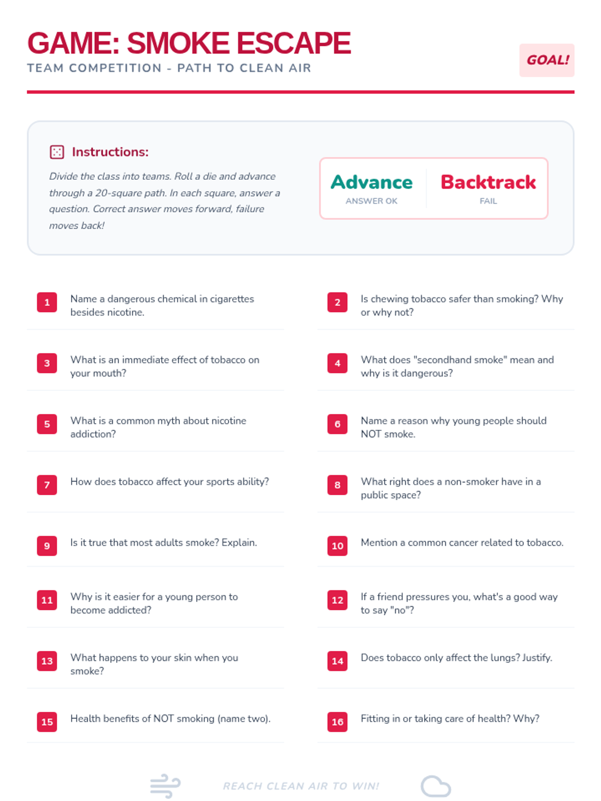 Esta lección de 50 minutos desmiente los mitos comunes sobre el tabaco, empoderando a los estudiantes de 6º grado con información precisa sobre los efectos en la salud y los derechos de los no fumadores. / This 50-minute lesson debunks common tobacco myths, empowering 6th-grade students with accurate information on health effects and non-smokers' rights.