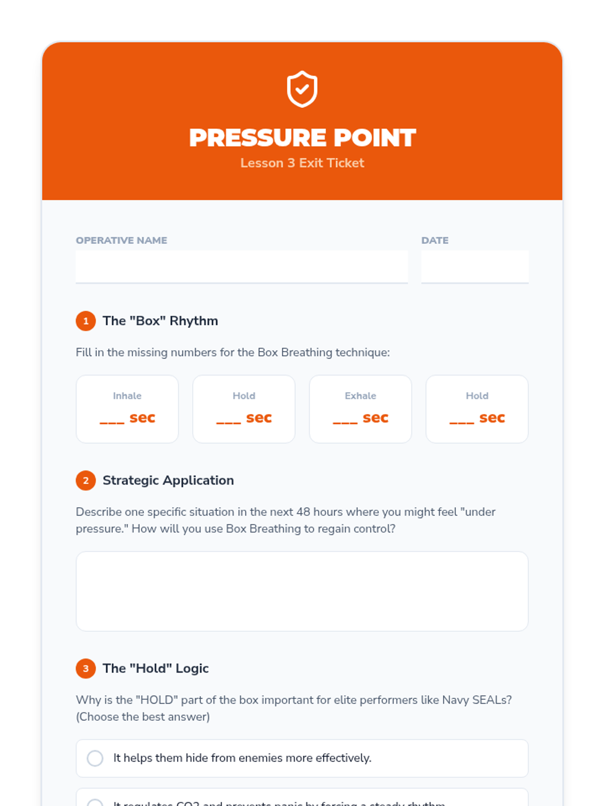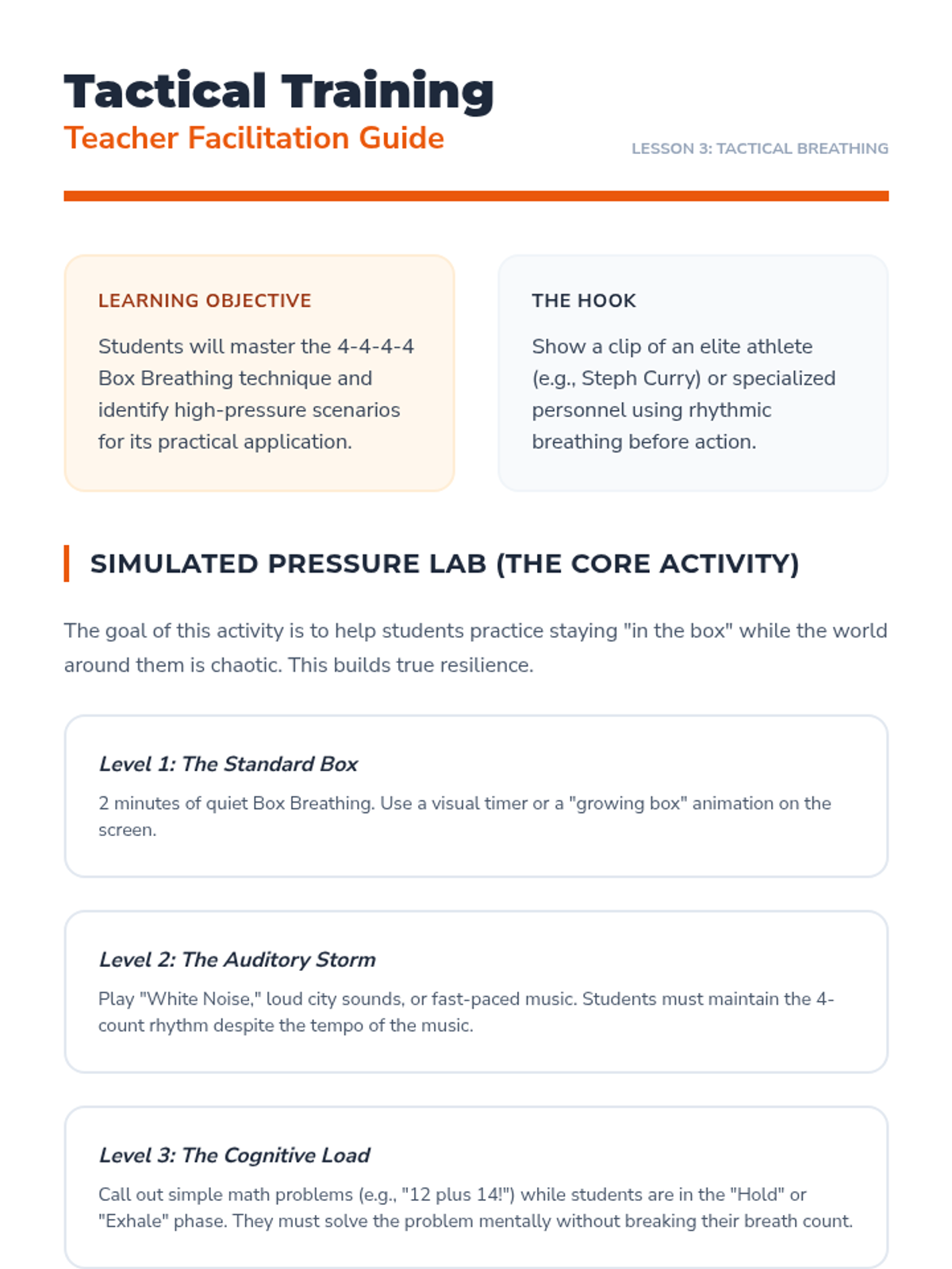 Practice 'Box Breathing' and other tactical techniques used by elite performers to maintain focus and calm under high-pressure situations.