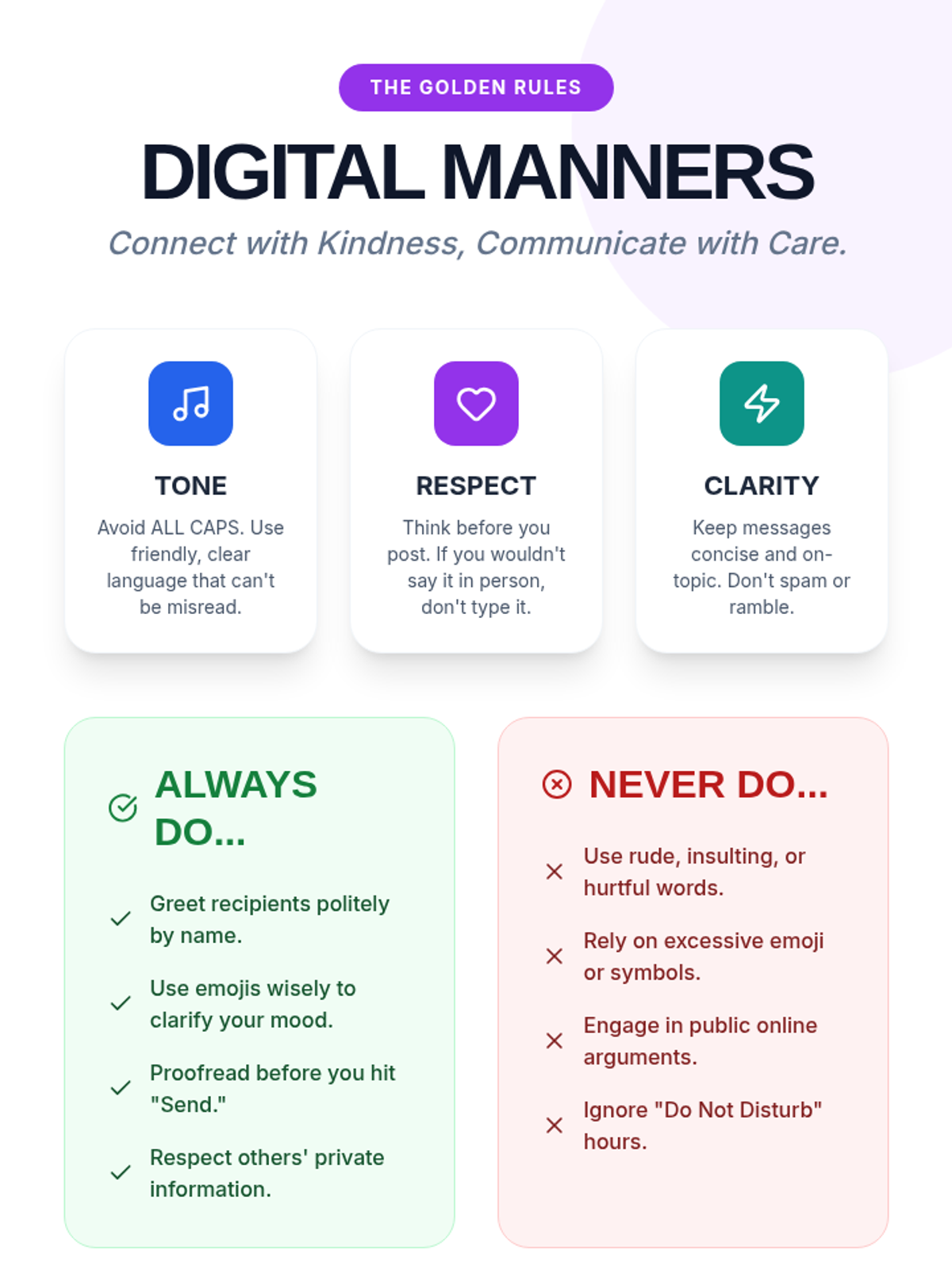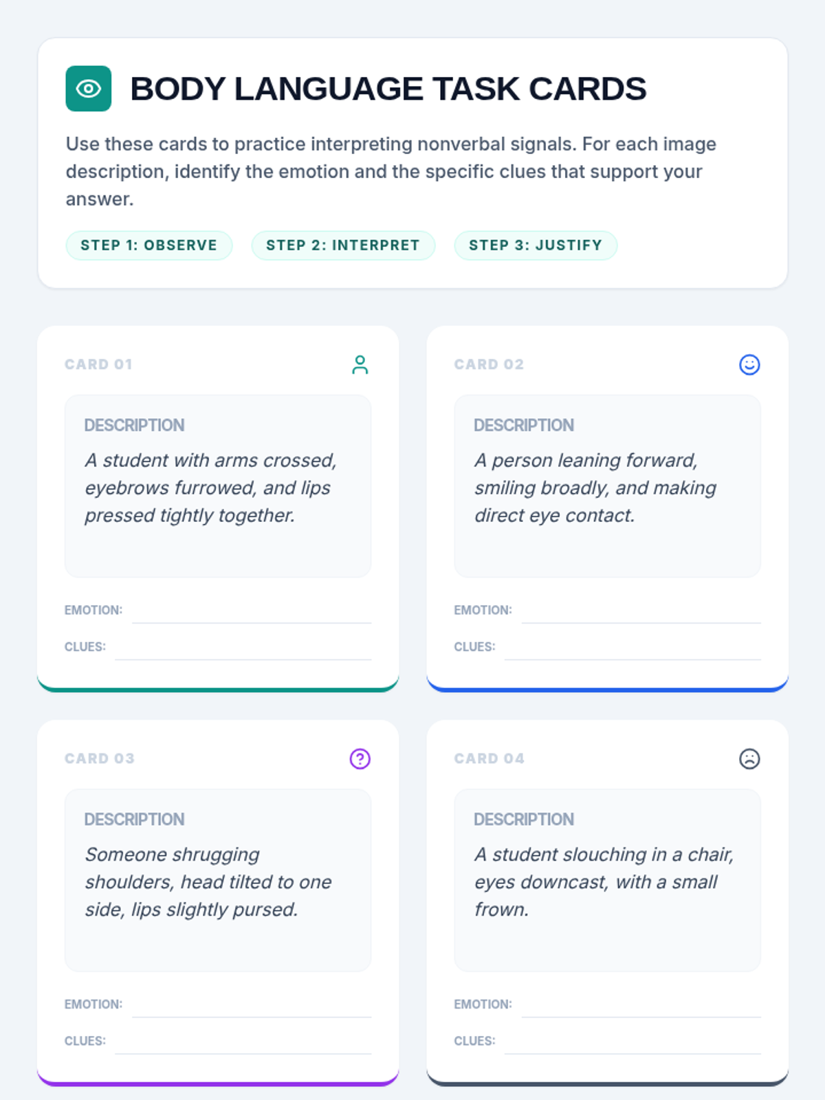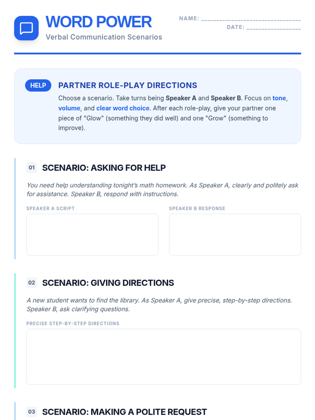 A 45-minute lesson for 7th graders on verbal, nonverbal, and digital communication skills, including role-plays, image analysis, and etiquette brainstorming.