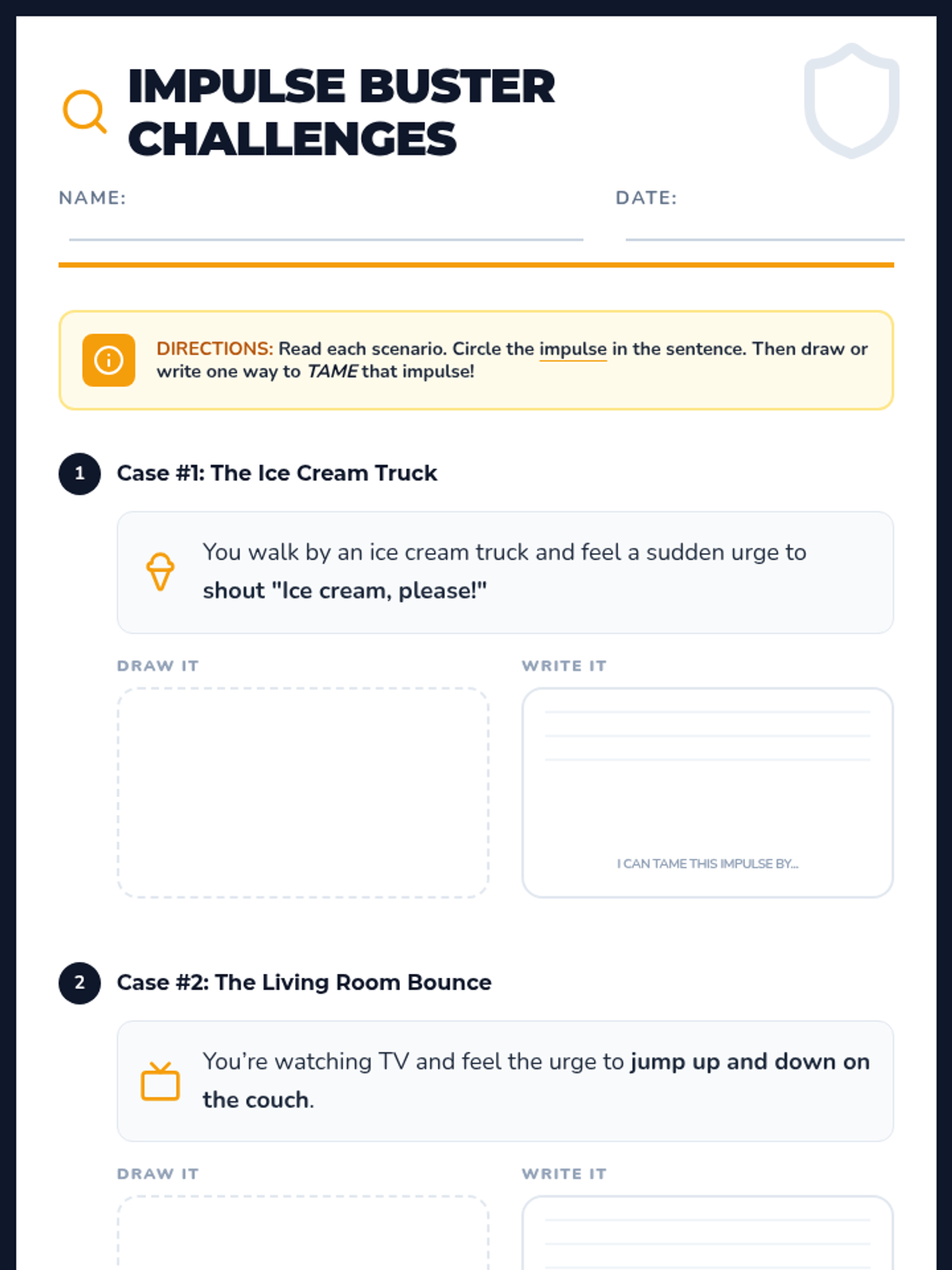 Managing impulsive behavior and big emotions like anger through self-regulation techniques.