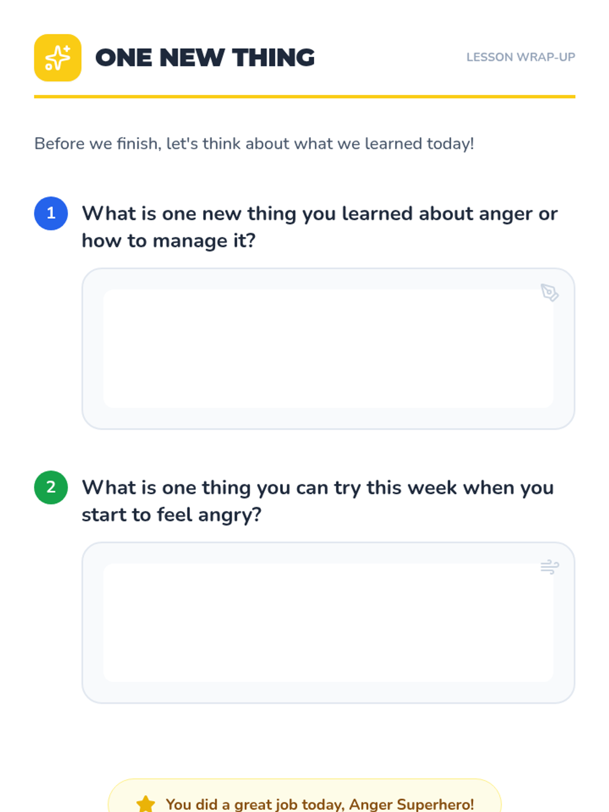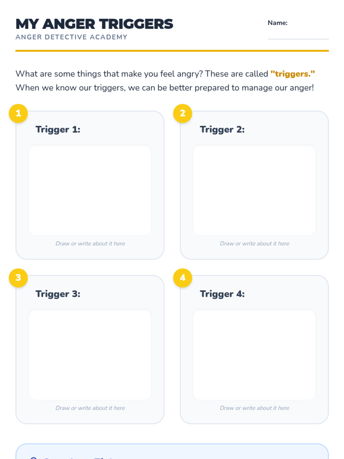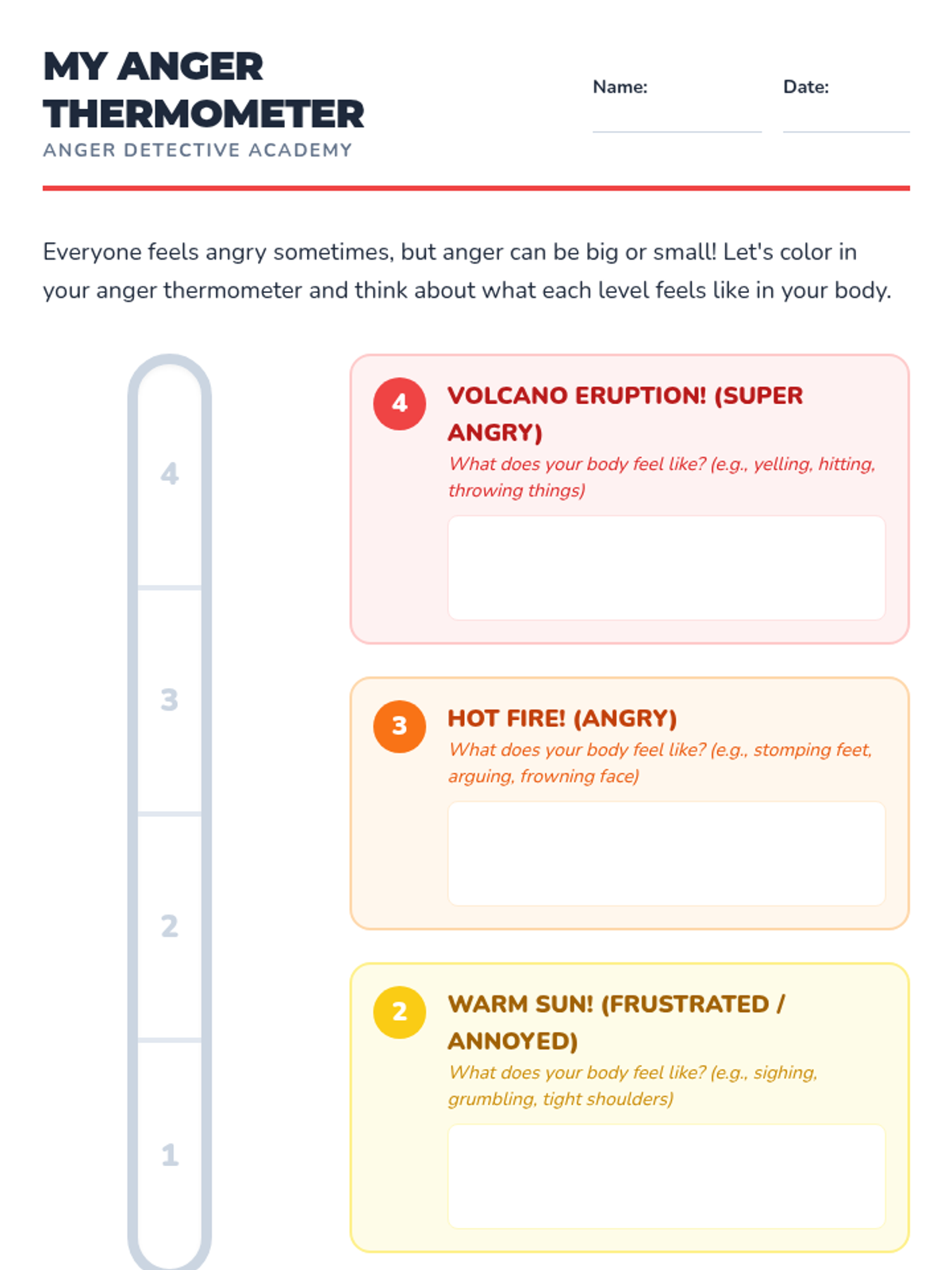 The first session in a Tier 3 individual anger management program for elementary students, focusing on differentiating between anger and aggression, identifying body clues and triggers, and learning a deep breathing strategy.