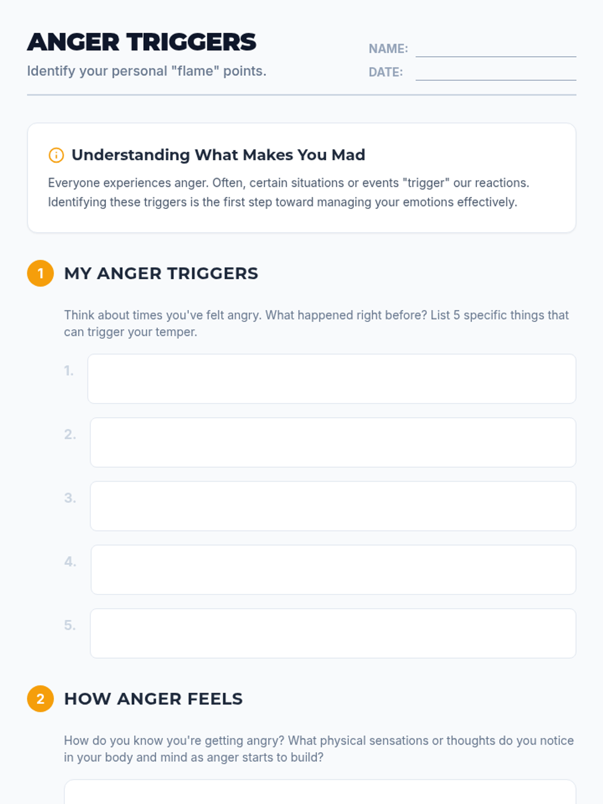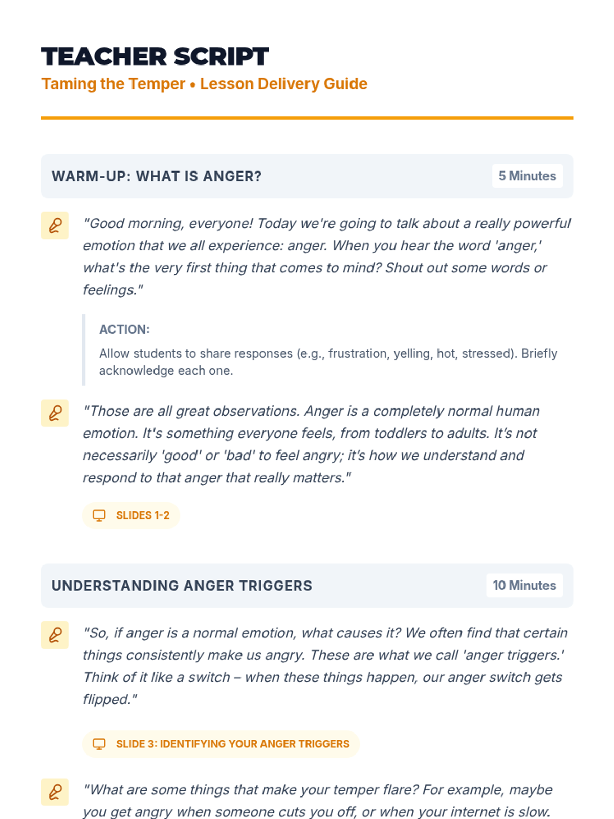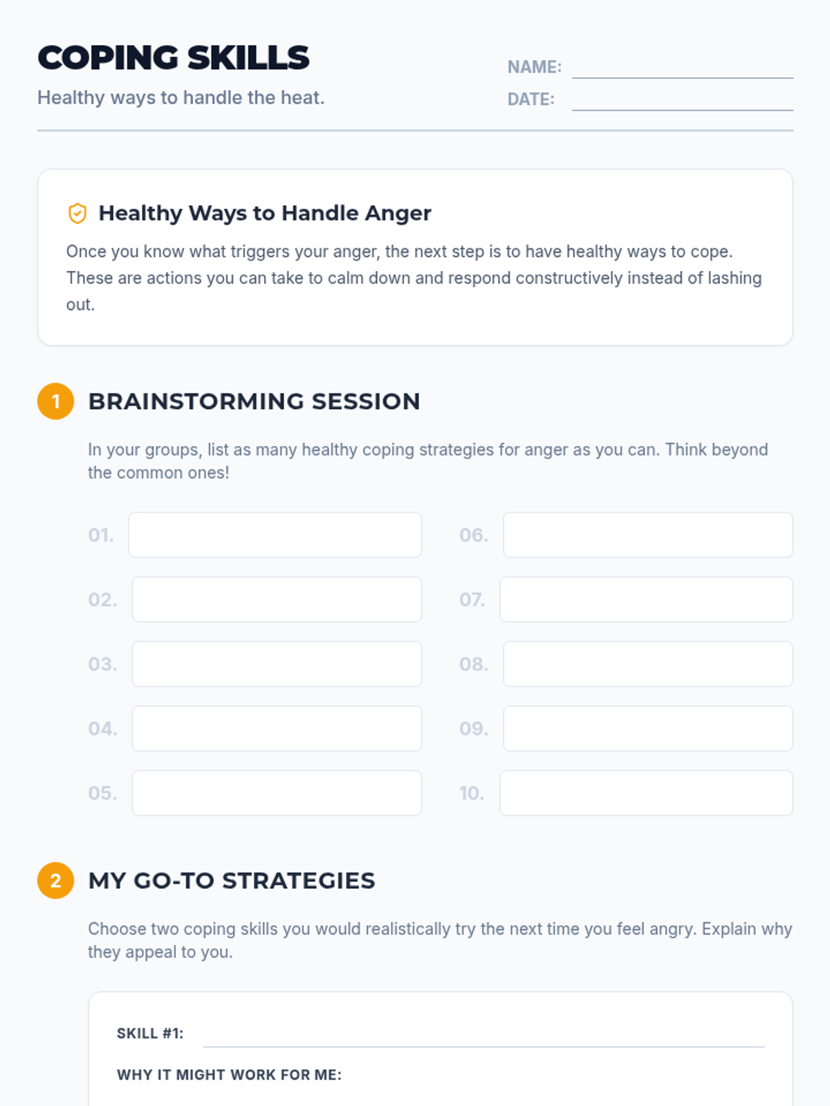 This lesson helps 9th-grade students understand anger, identify personal triggers, and learn healthy coping mechanisms to manage emotions effectively. It empowers them with essential life skills through interactive discussion and guided practice.